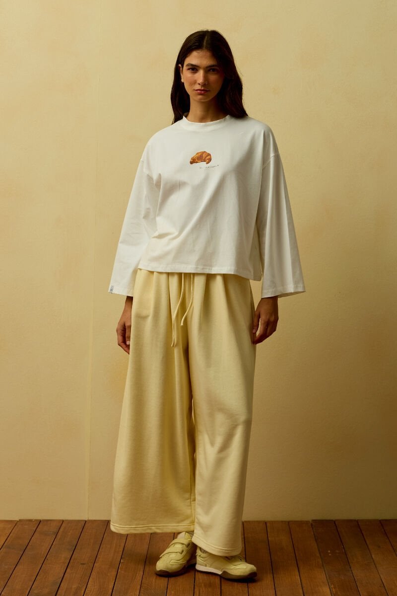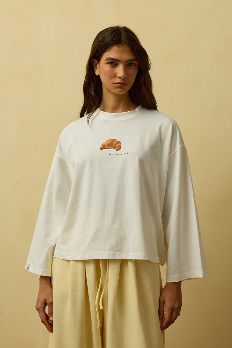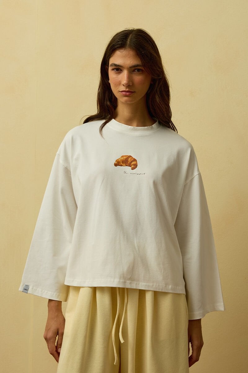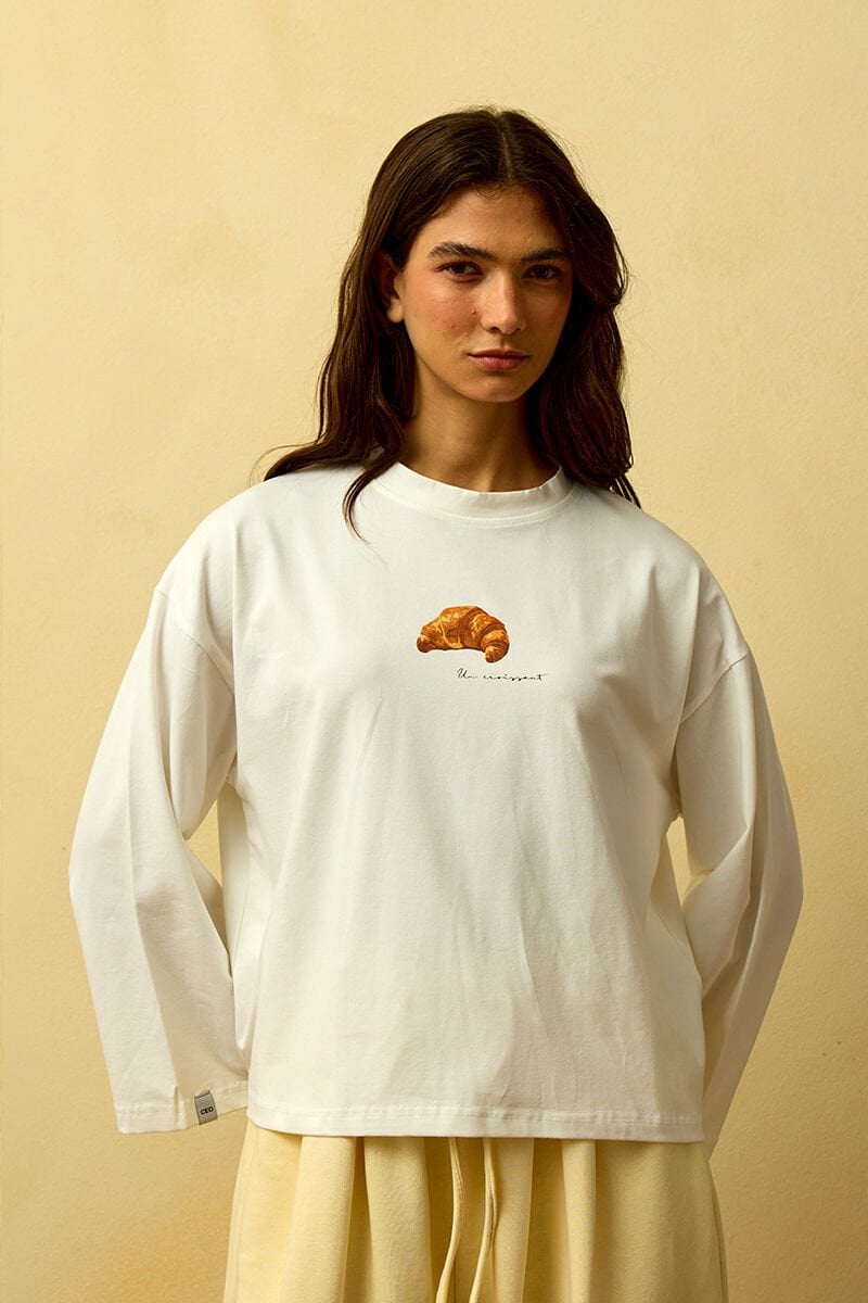 Ekru Kruvasan Baskılı Basic Body