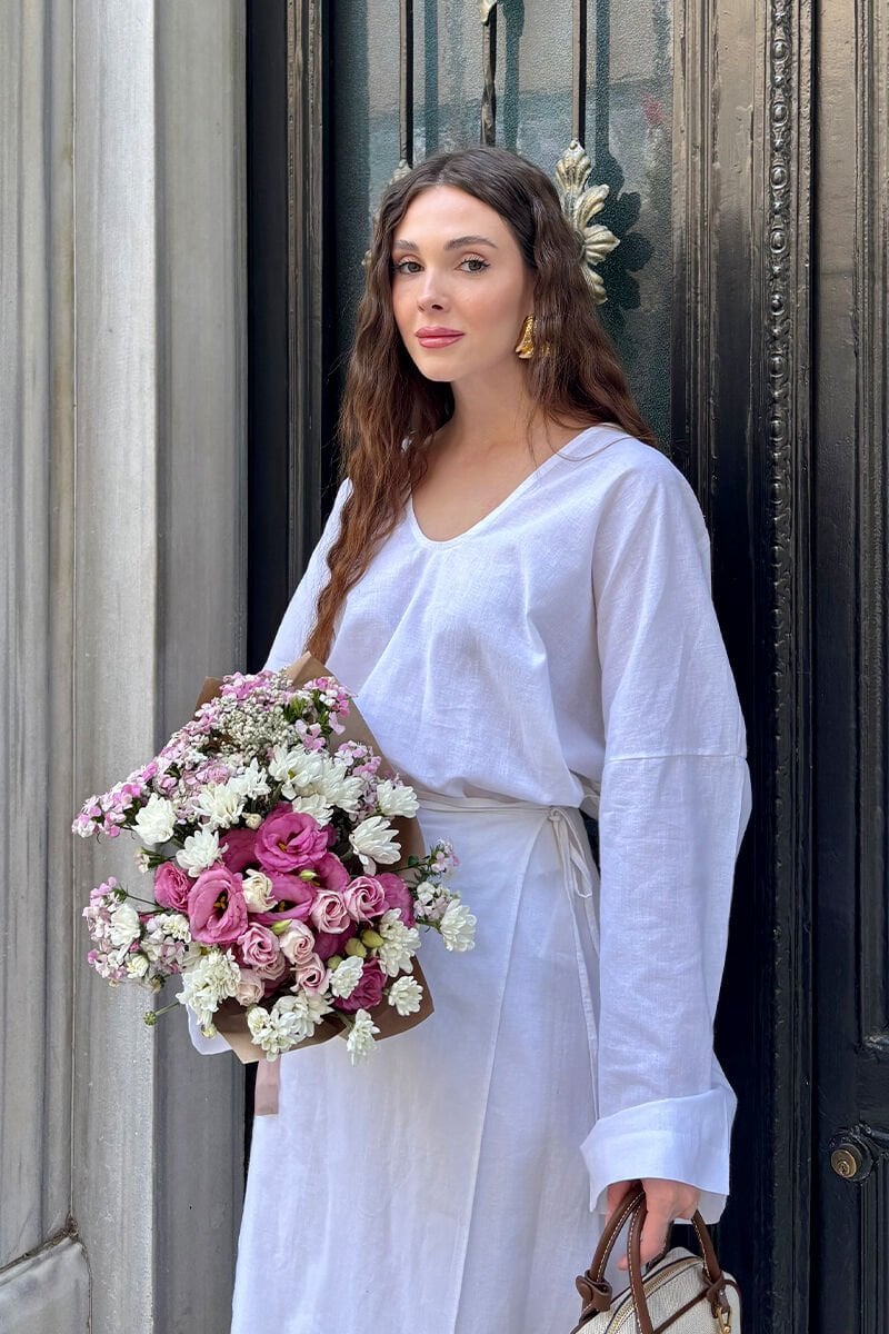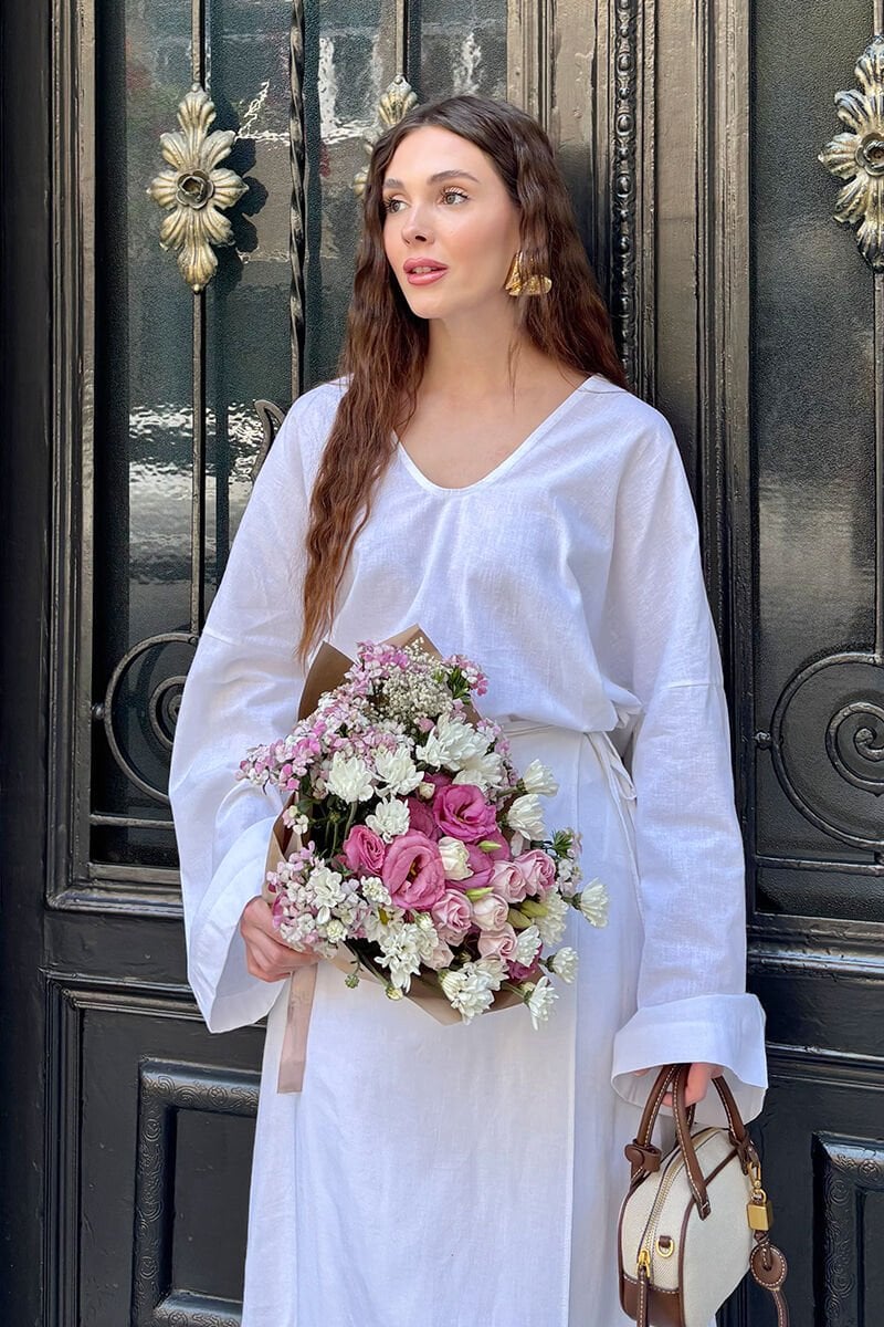 Bu muhteşem organik keten anvelop etek, rahatlığı ve şıklığı bir arada sunar.