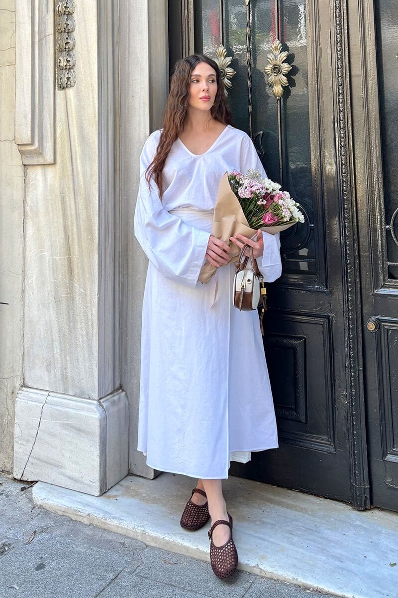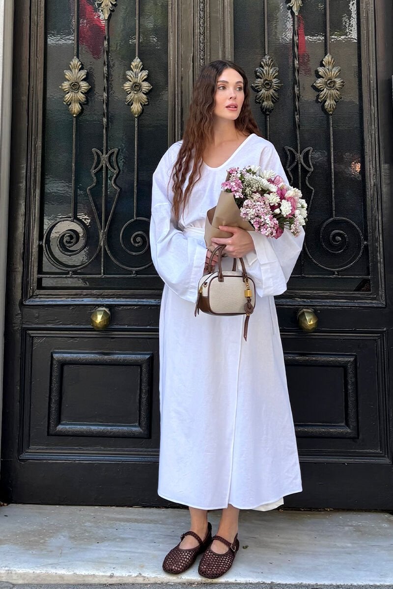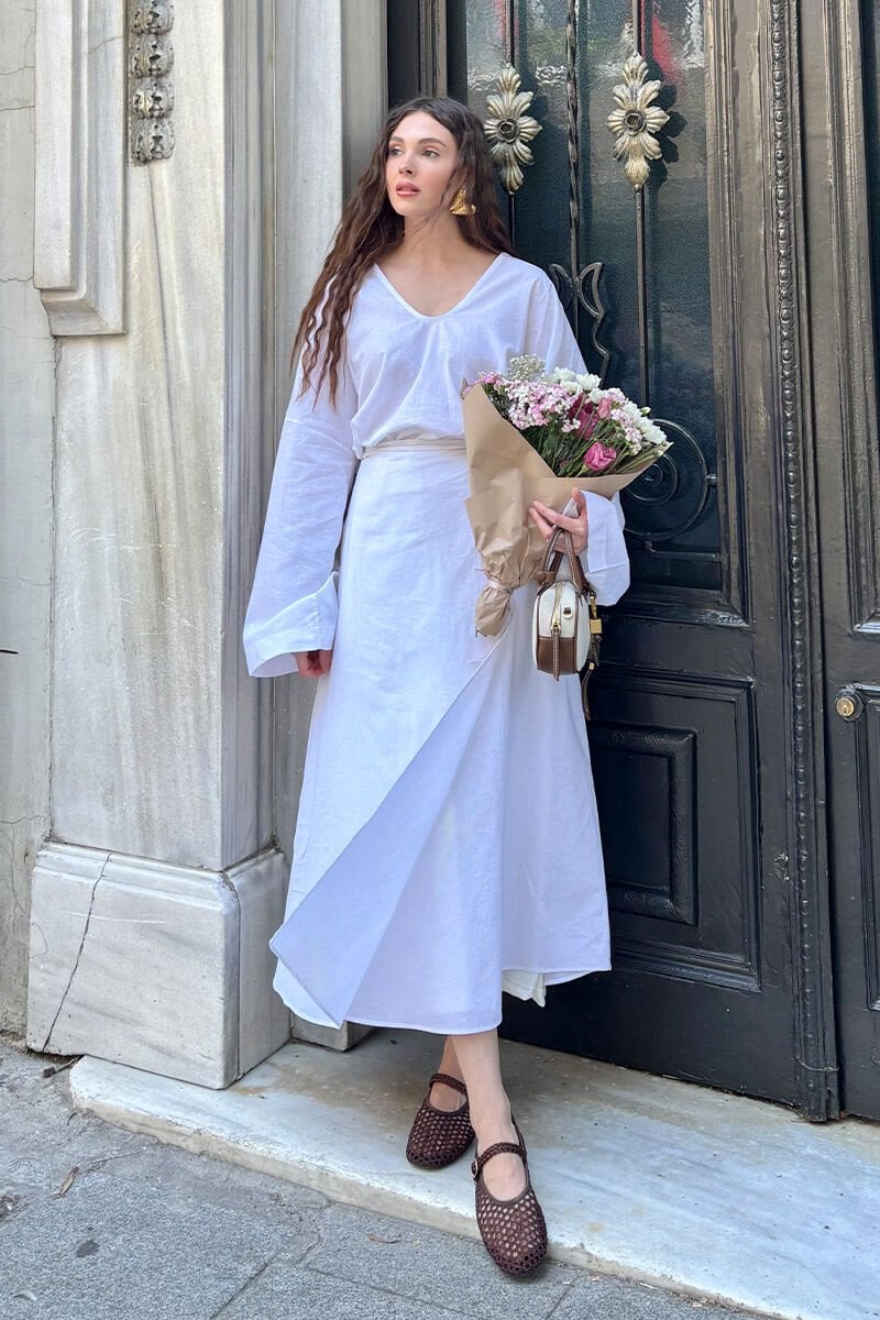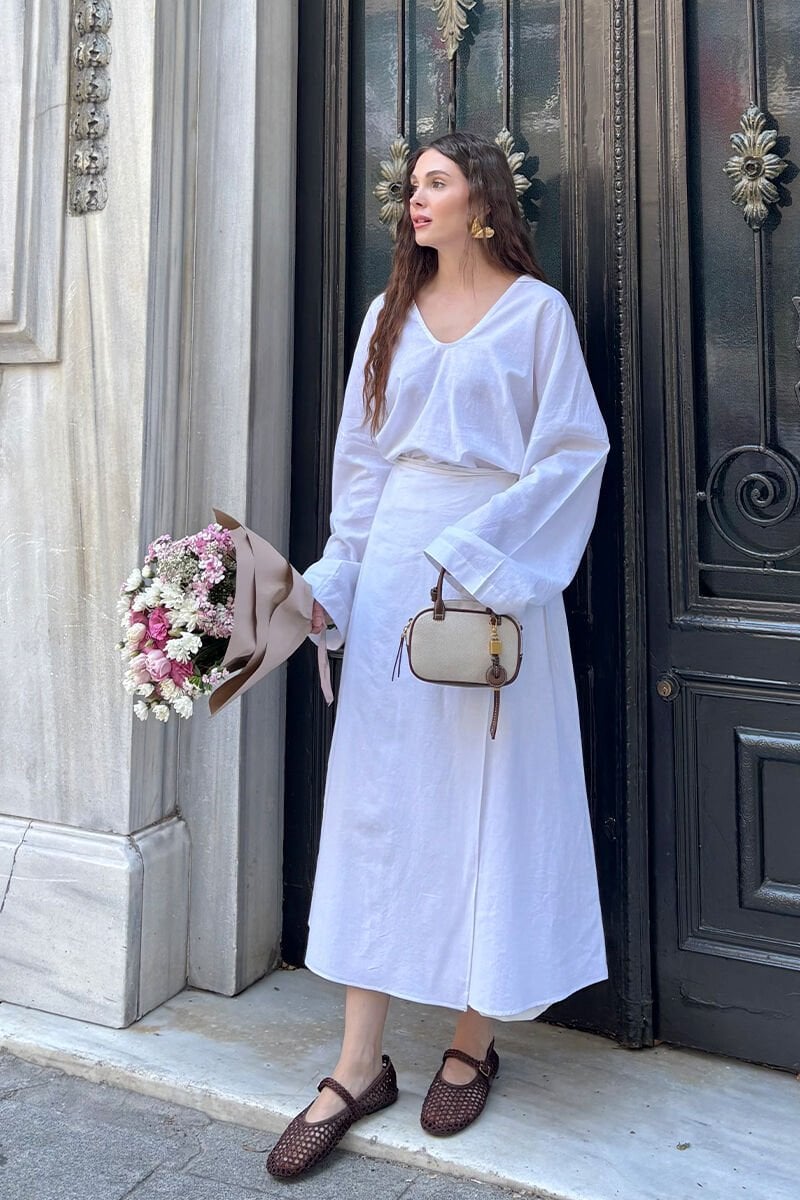 Beyaz Organik Keten Anvelop Etek