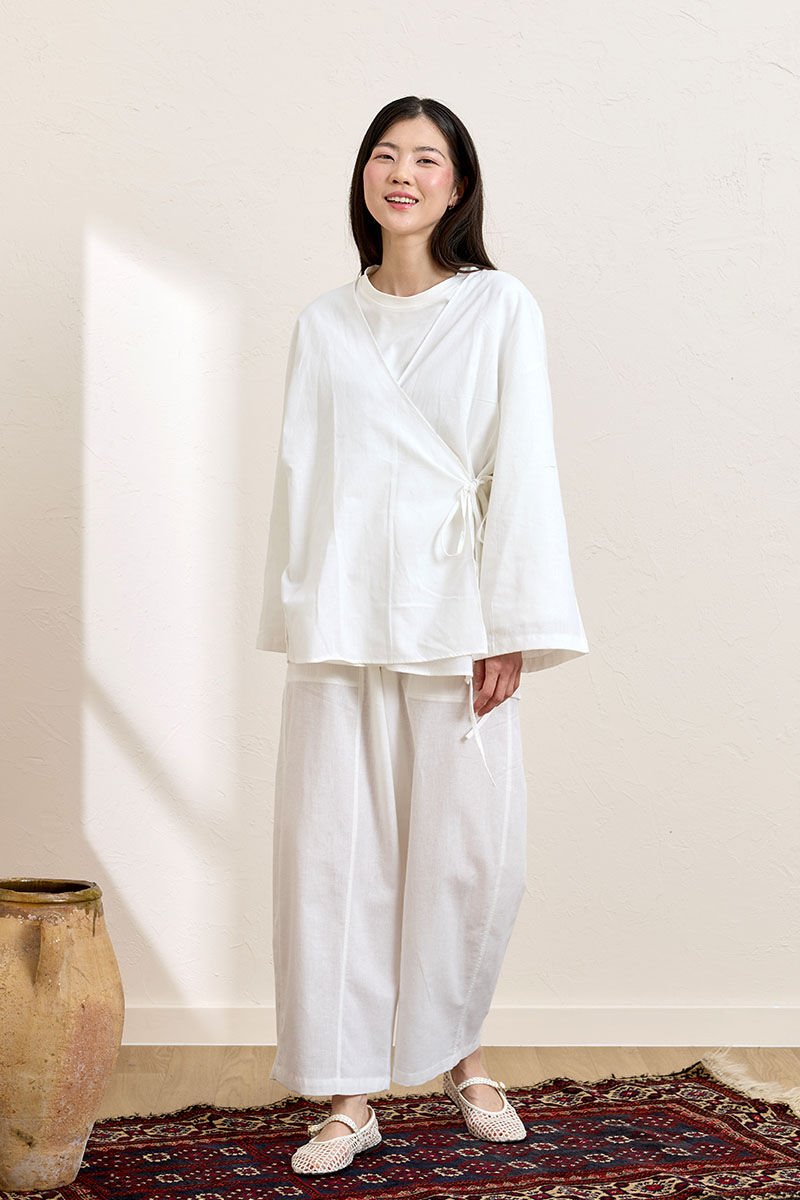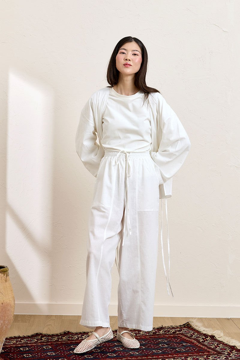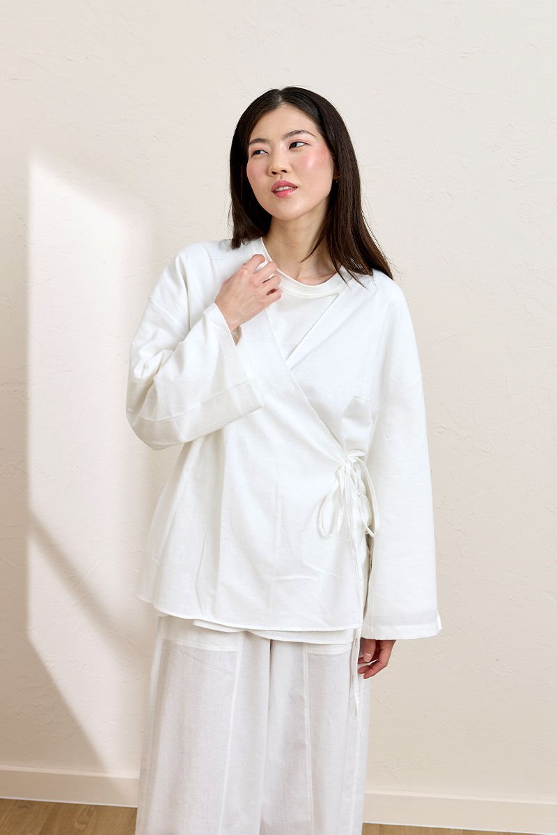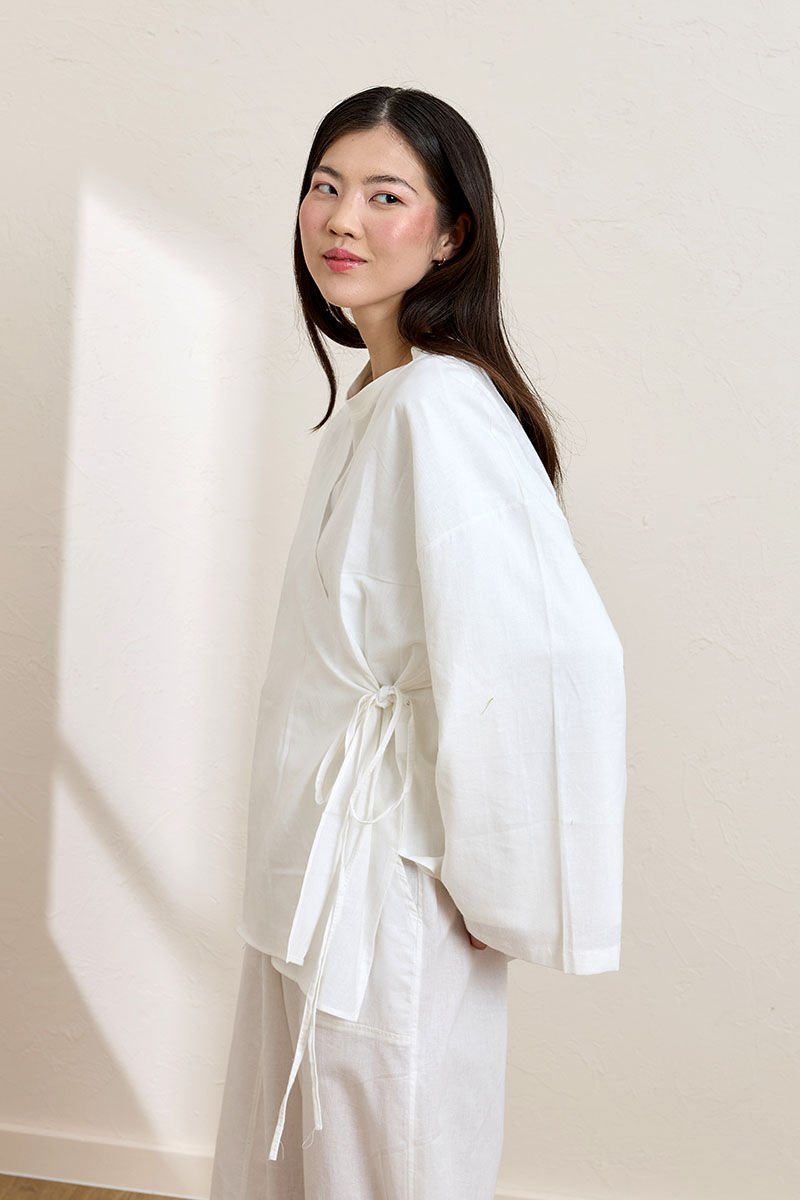 Beyaz Organik Keten Bağlamalı Tunik