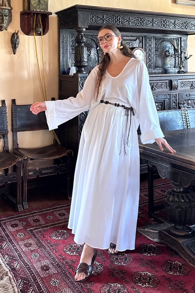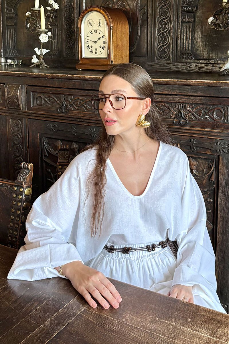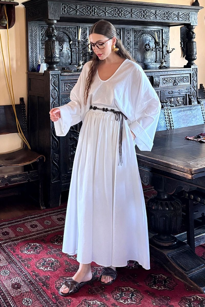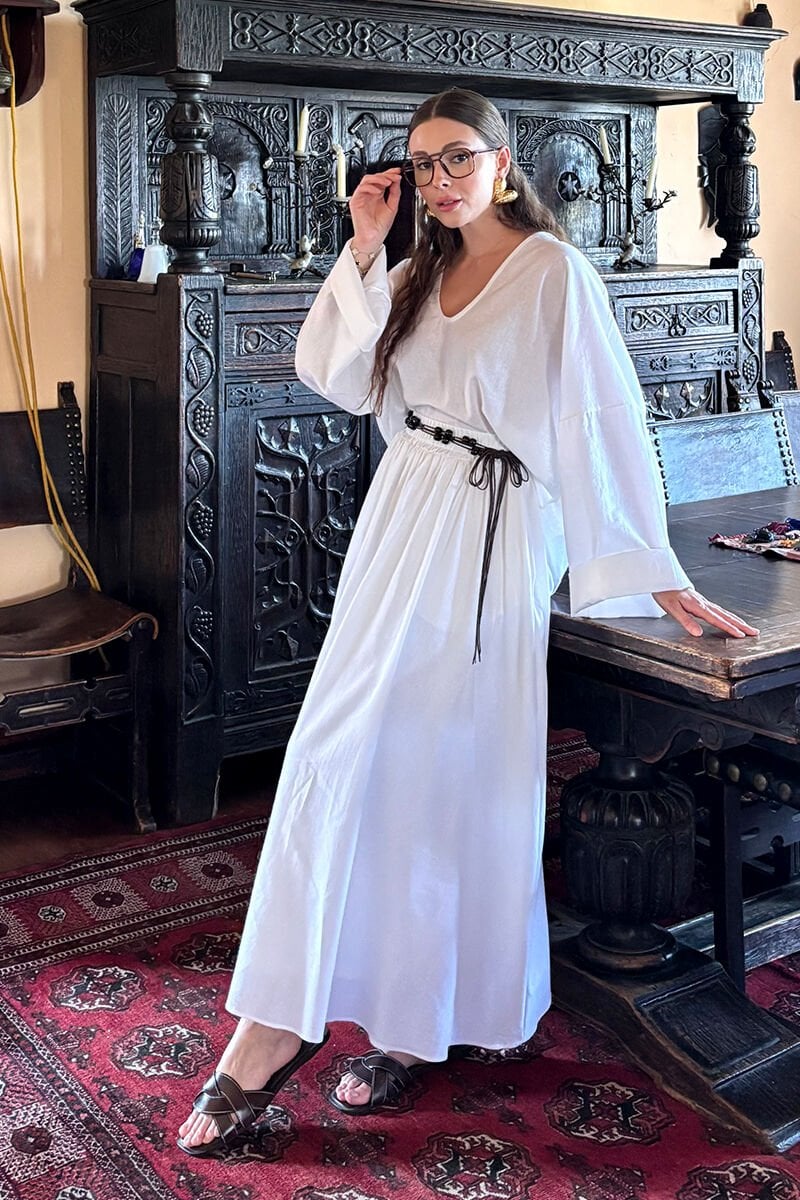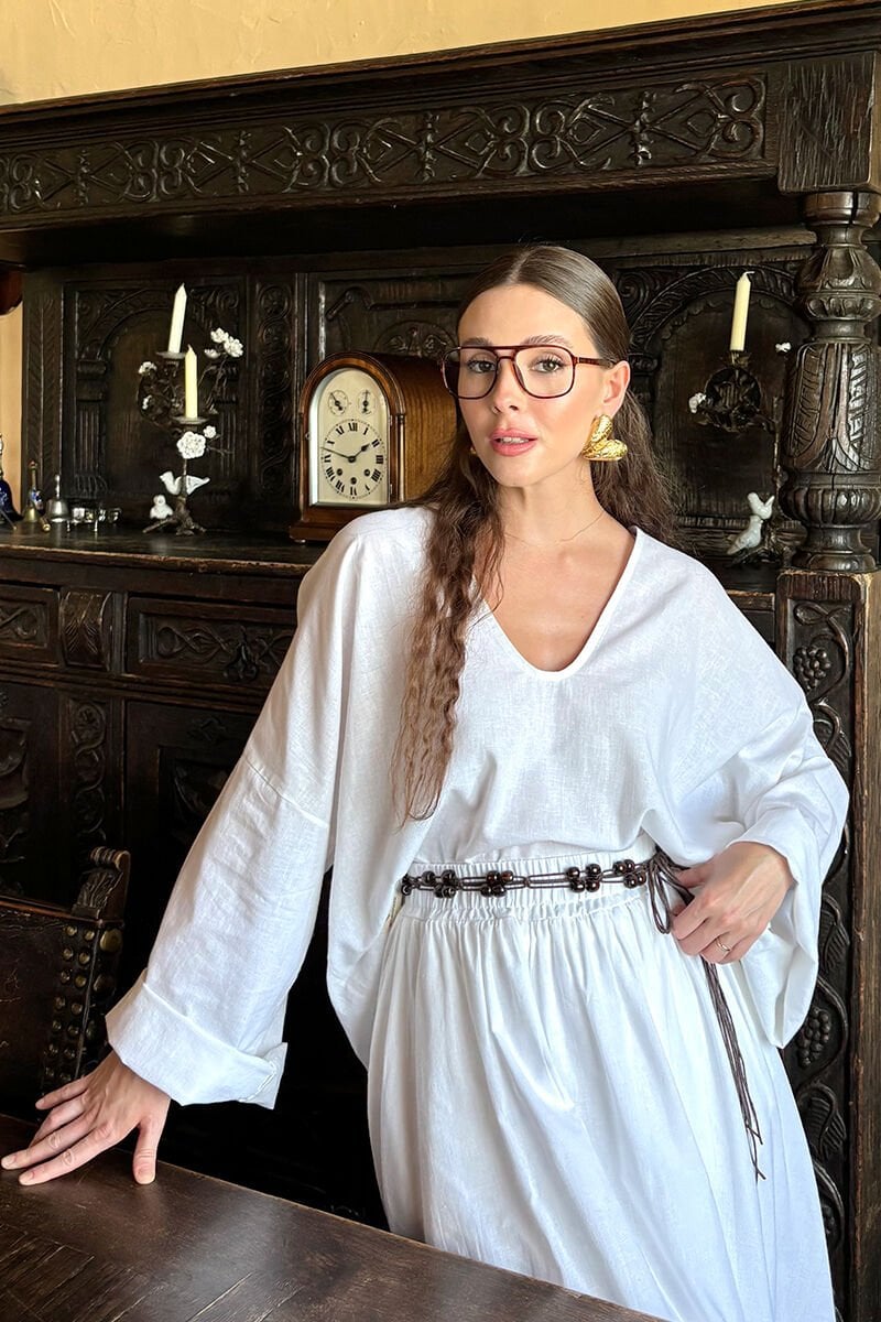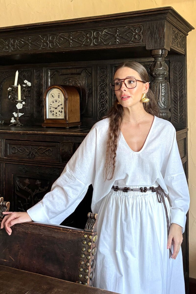Beyaz Organik Keten Balon Etek