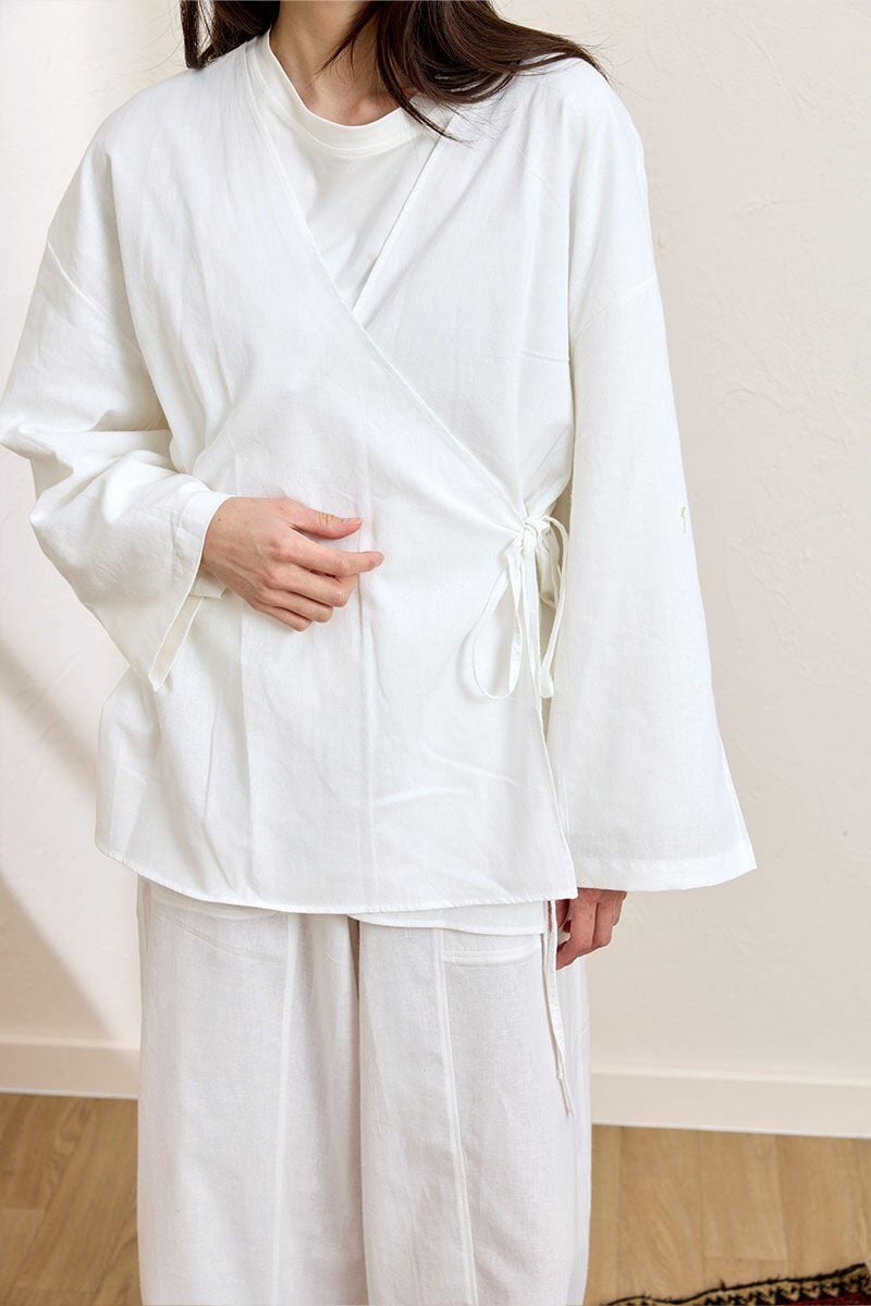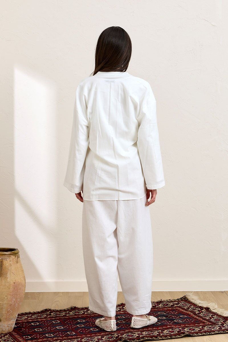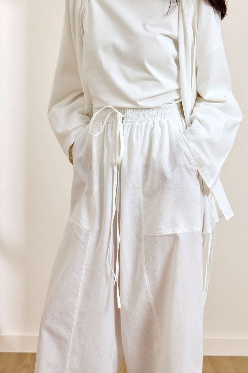 Beyaz Organik Keten Şalvar Pantolon