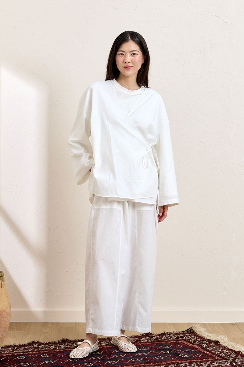 Bu organik keten şalvar pantolon, günün her anında rahatlığı ve şıklığı bir arada sunuyor.