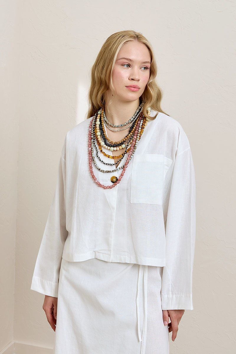 Beyaz Organik Keten Tek Cepli Ceket