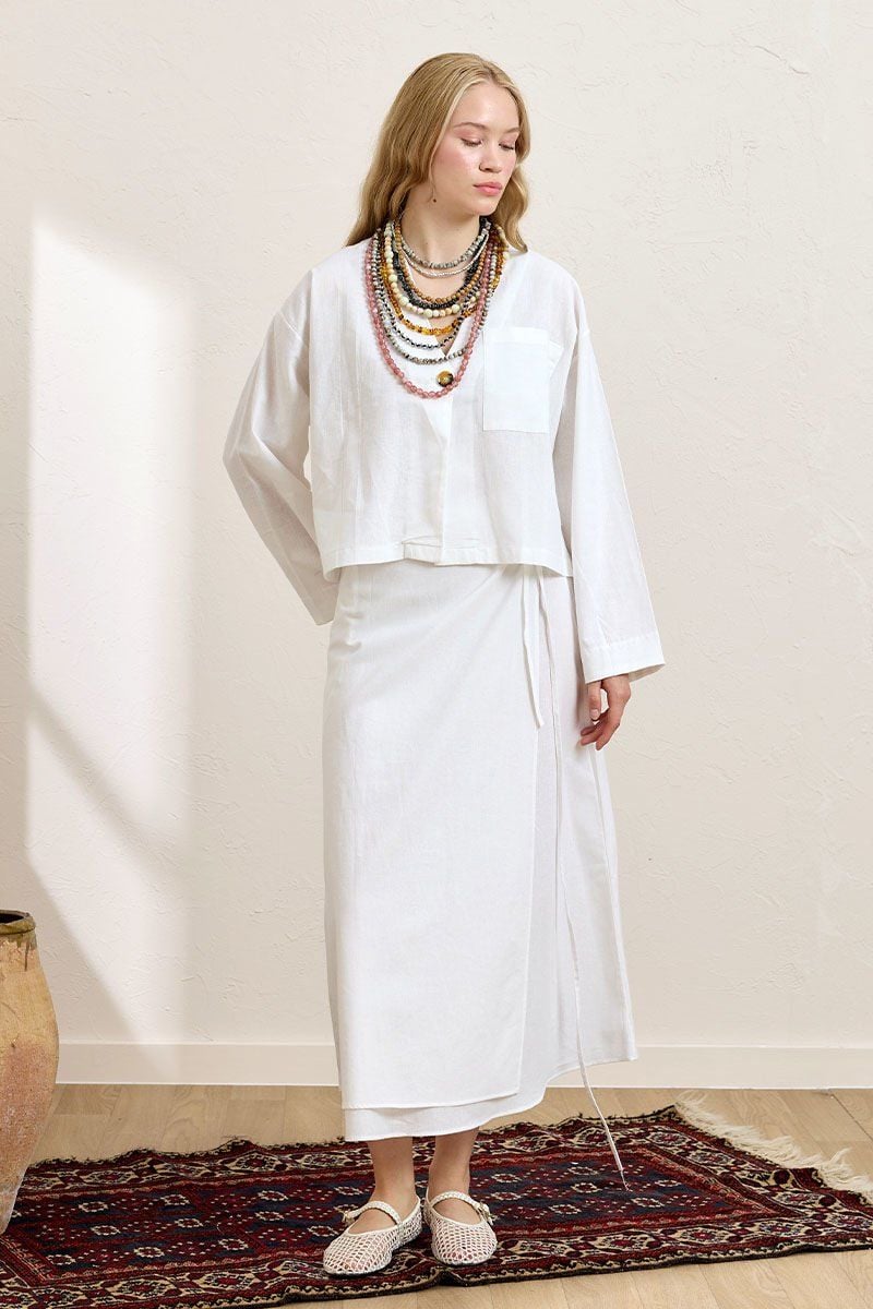 Bu muhteşem organik keten anvelop etek, rahatlığı ve şıklığı bir arada sunar.