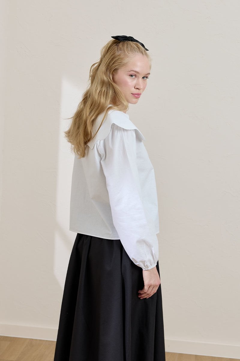 Beyaz Papatya Yaka Crop Gömlek
