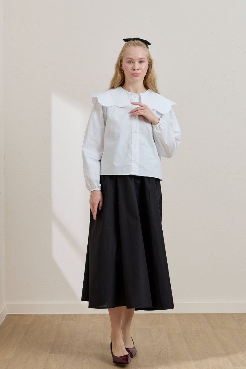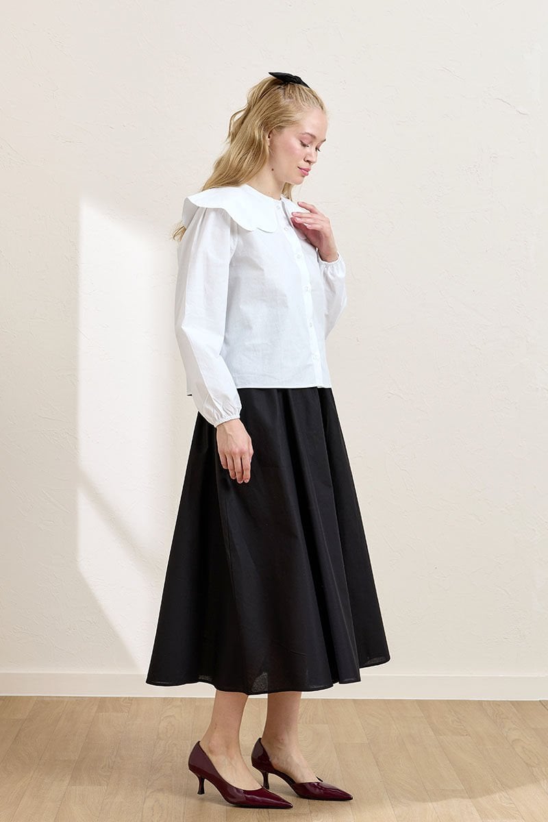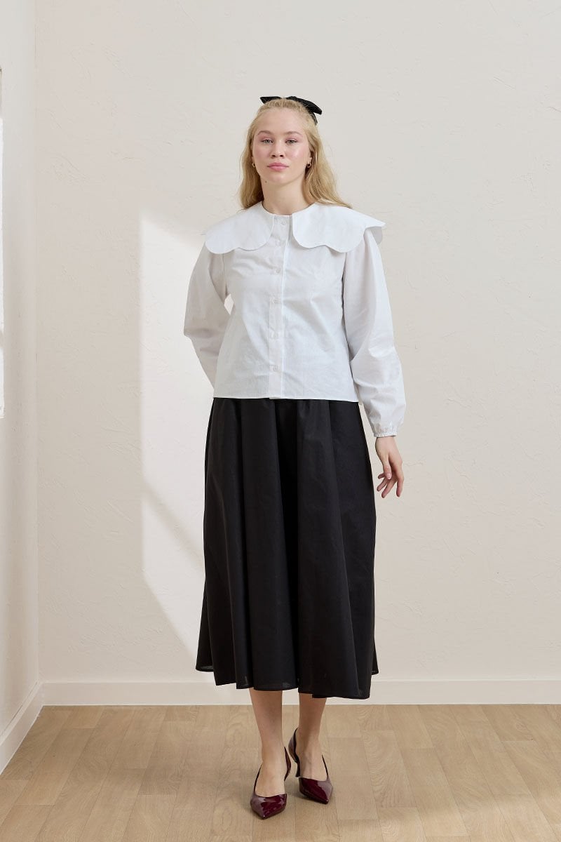 Beyaz Papatya Yaka Crop Gömlek & Siyah Balon Etek