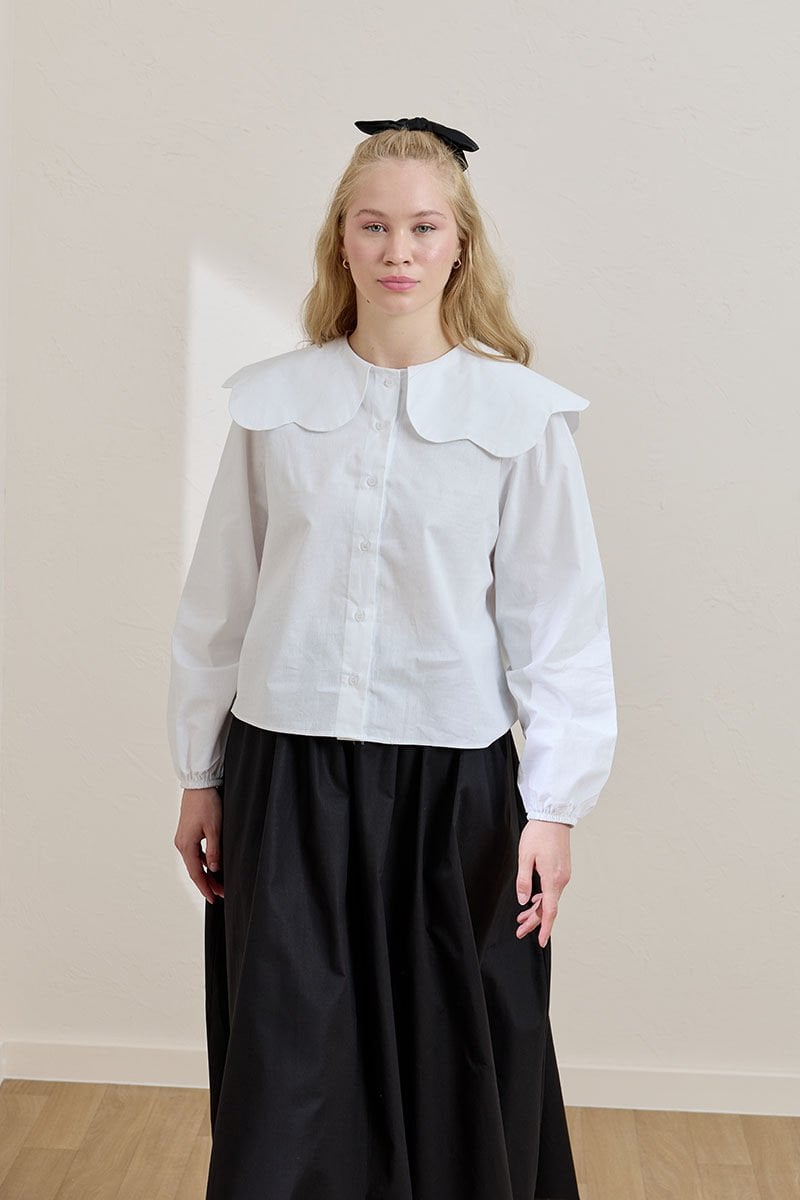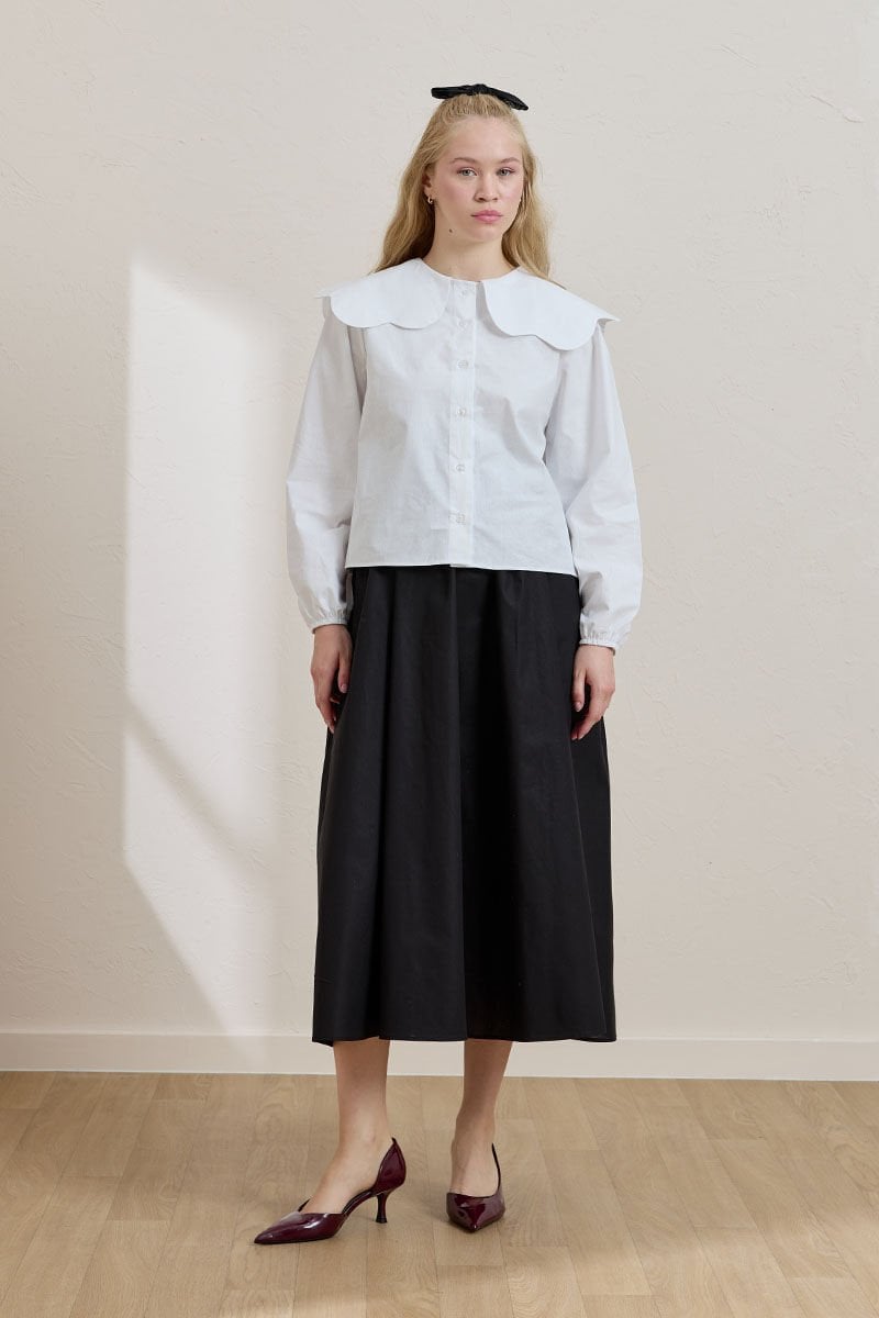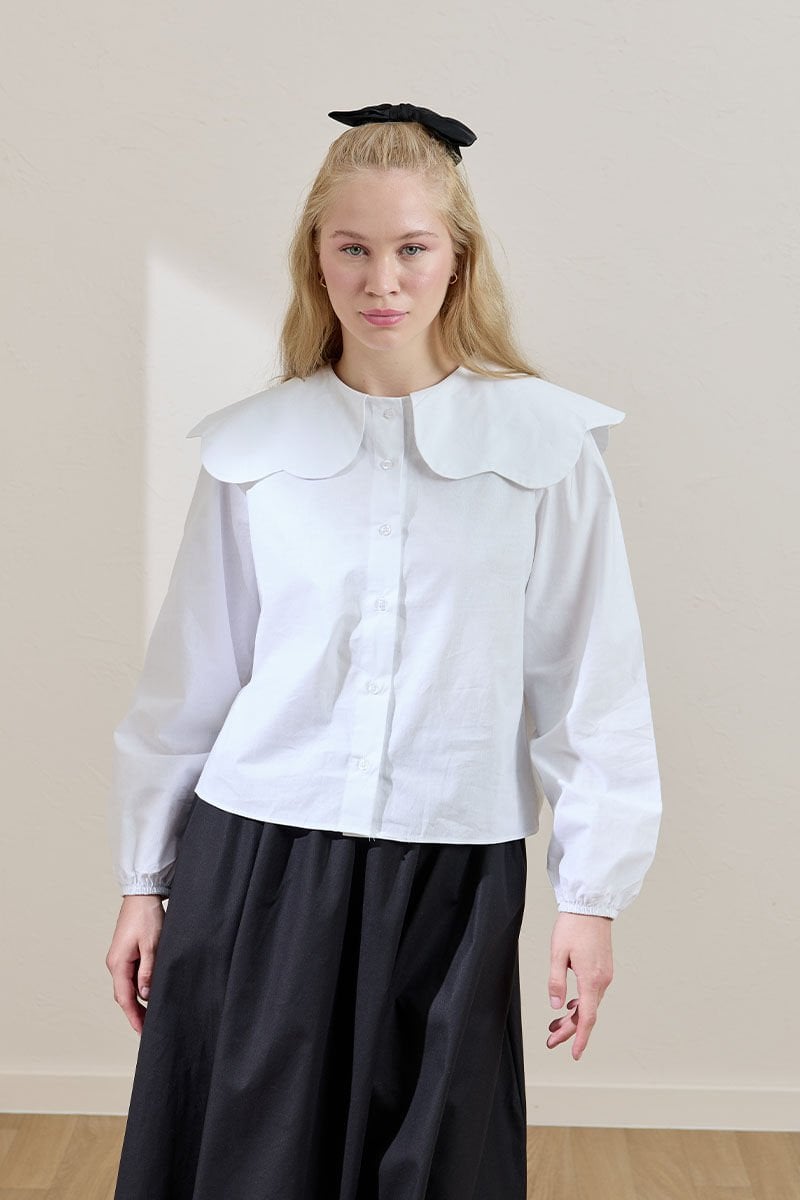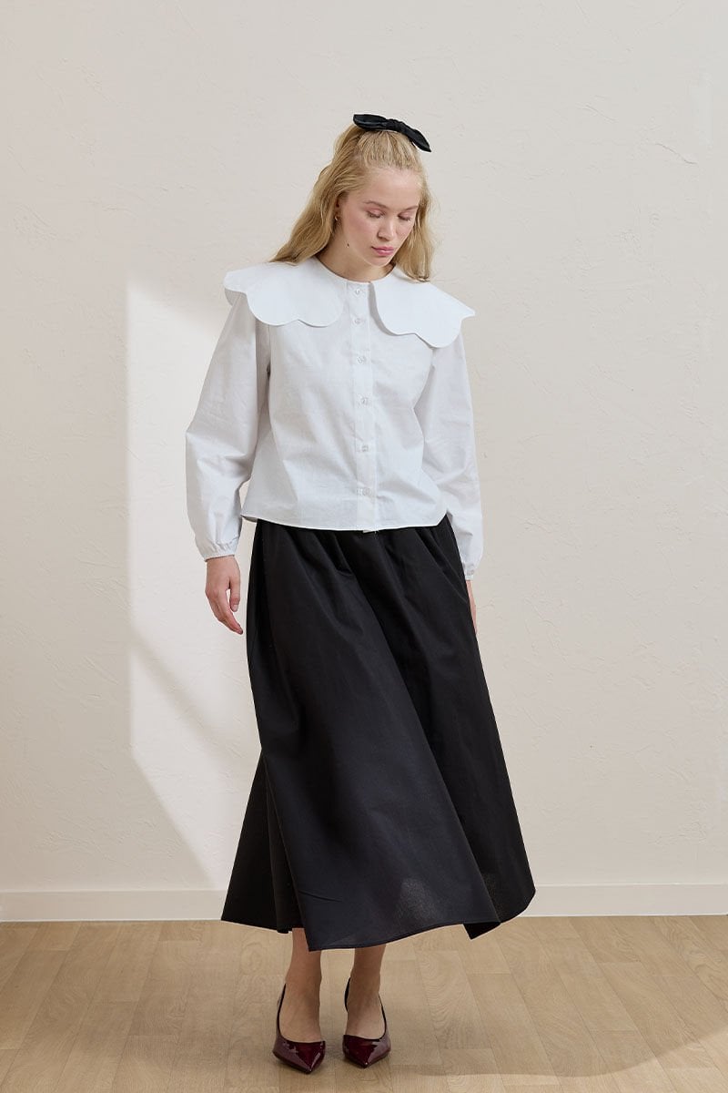 Beyaz Papatya Yaka Crop Gömlek & Siyah Balon Etek
