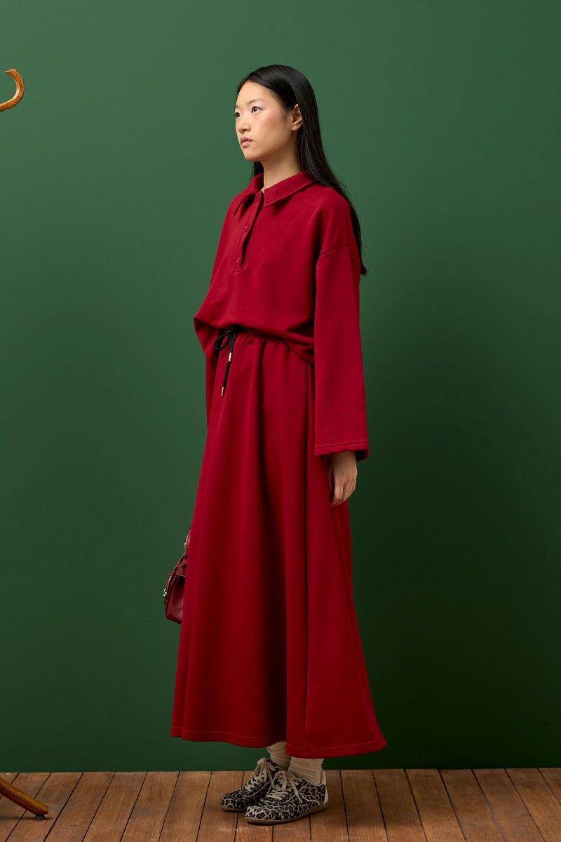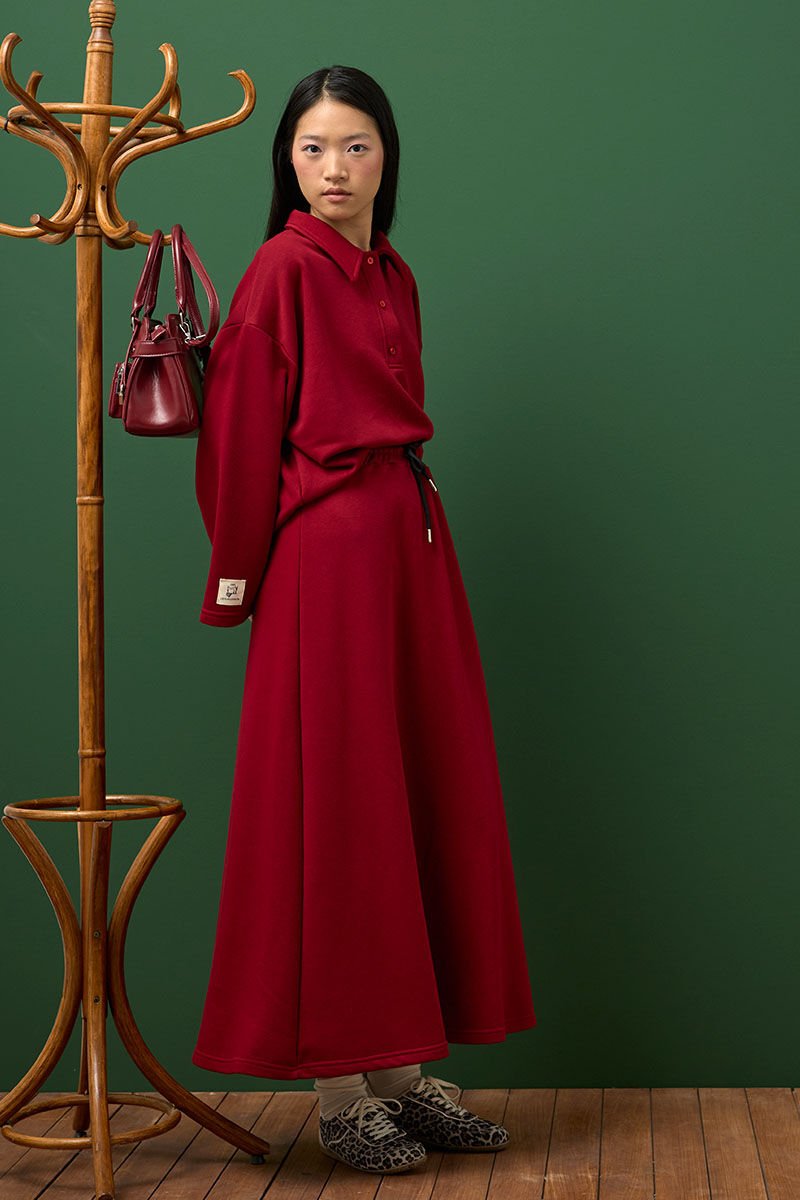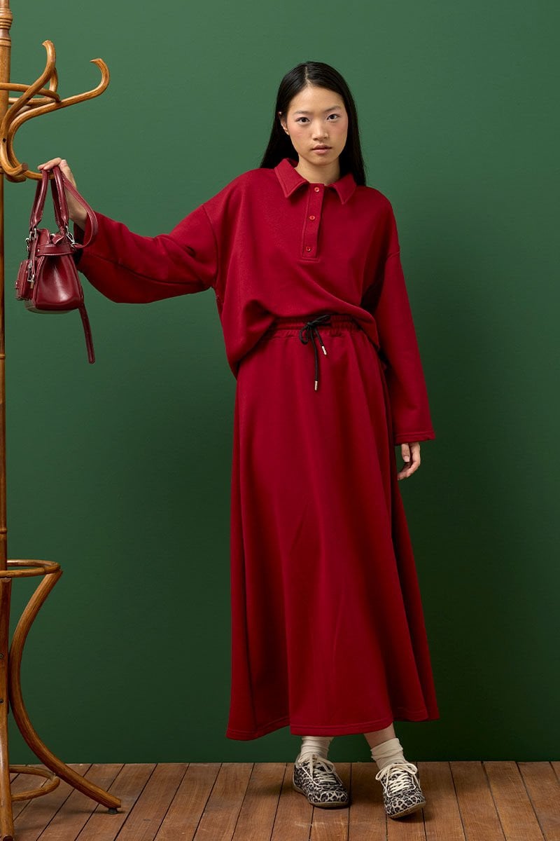Bordo 3 İplik Polo Yaka Body & Etek Takım