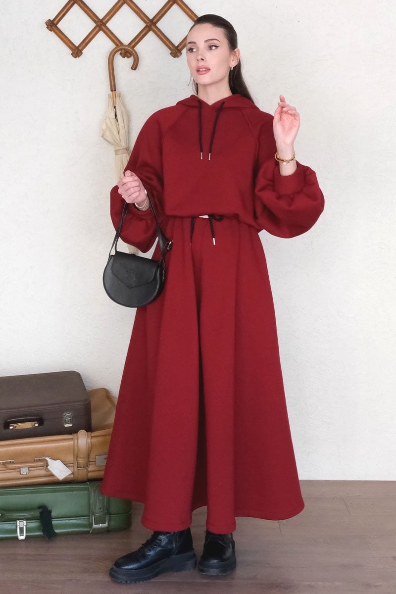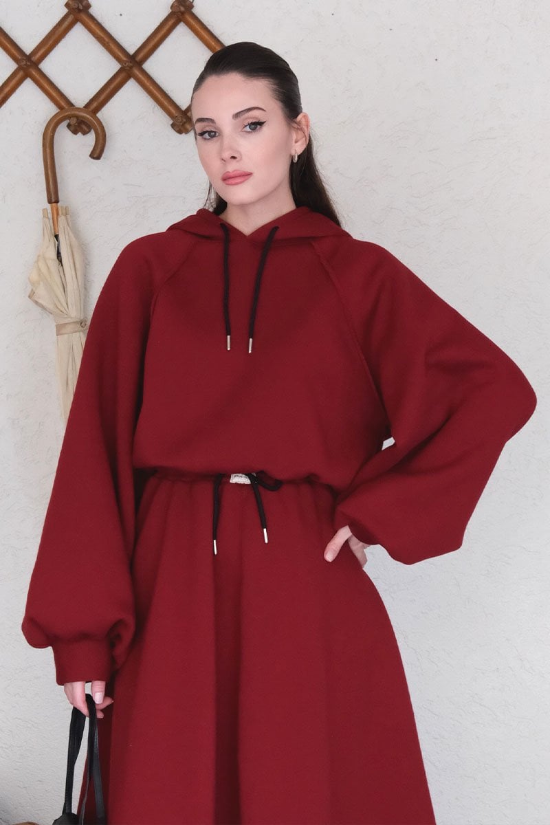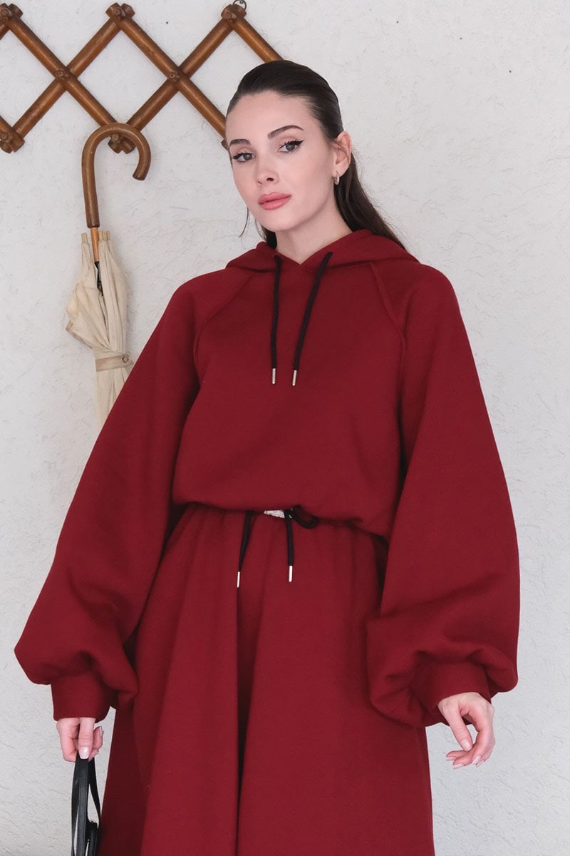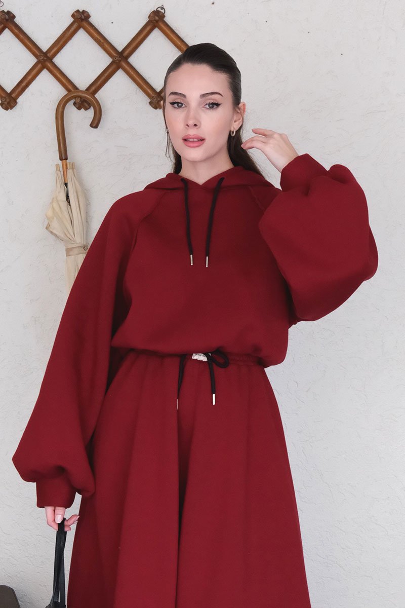 Bordo 3 İplik Sweat & Etek Takım