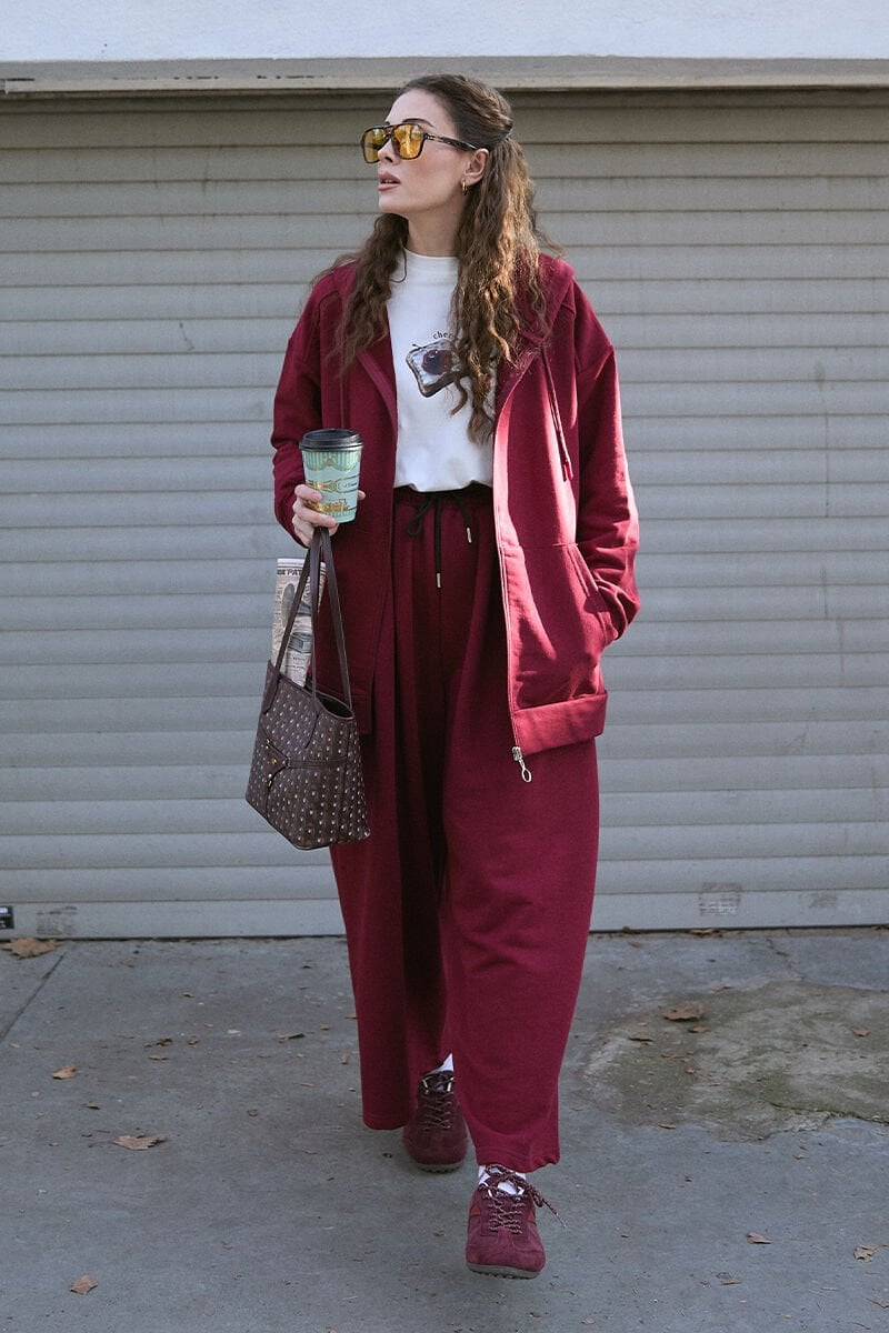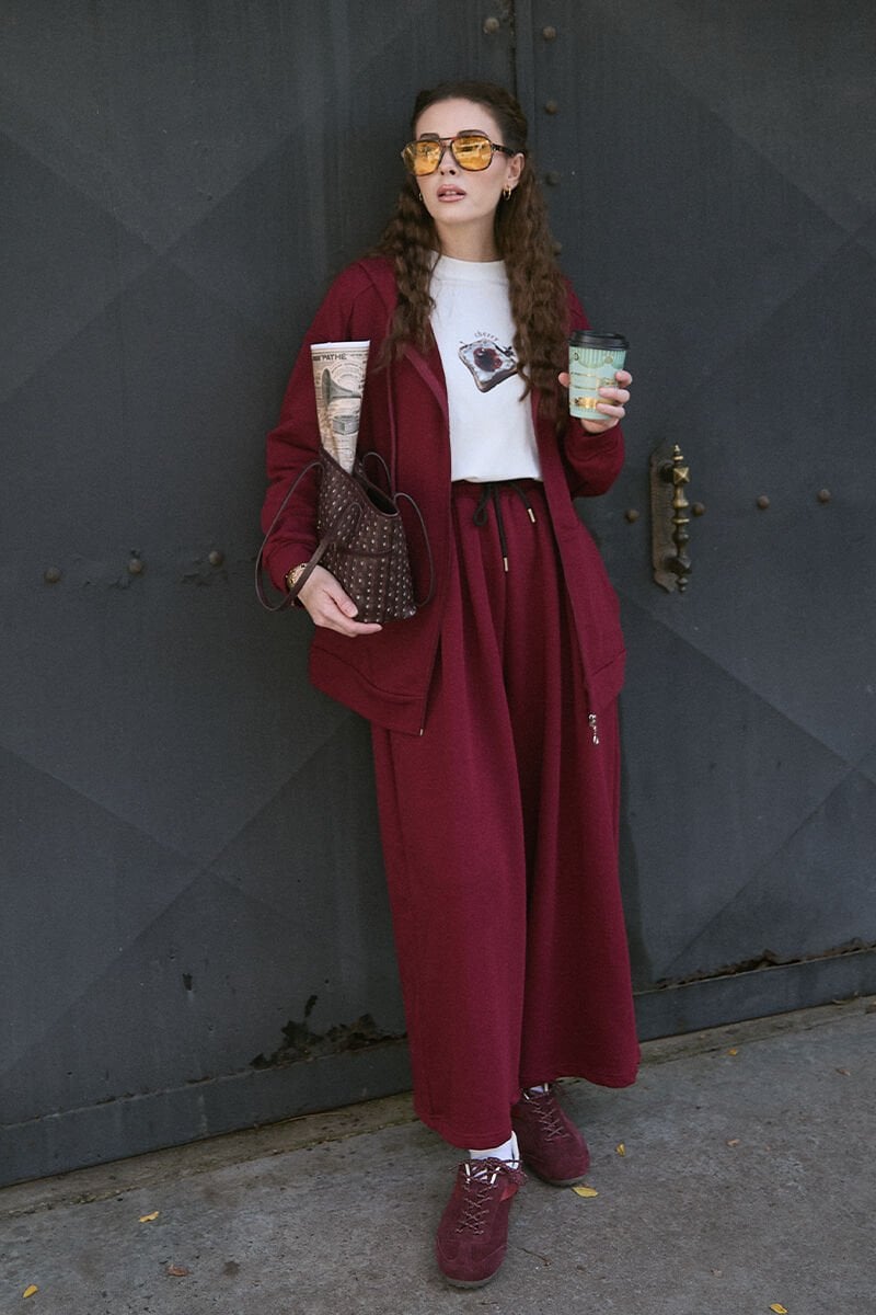 Bordo 3 İplik Uzun Fermuarlı Eşofman Takım