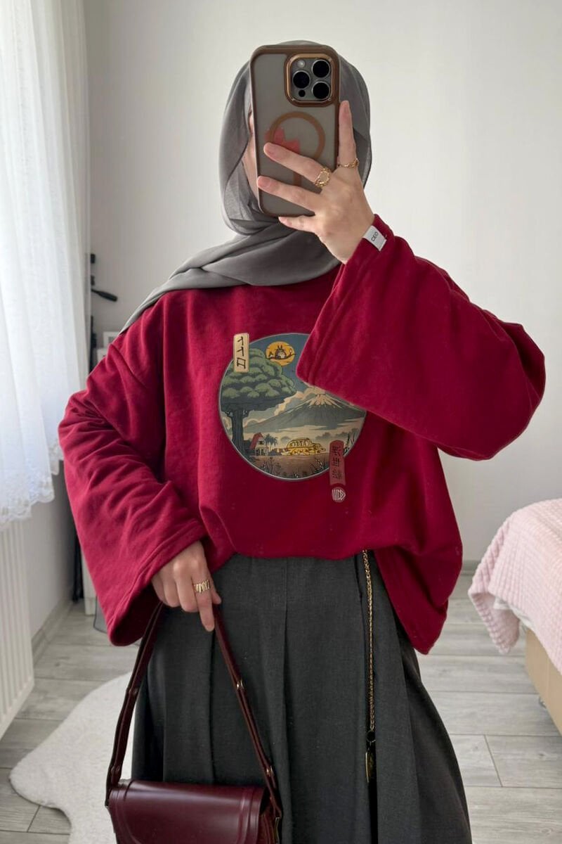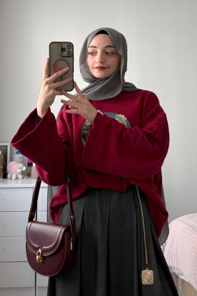 Bordo Baskılı 3 İp Body