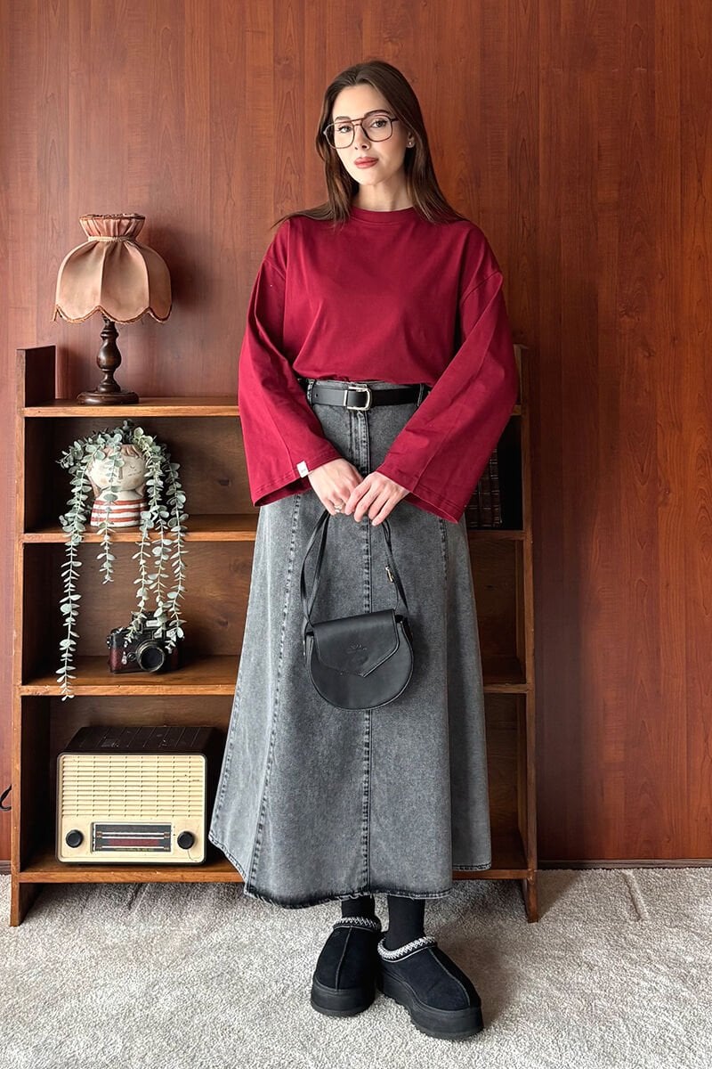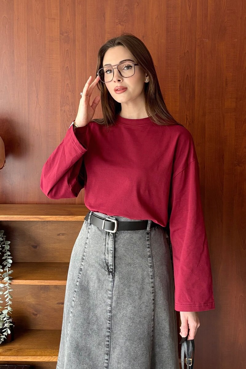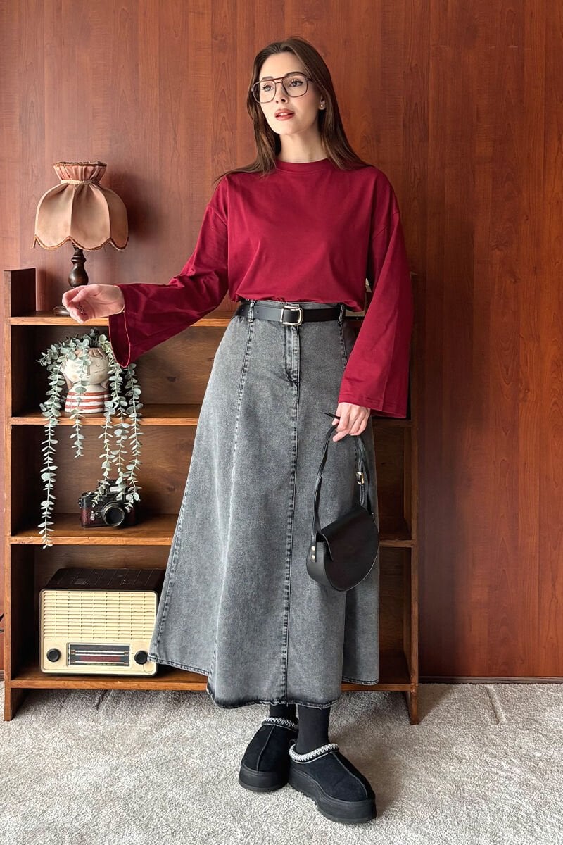 Bordo Body & Antrasit Kot Kloş Etek Takım
