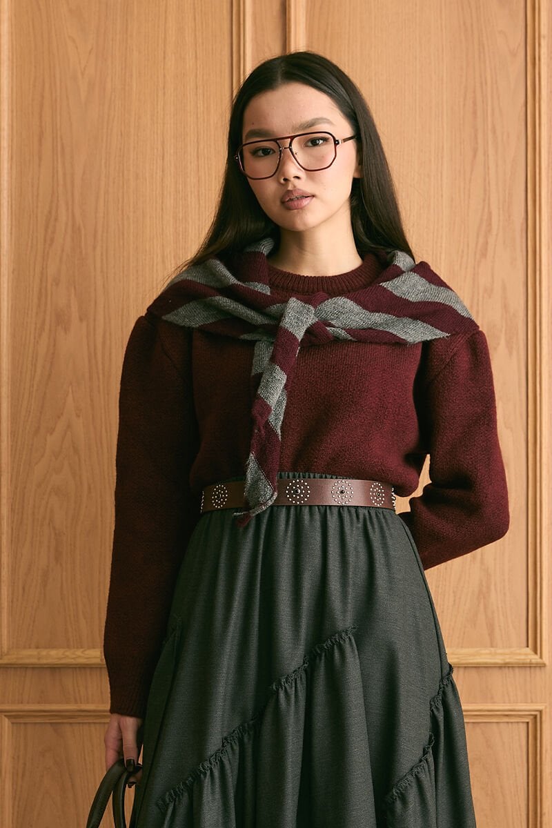 Bordo Çizgili Atkı