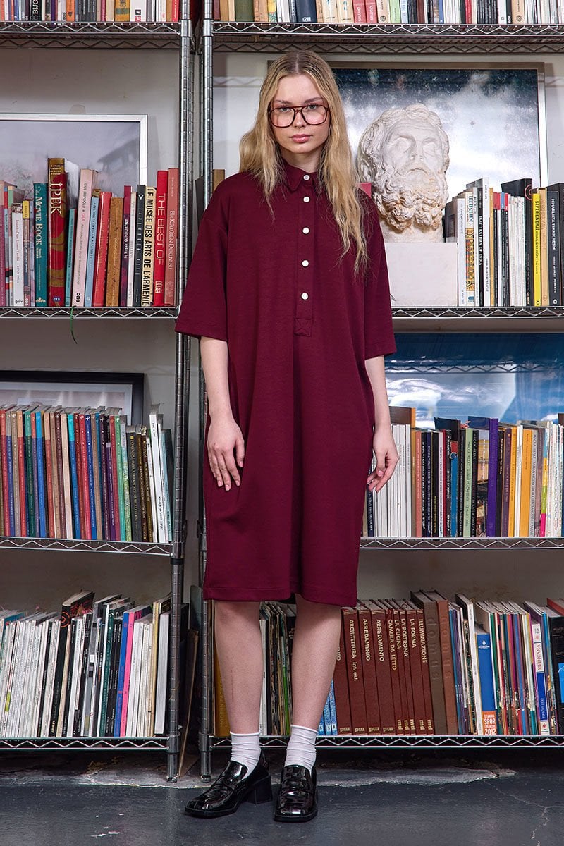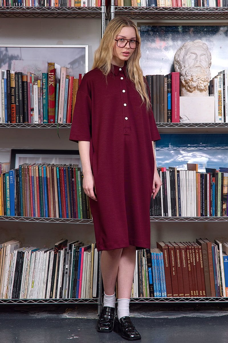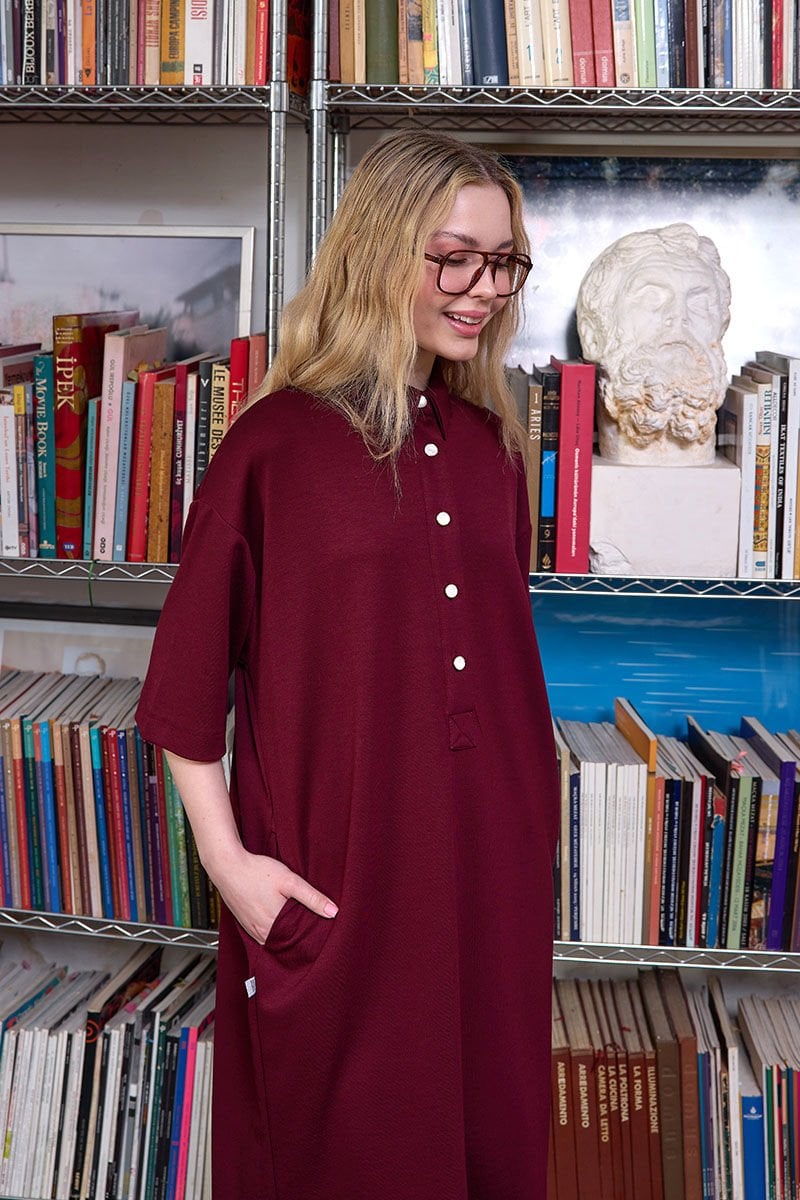 Bordo Düğme Detay Oysho Midi Elbise