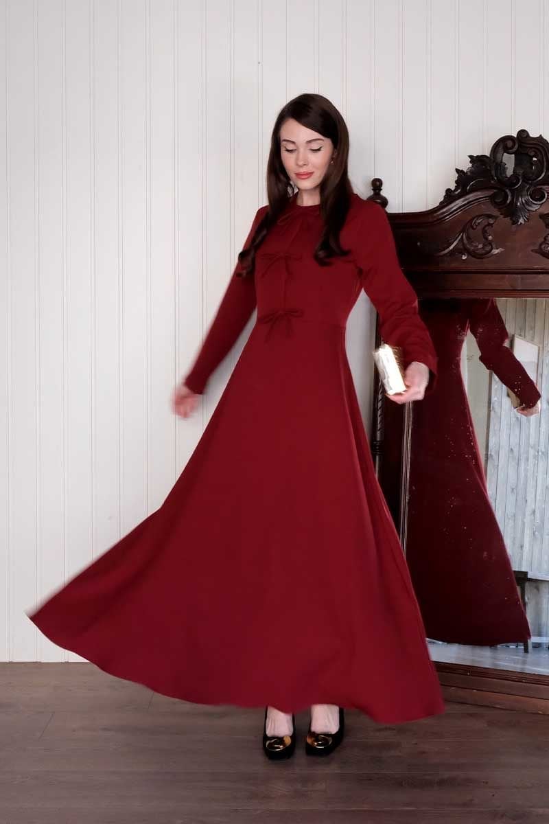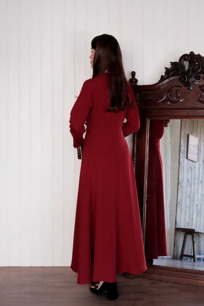 Bordo Fiyonk Detay Krep Elbise