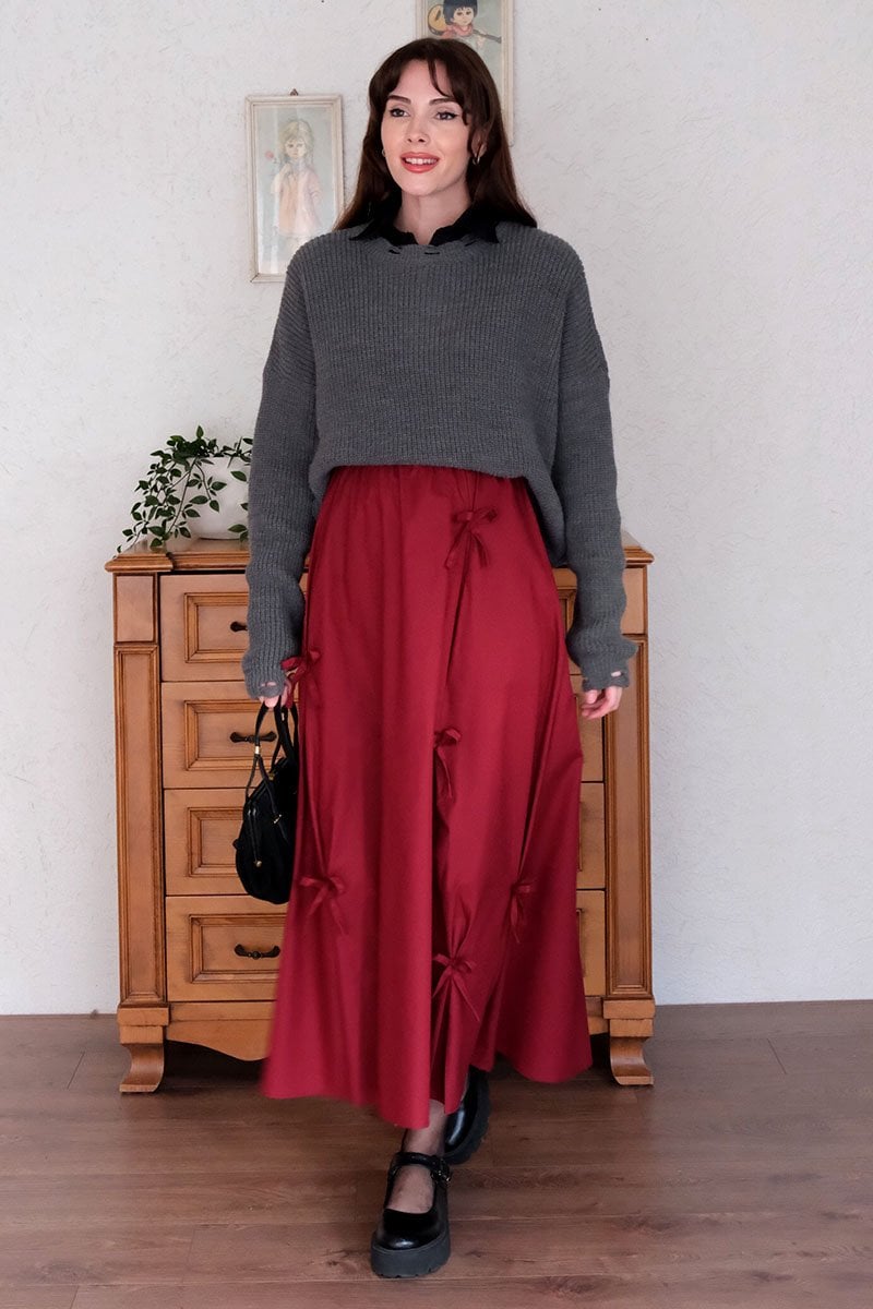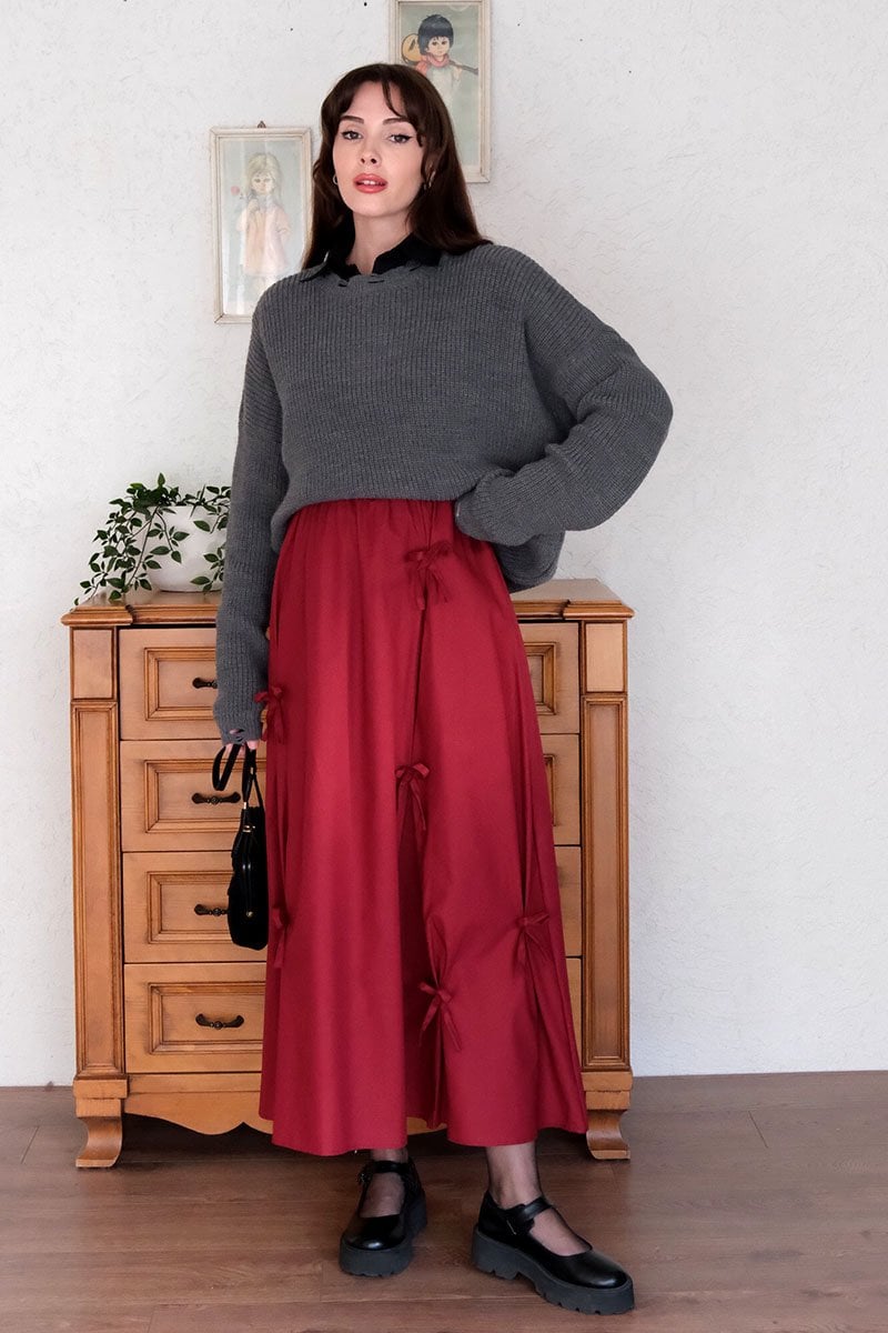 Bordo Fiyonklu Etek