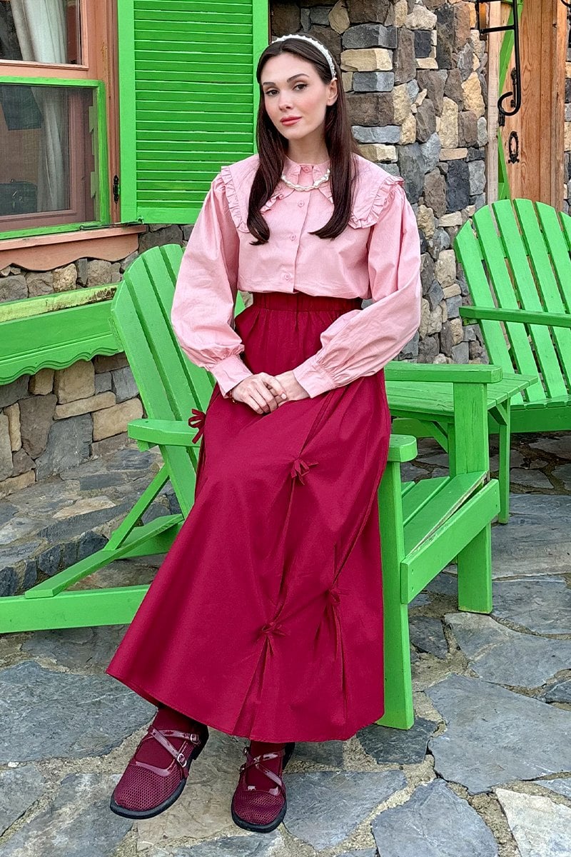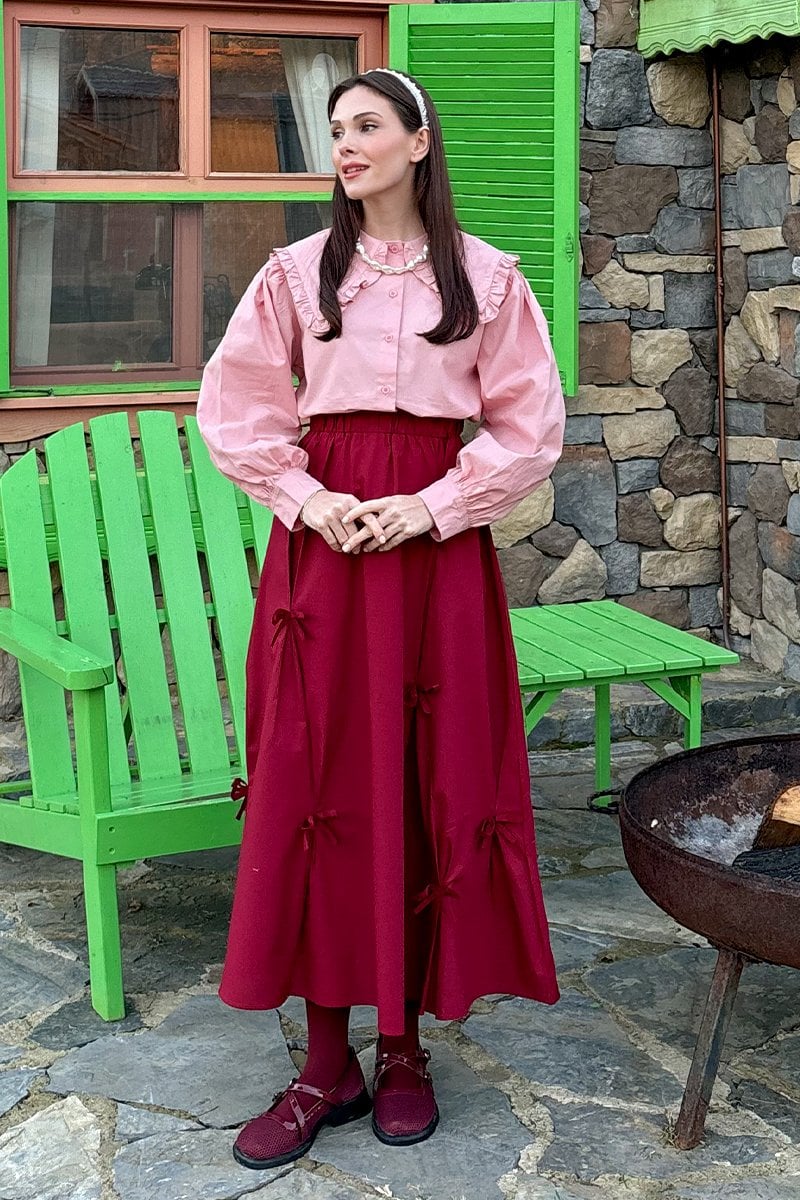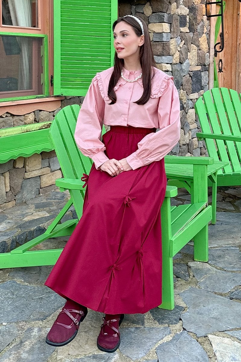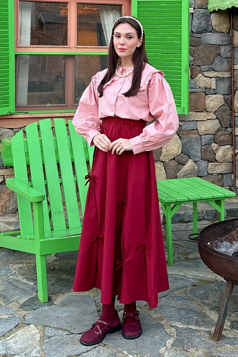Bordo Fiyonklu Etek