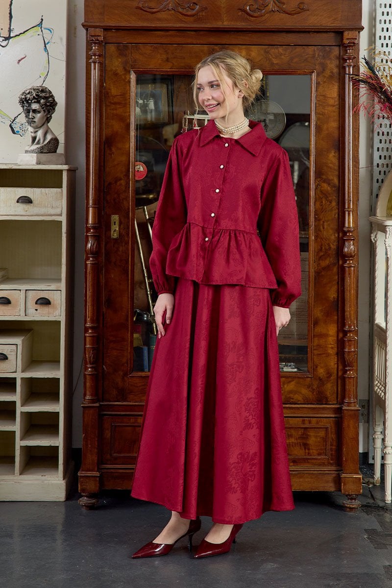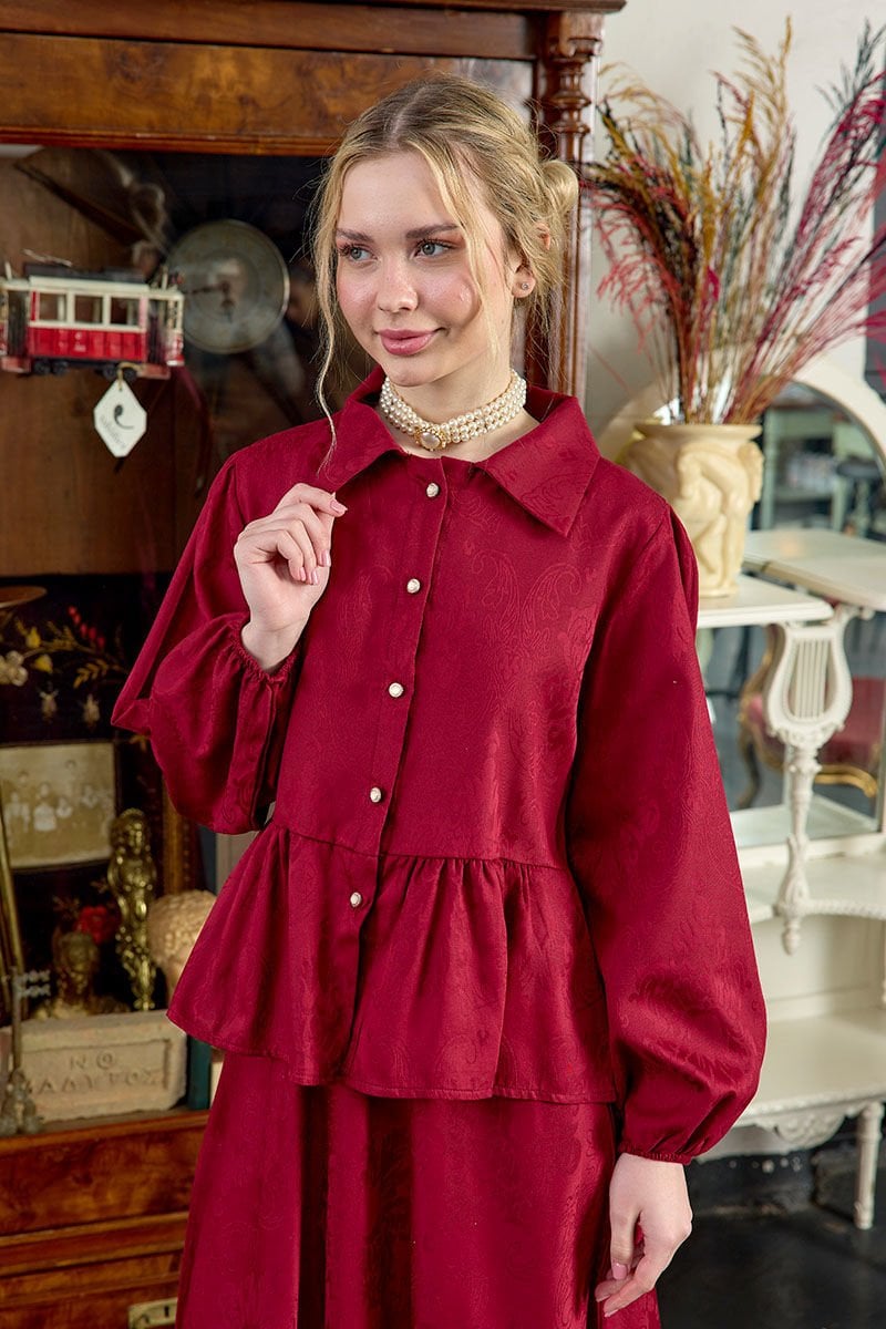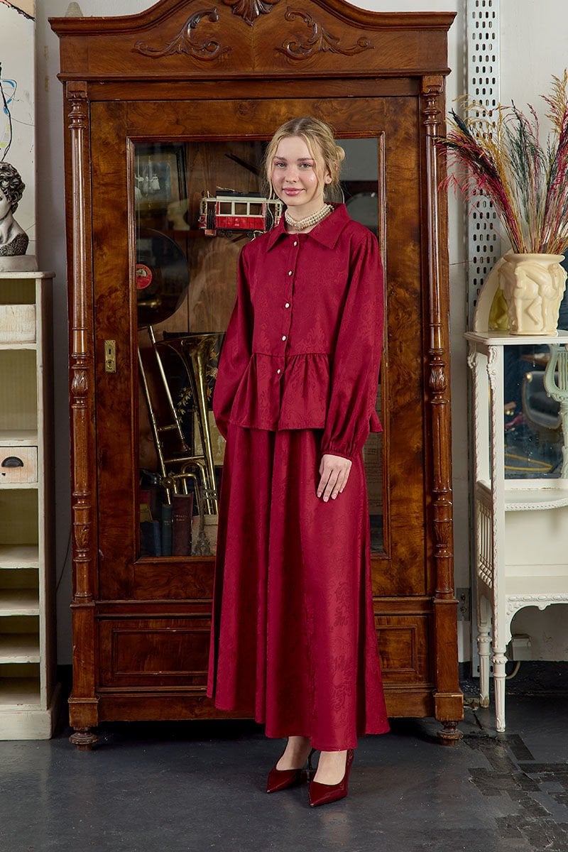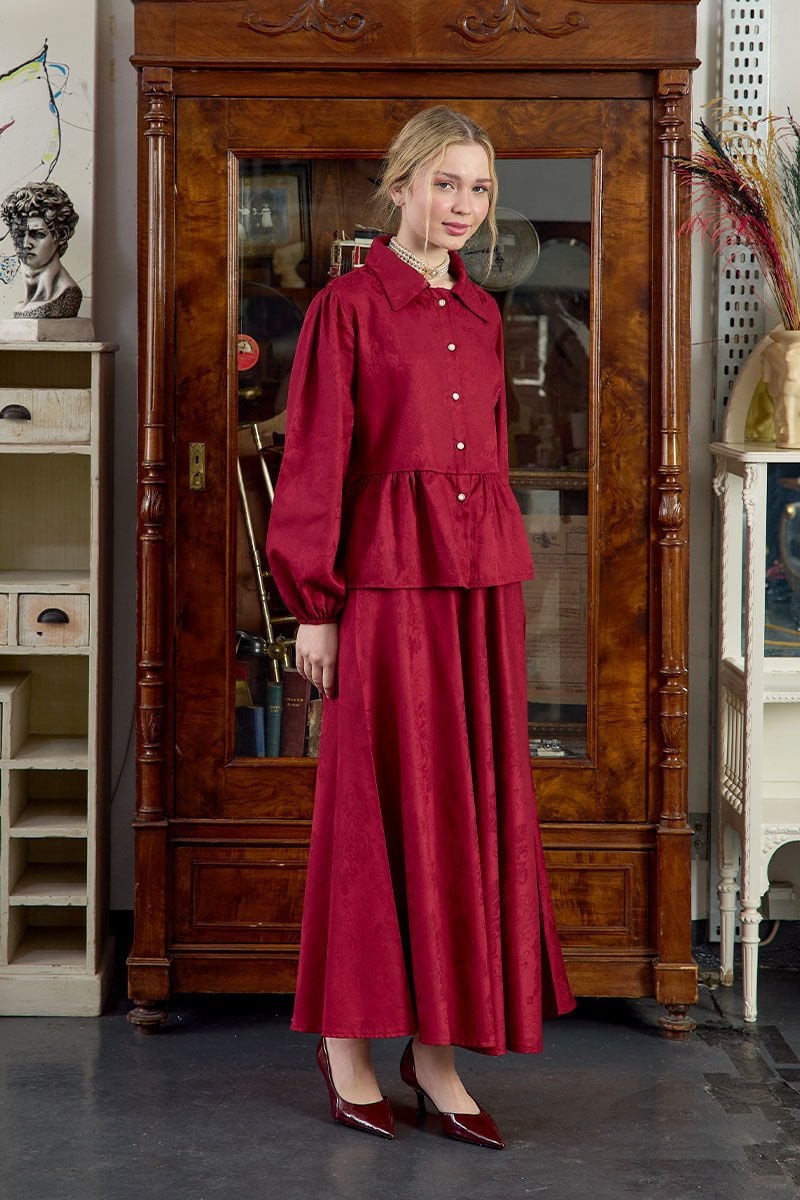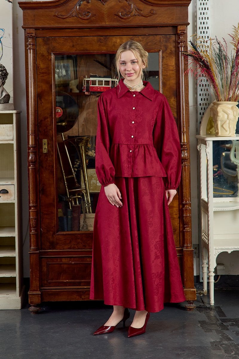 Bordo Jakarlı Gömlek Etek Takım