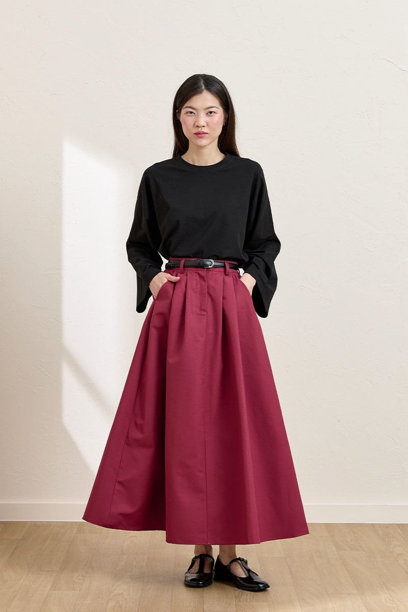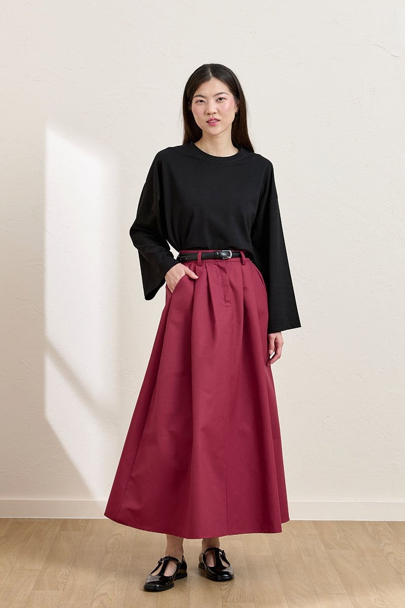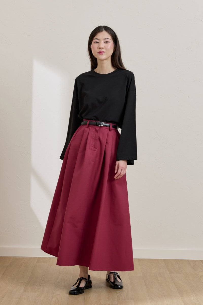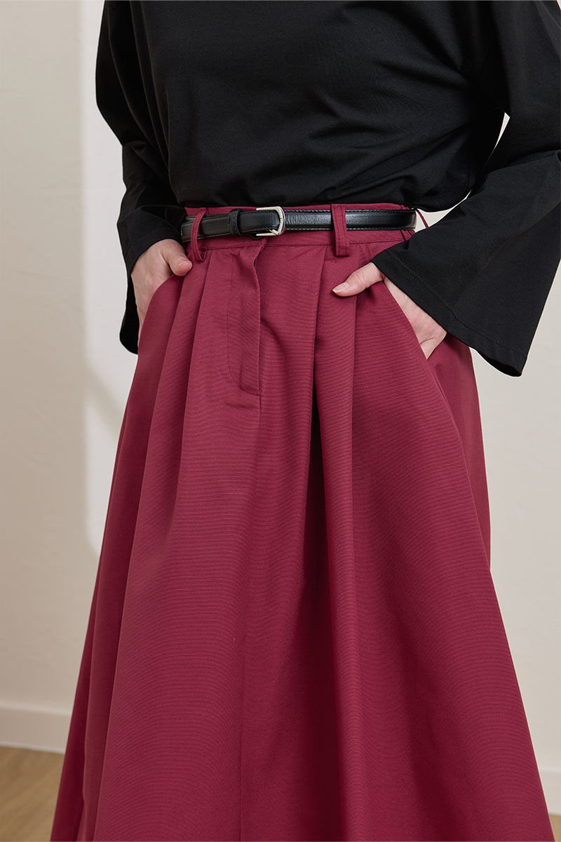 Bordo keten Tek Düğmeli Etek & Siyah Body Takım