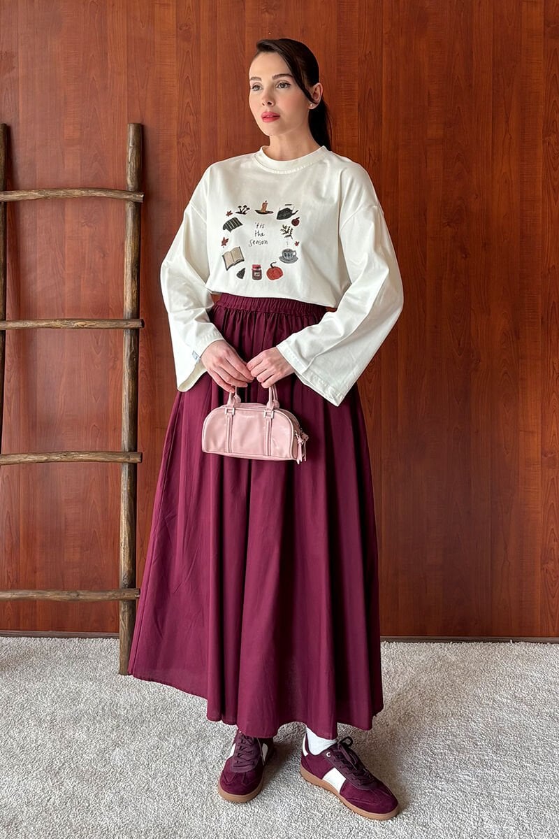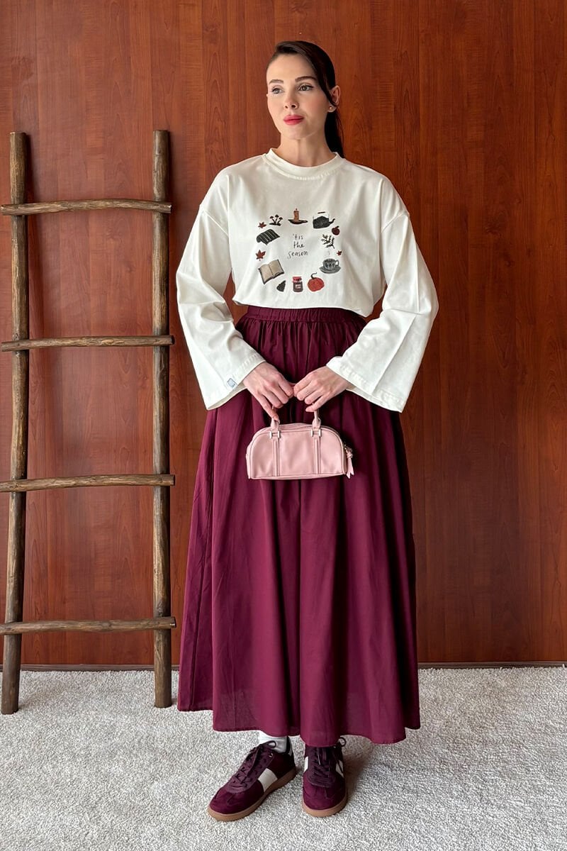 Bordo Kraşlı Balon Etek