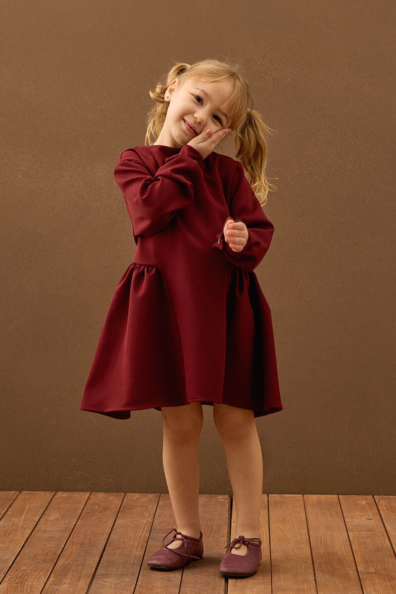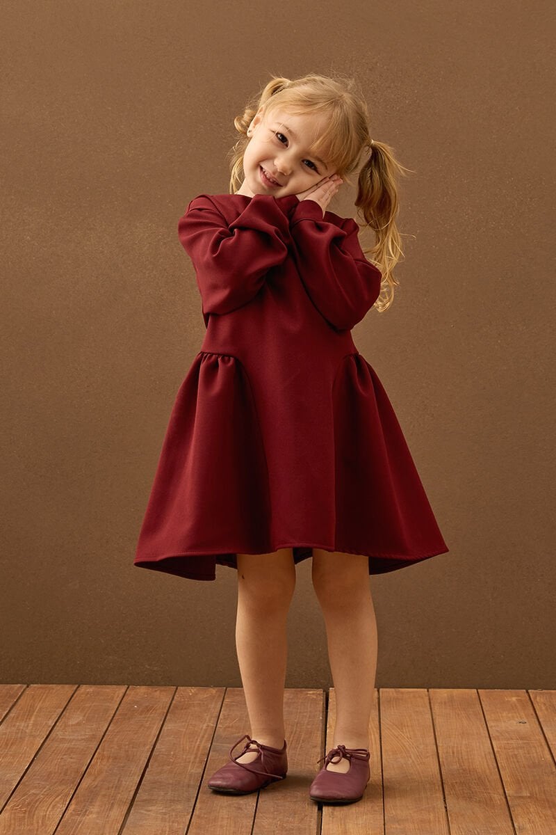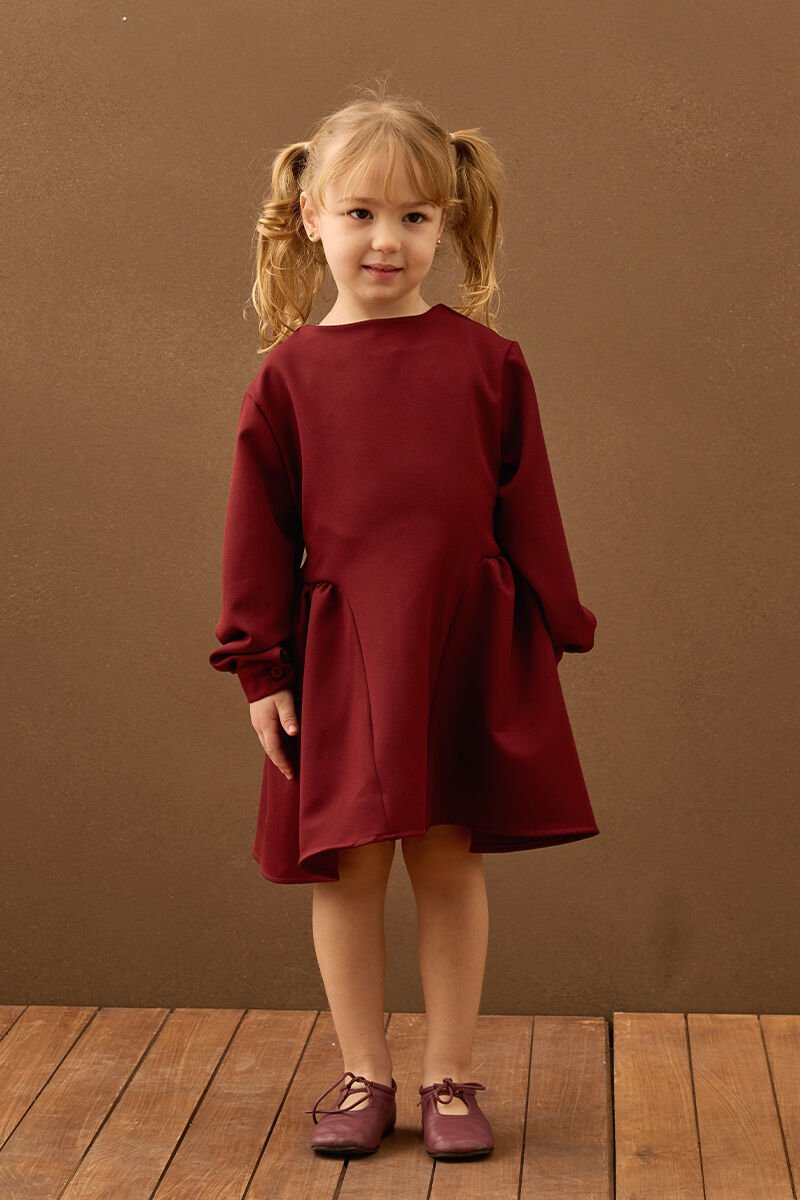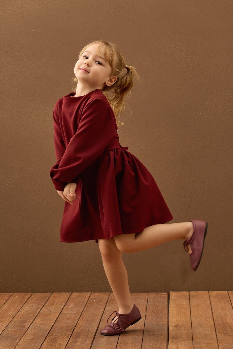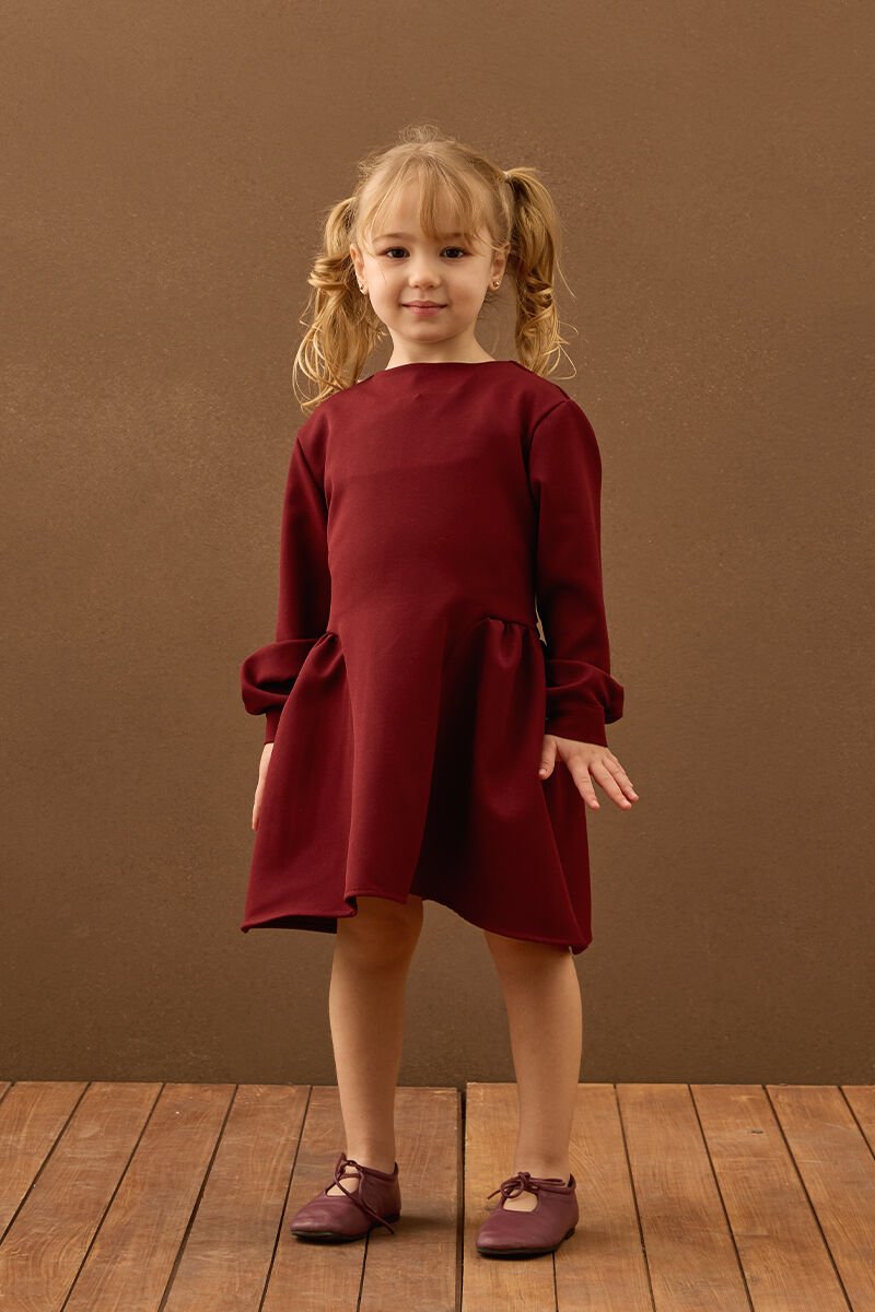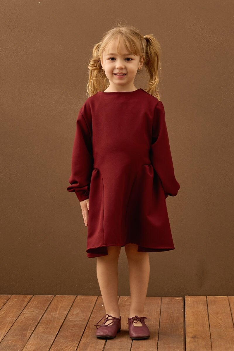 Bordo Krep Korsaj Detay Çocuk Elbise