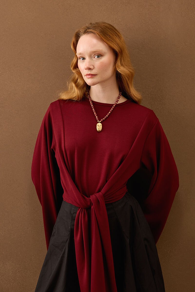 Bordo Oysho Bağlamalı Bluz