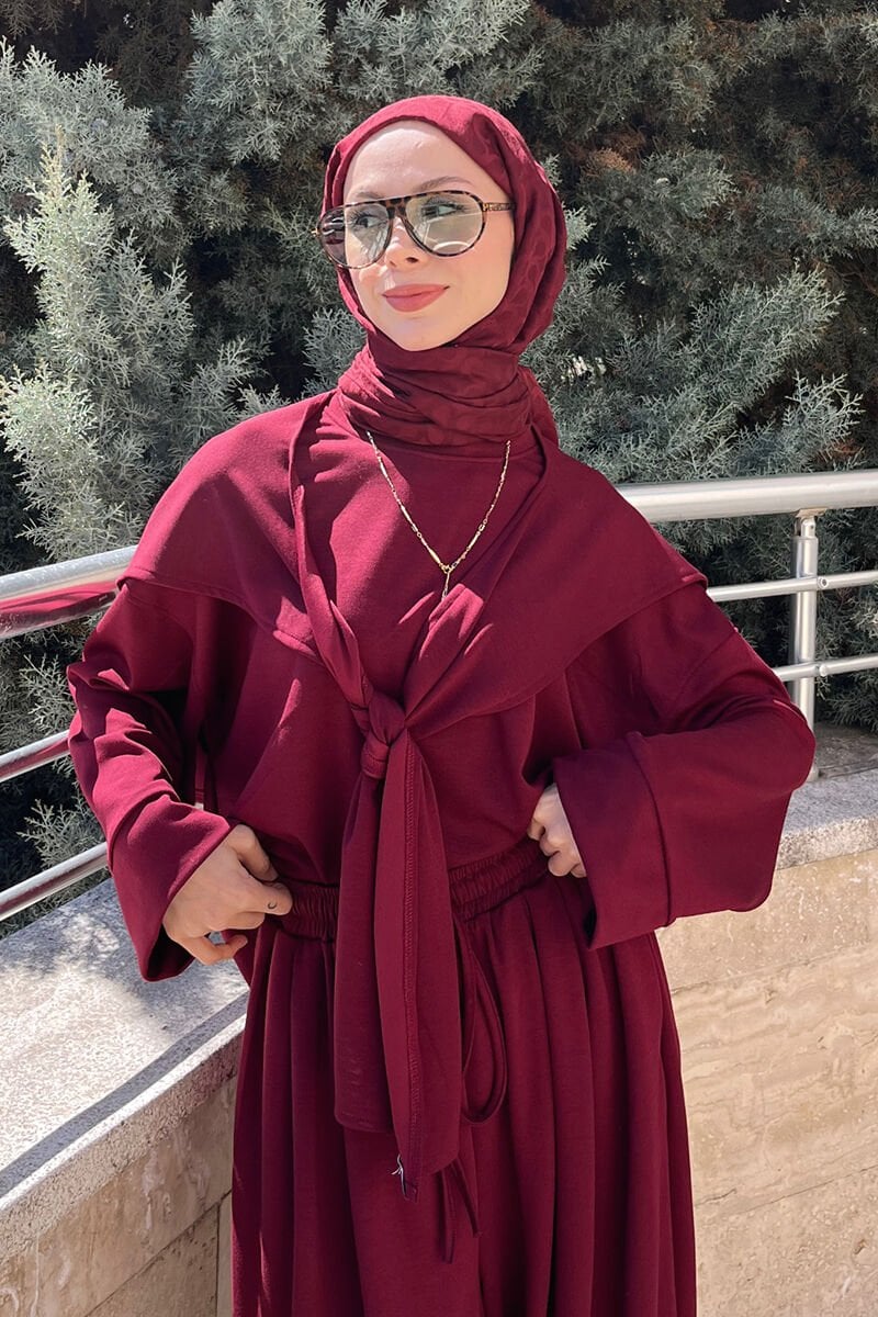 Bordo Oysho Bağlamalı Pantolon Takım