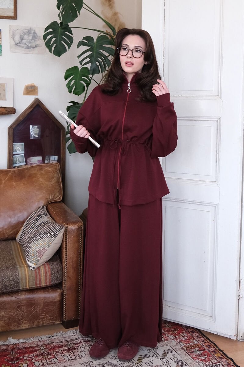Bordo Oysho Fermuarlı Takım
