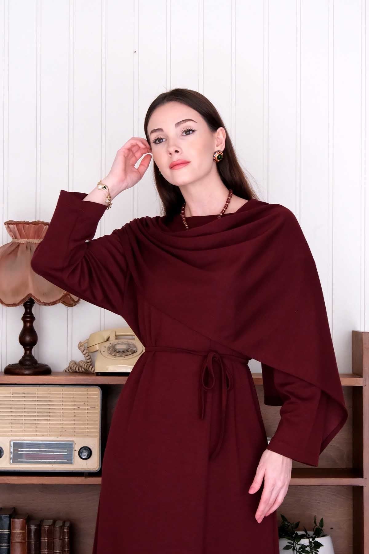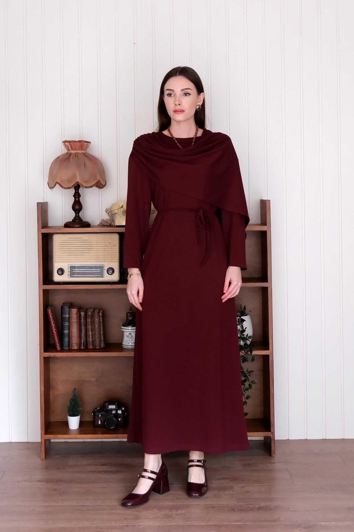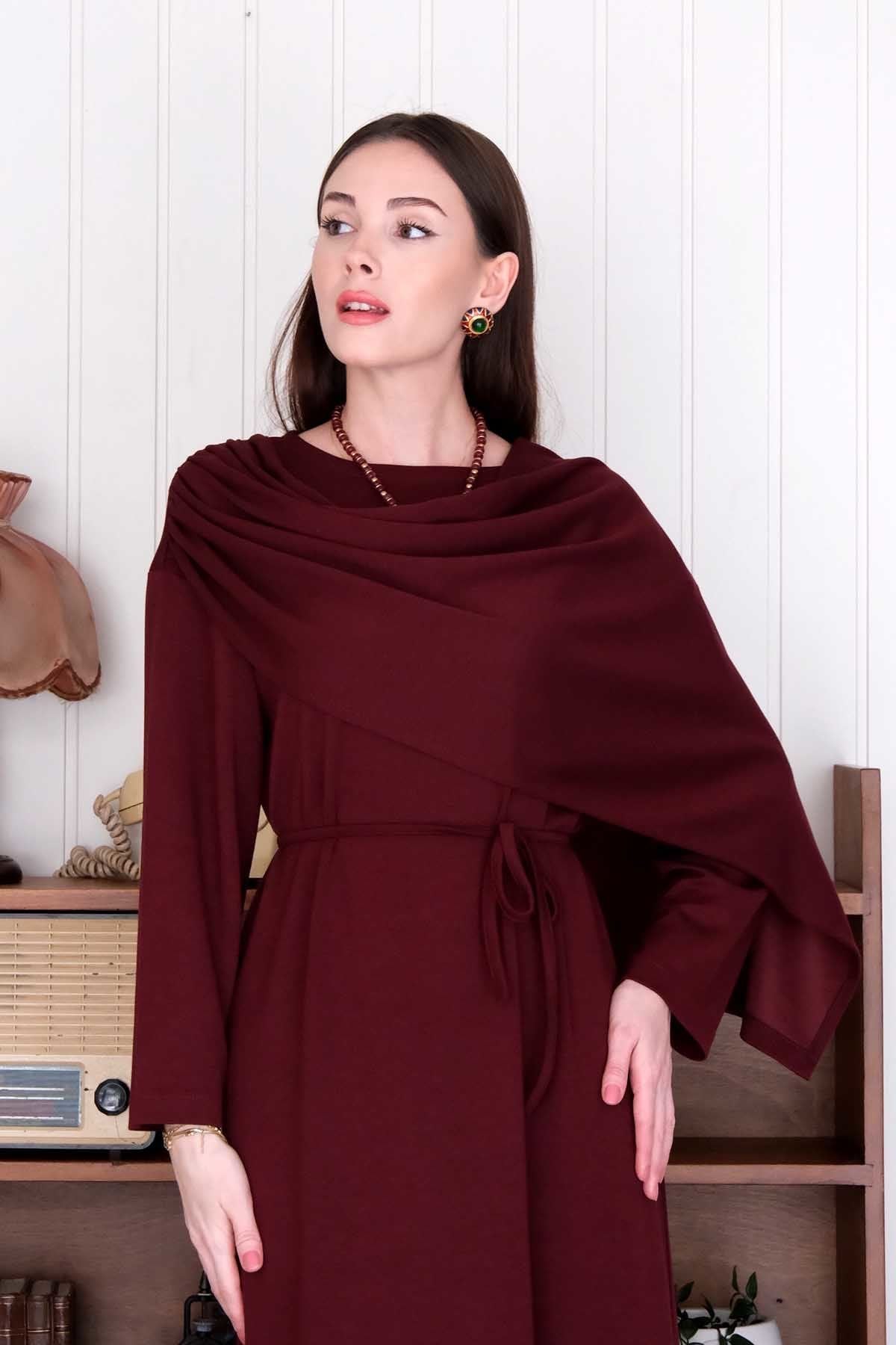 Bordo Oysho Şal Yaka Elbise