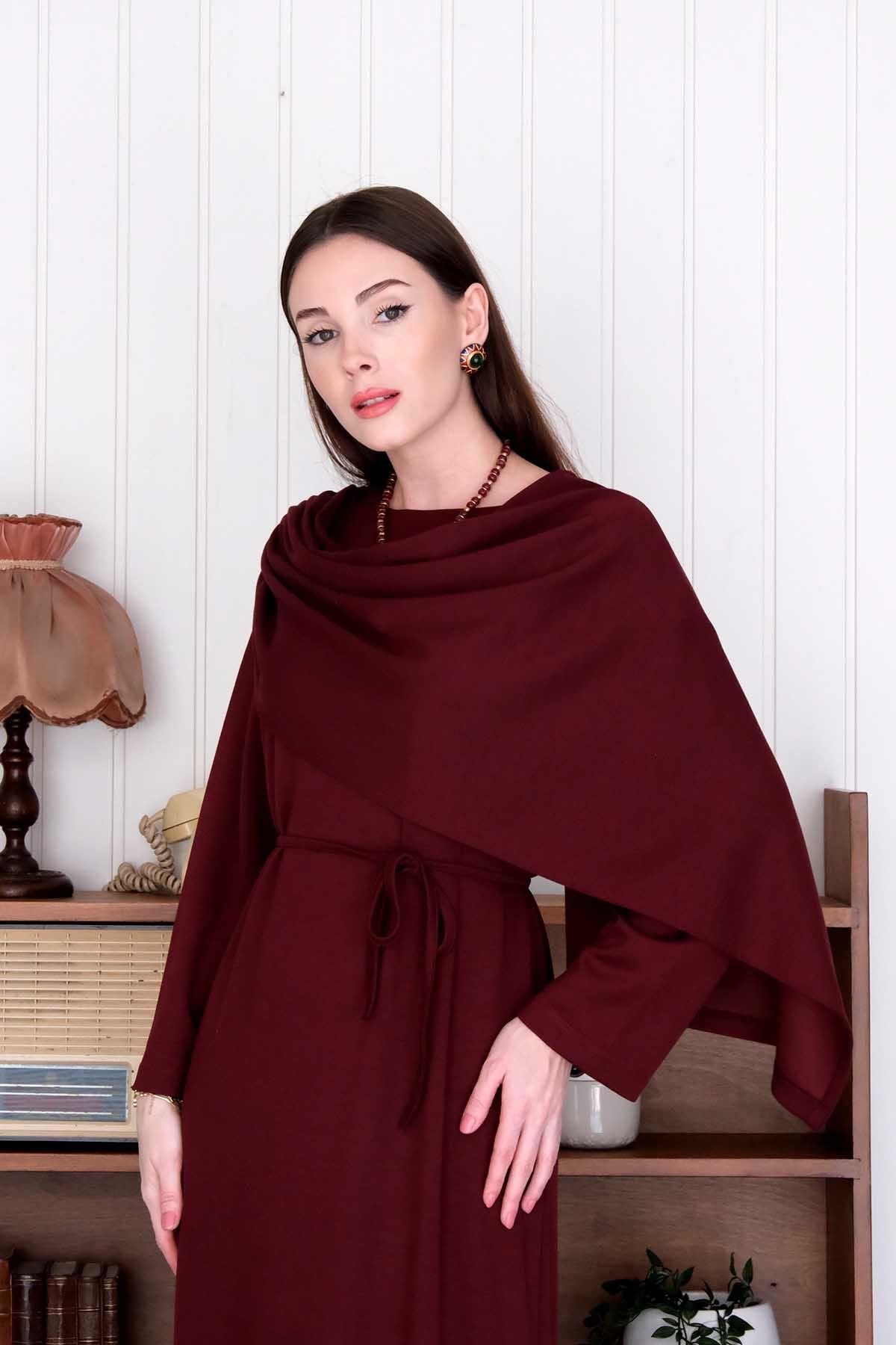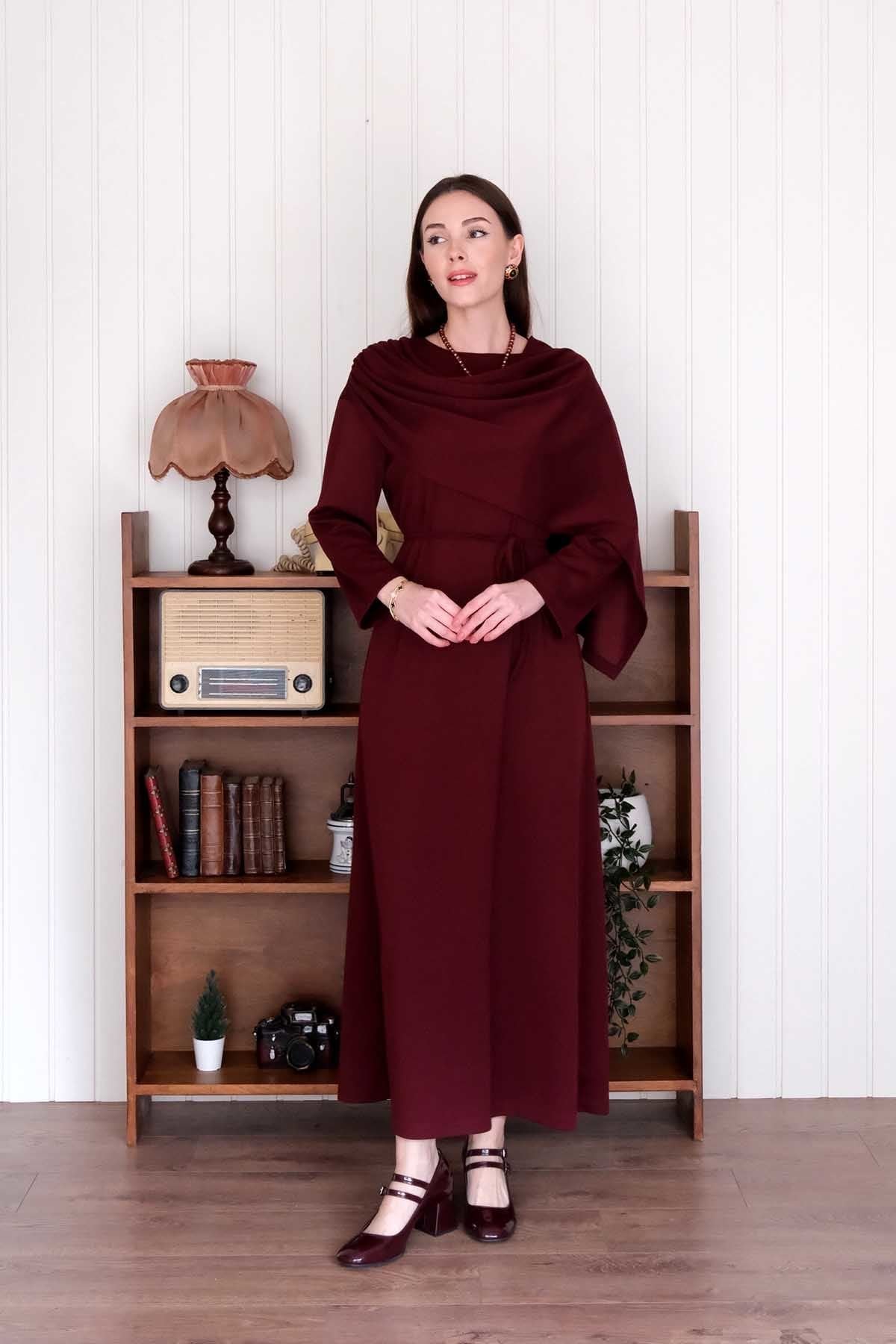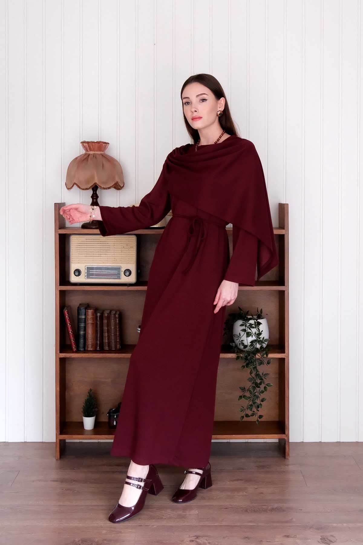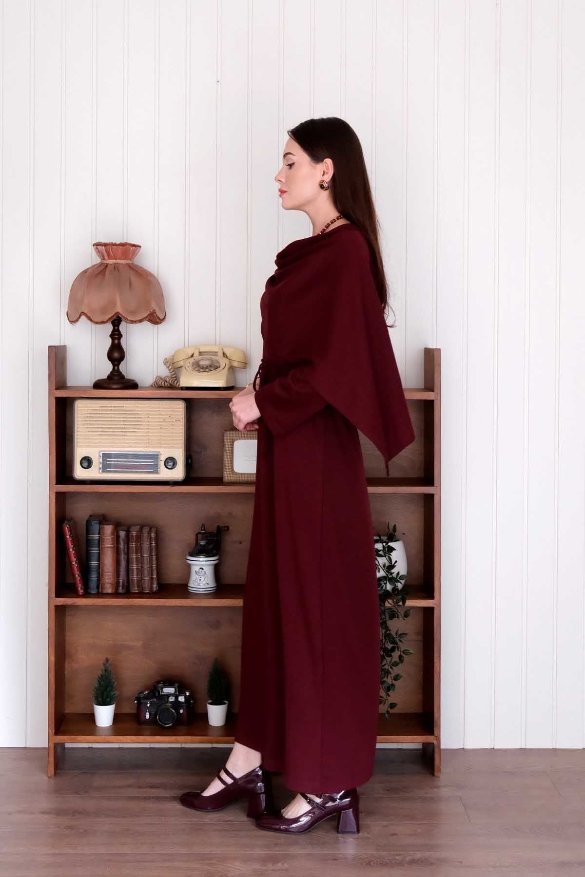 Bordo Oysho Şal Yaka Elbise