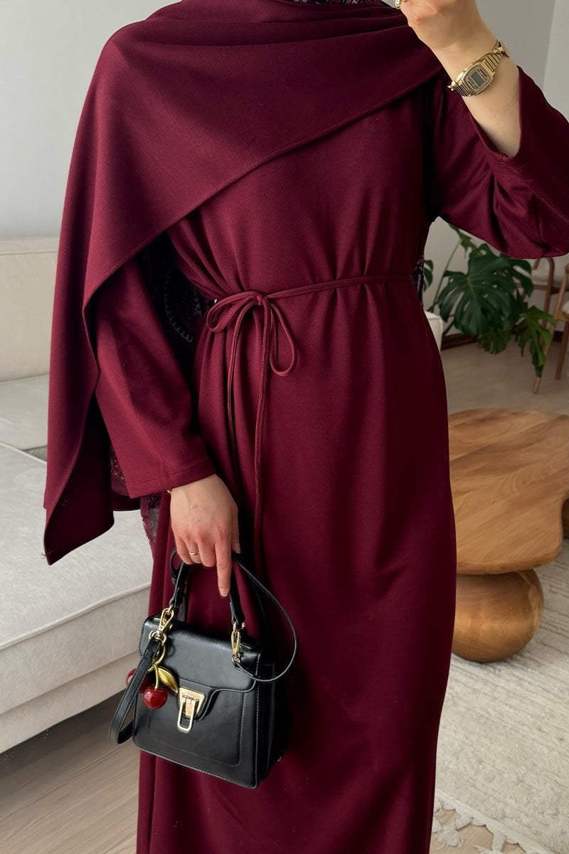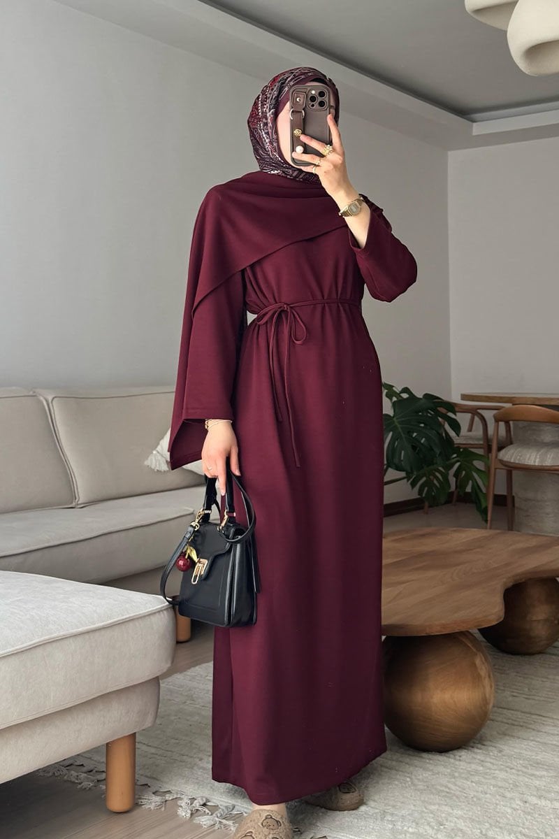 Bordo Oysho Şal Yaka Elbise /Sema Tektaş