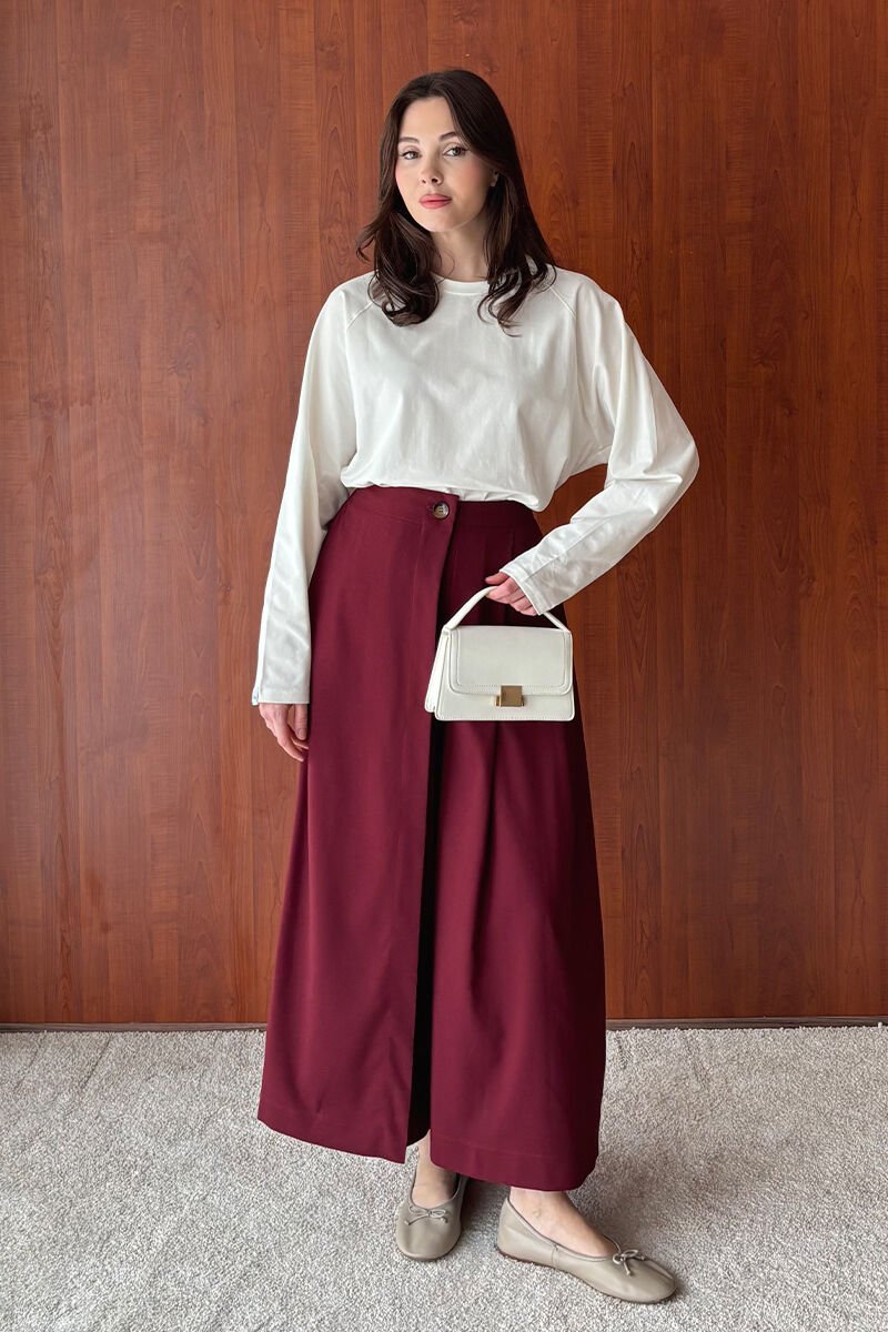 Bordo Poliviskon Etekli Pantolon