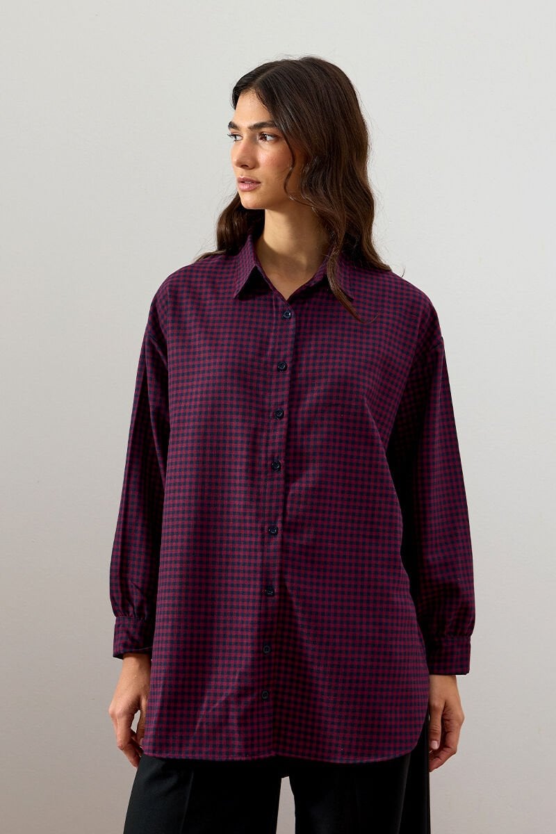 Bordo Pötikare Gömlek