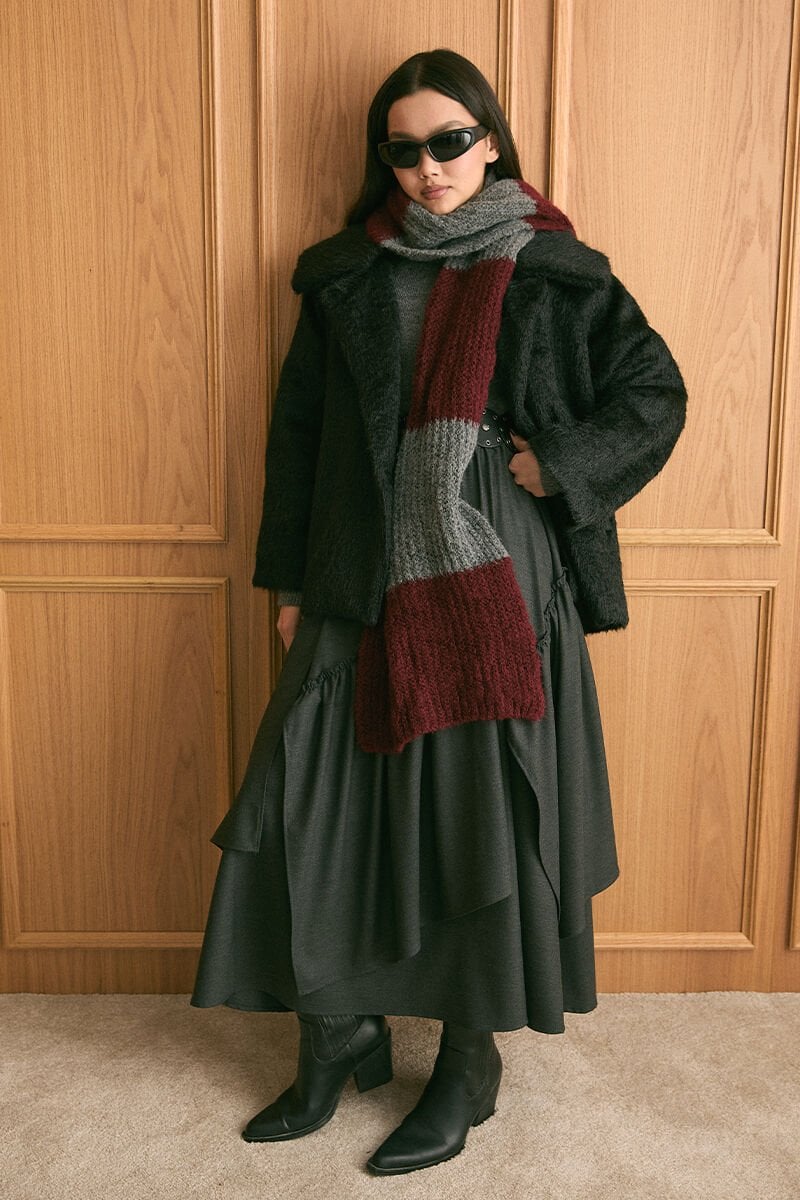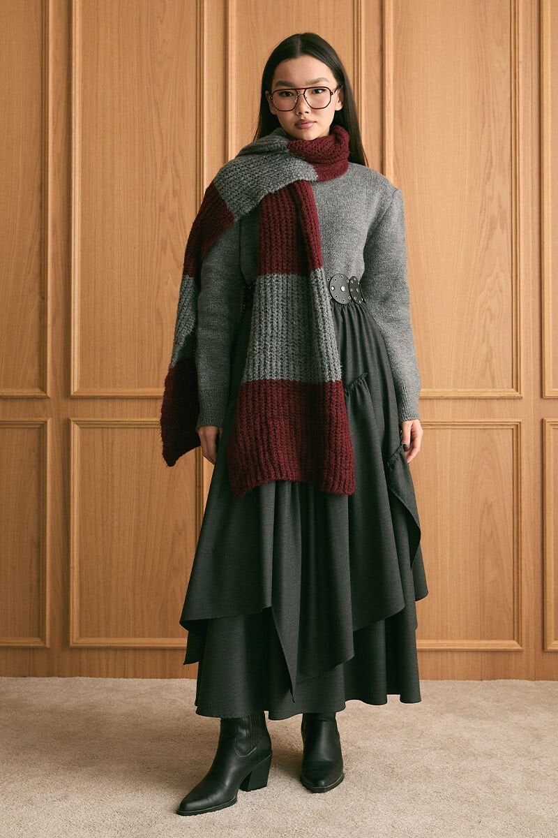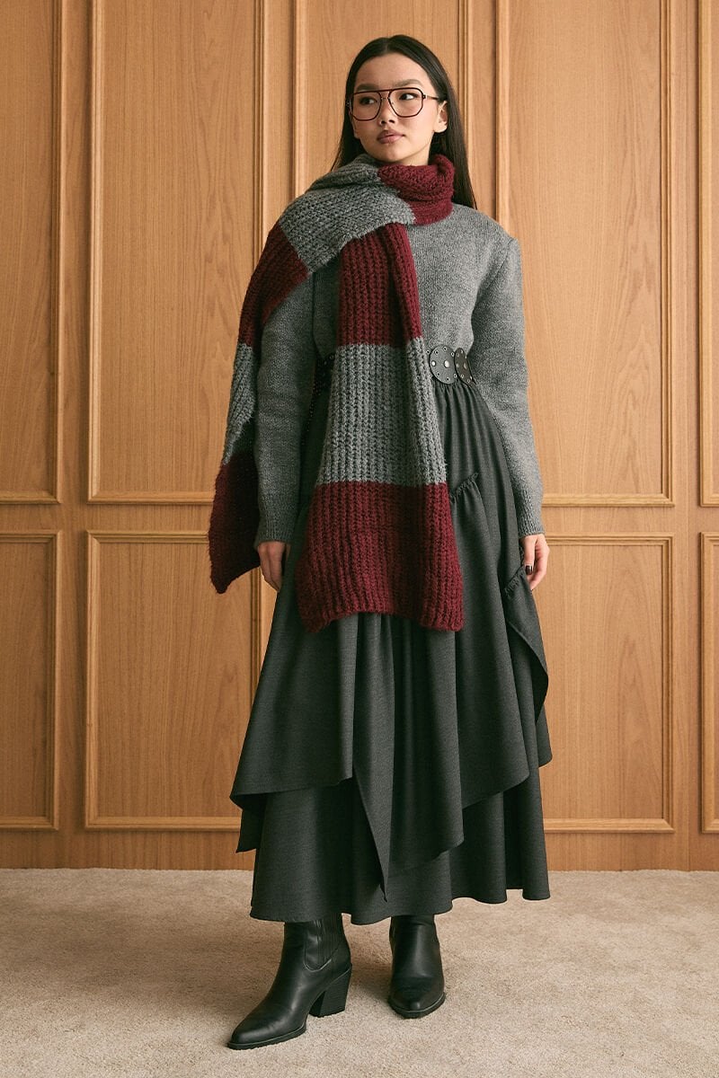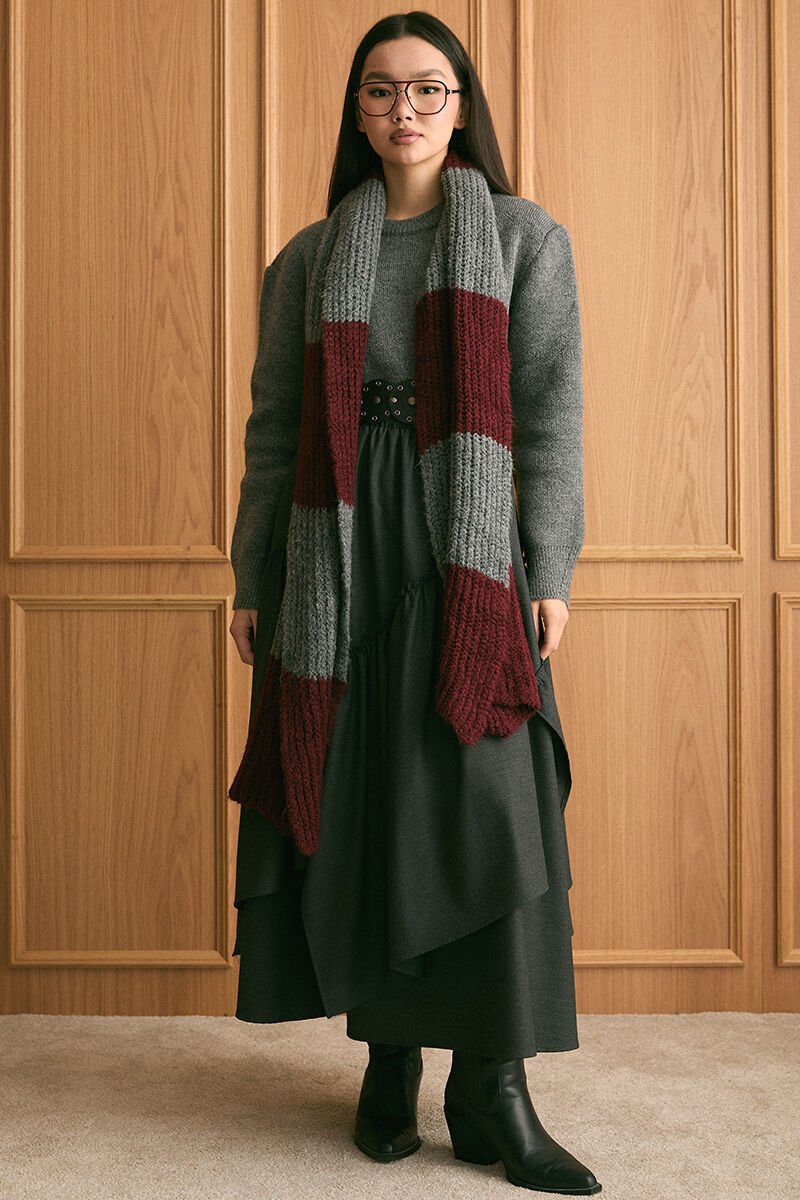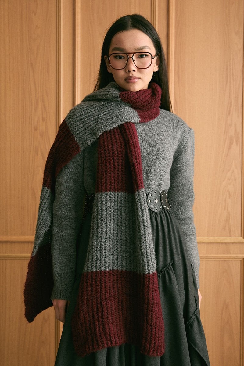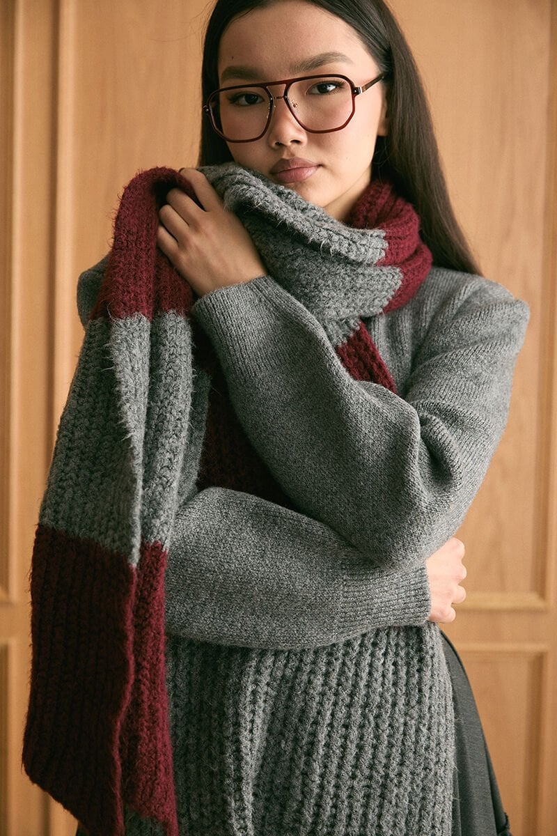 Bordo Triko İki Renk Atkı