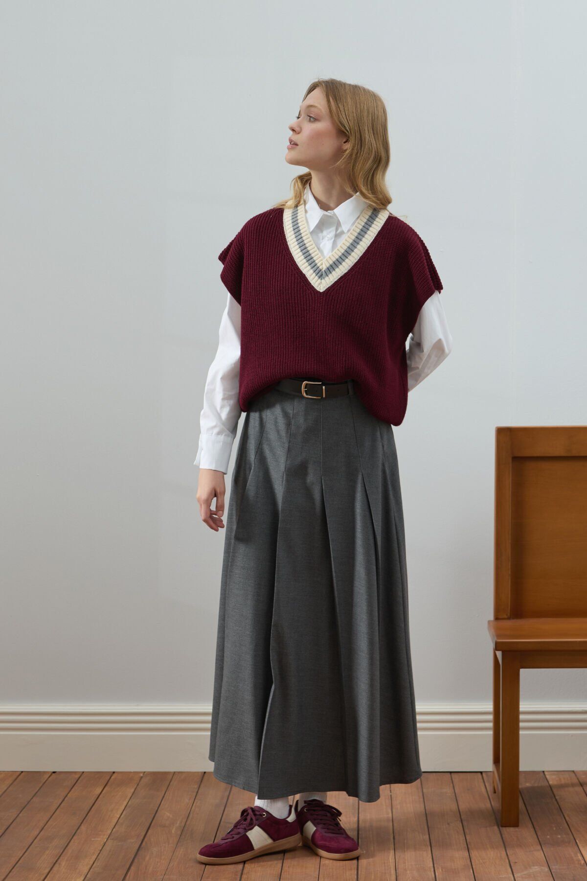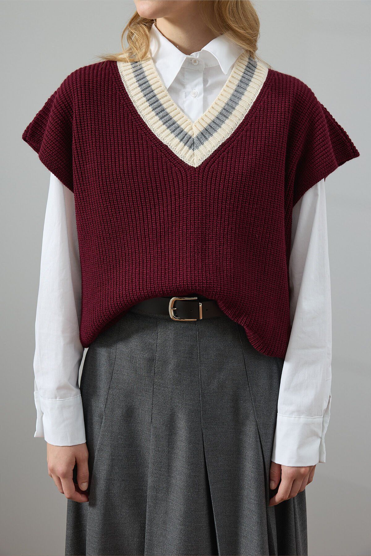 Bordo V Yaka Süveter & Antrasit Poliviskon Kolej Etek Takım