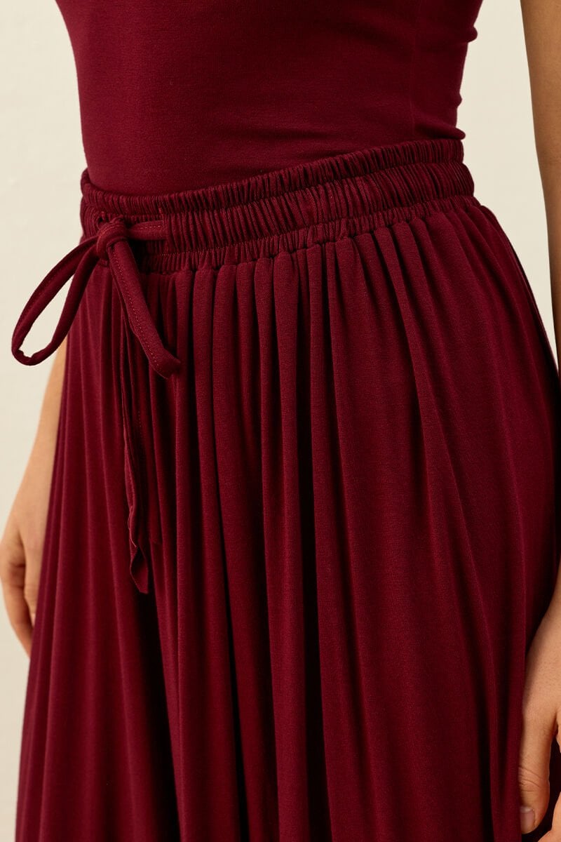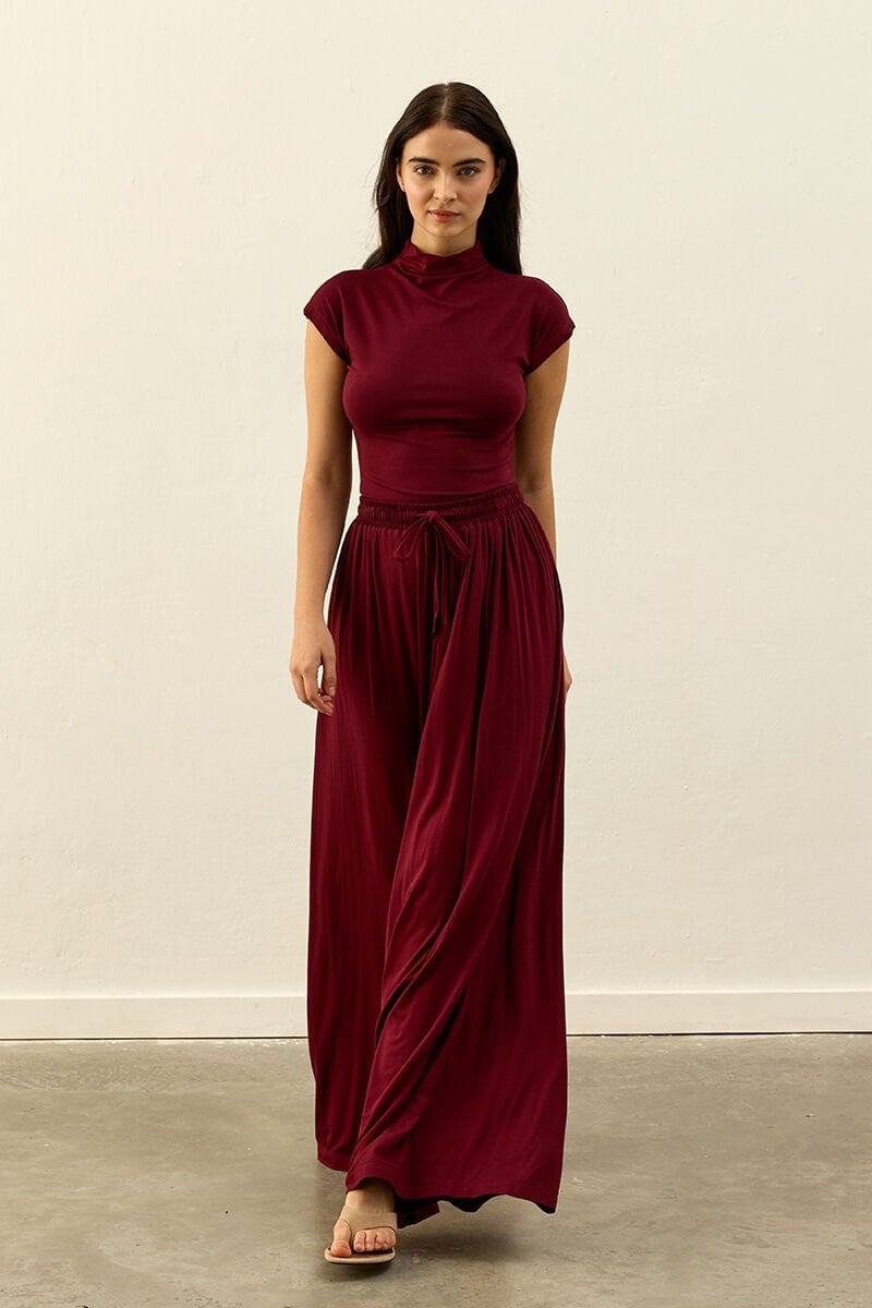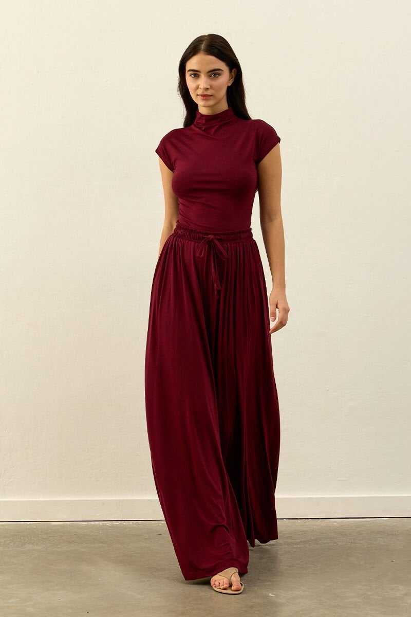 Bordo Viskon Dökümlü Pantolon