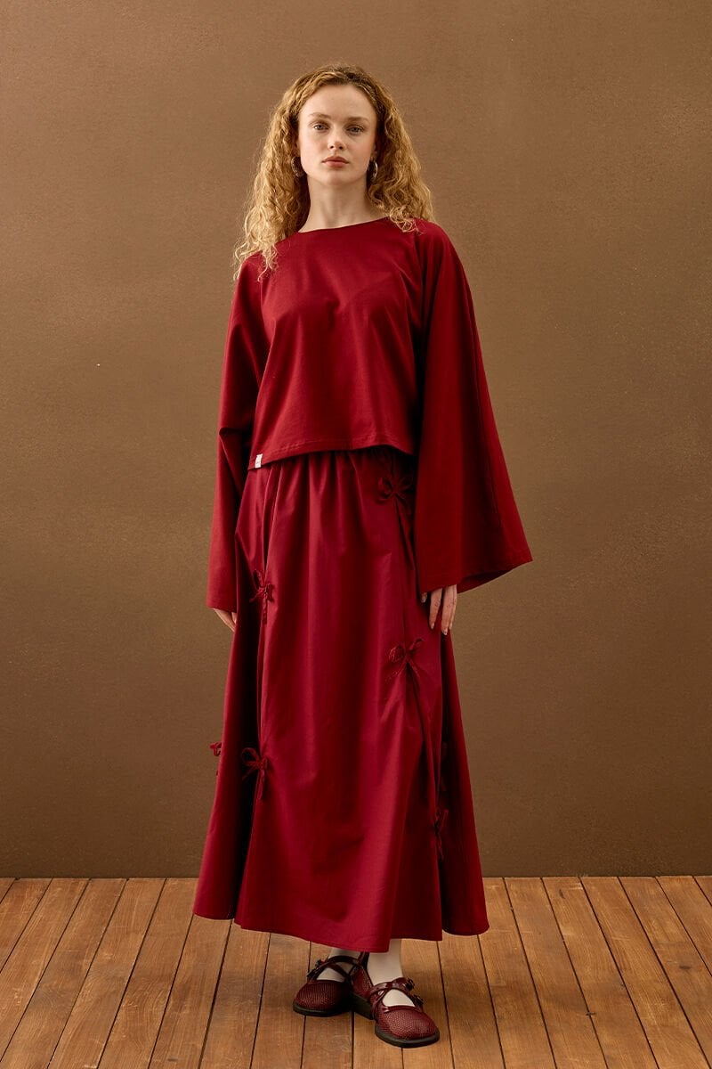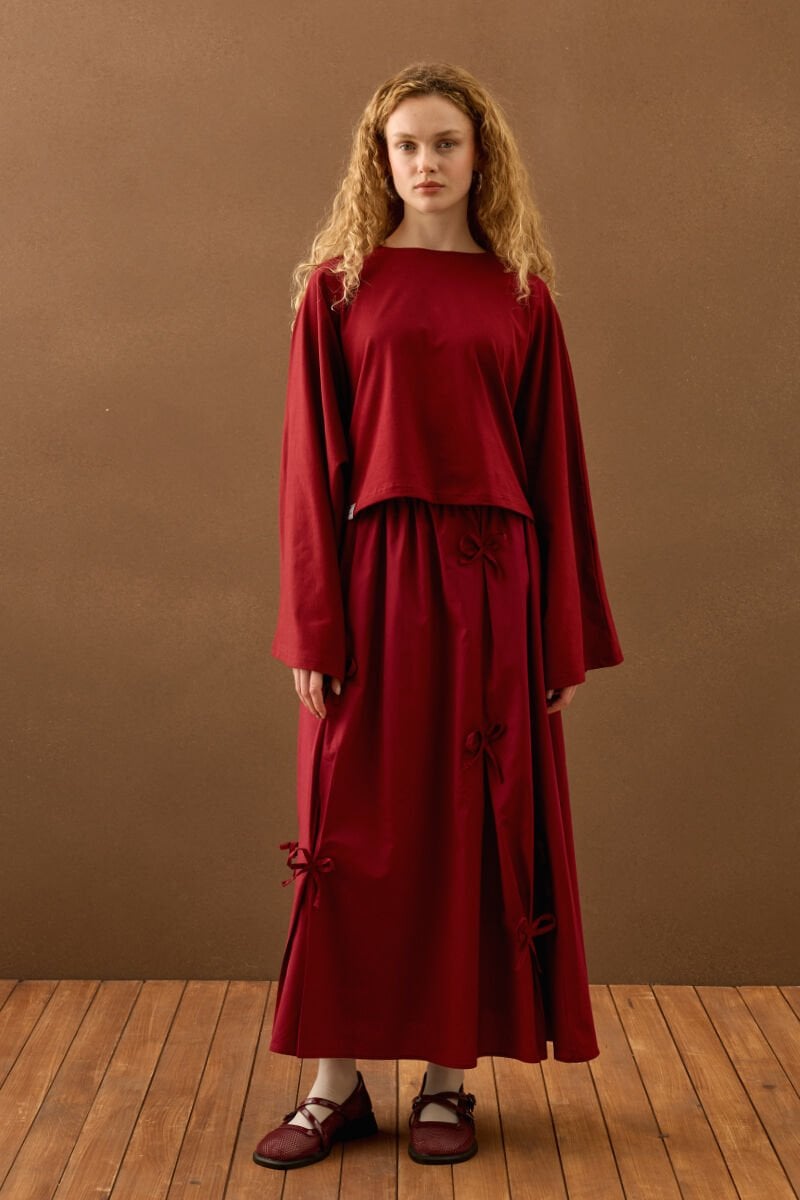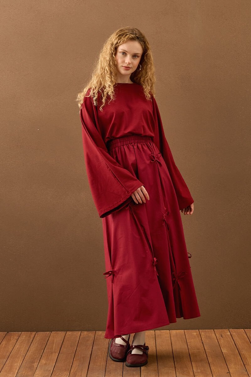 Bordo Fiyonklu Etek