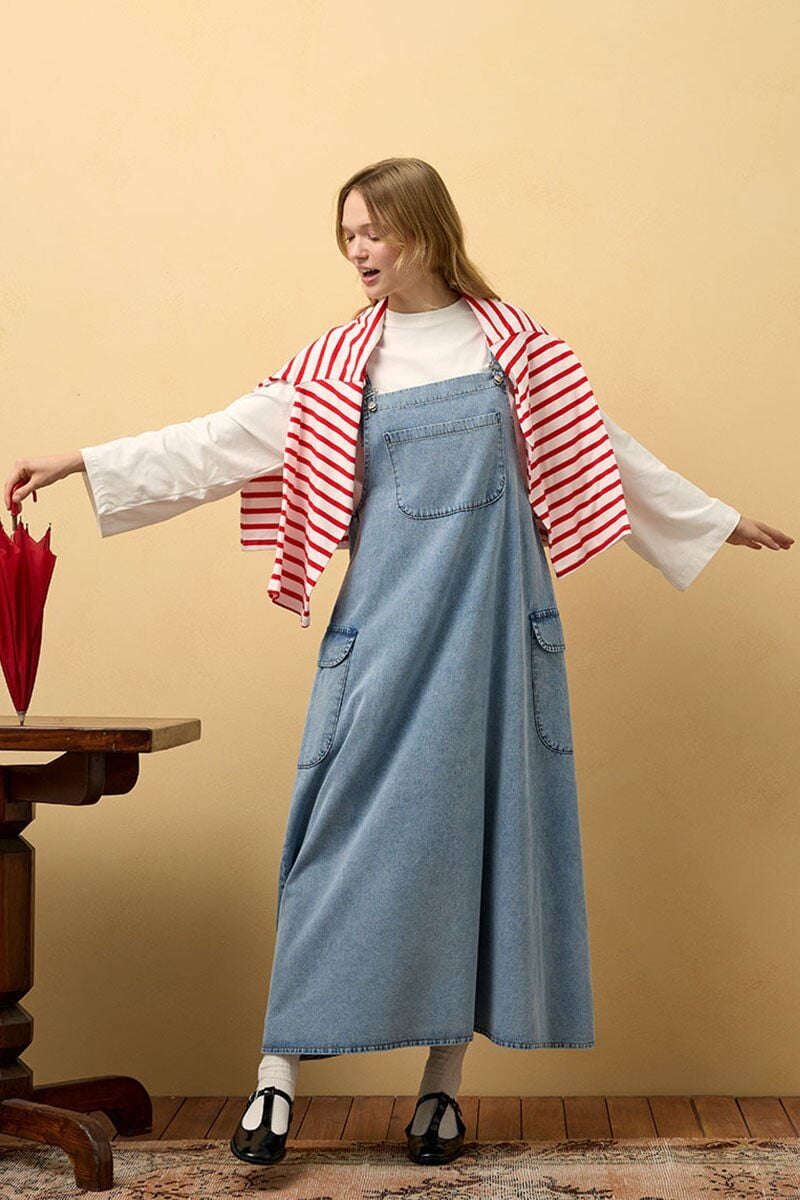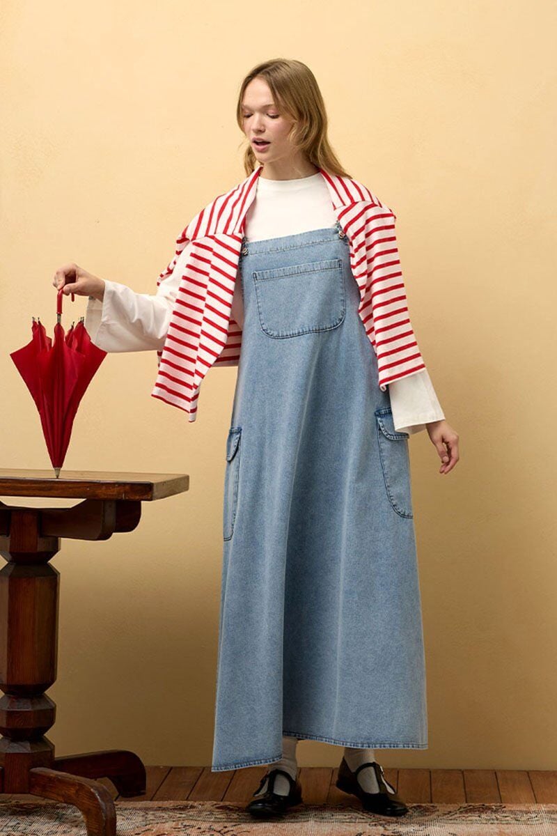 Bu salopet, kaliteli kot kumaşı ve şık tasarımıyla hem rahat hem de şık bir görünüm sunar.