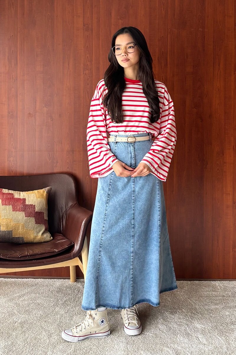 Bu muhteşem kot piliseli korsaj etek, şıklığı ve rahatlığı bir arada sunar.