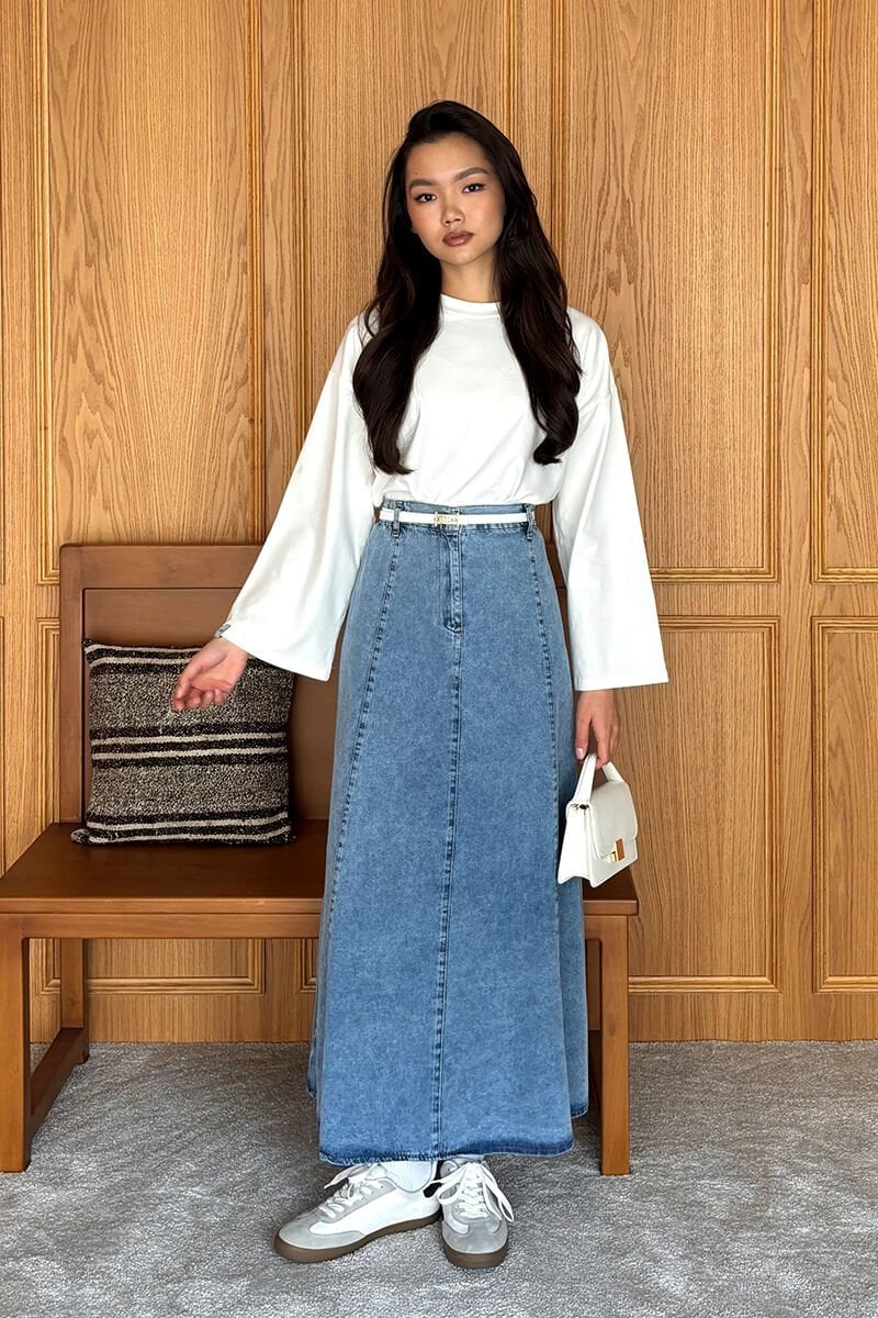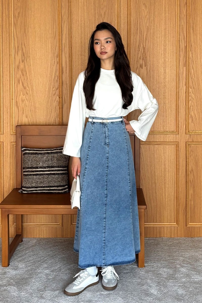 Buz Mavisi Kot Kloş Etek