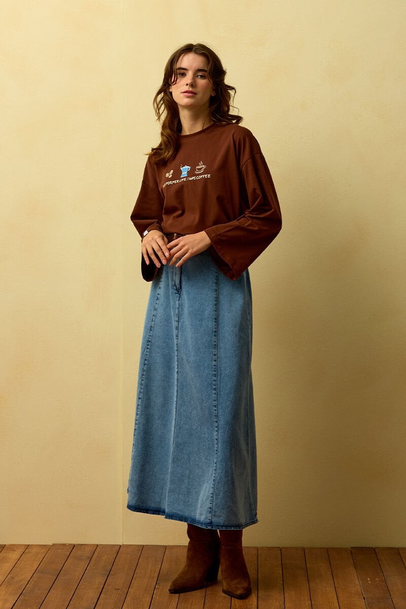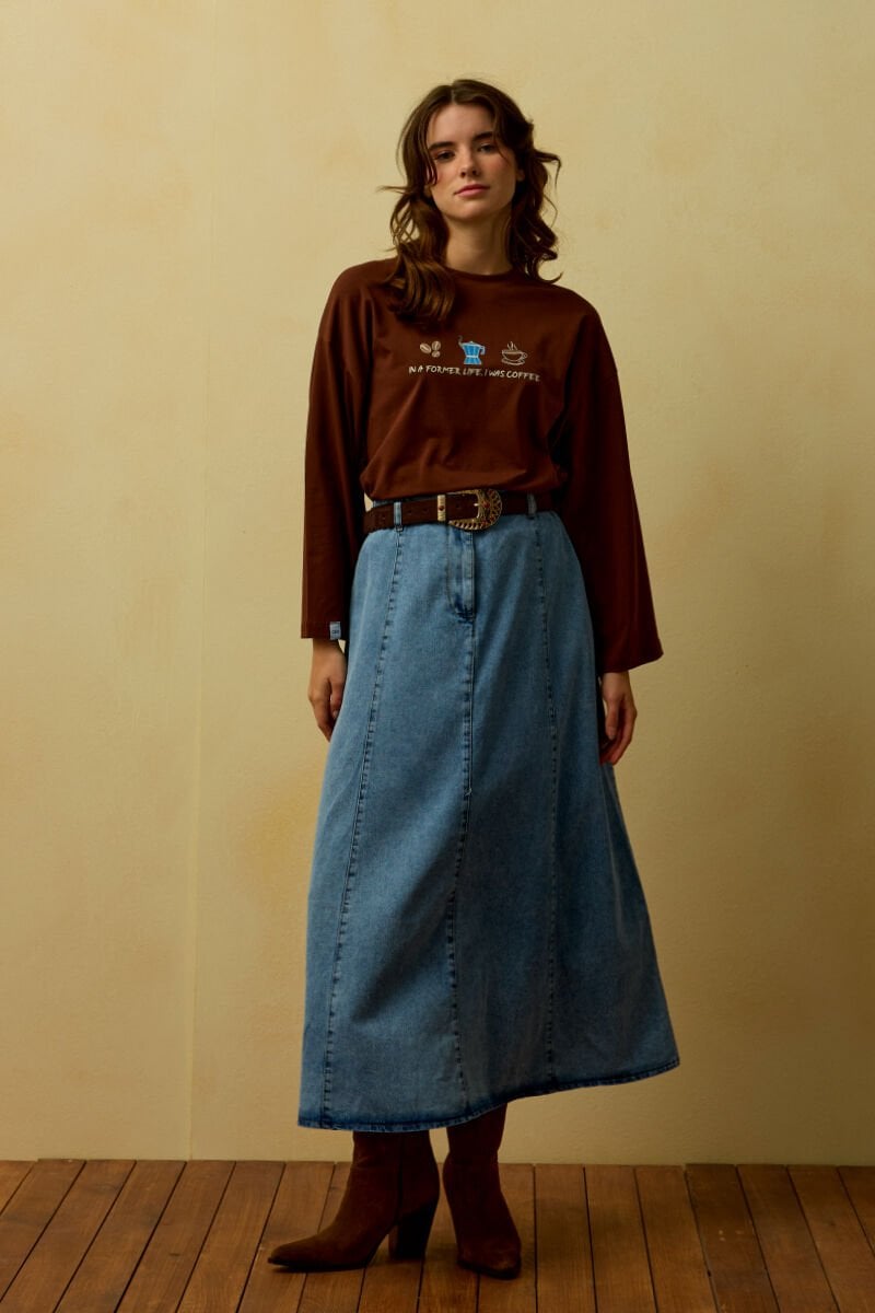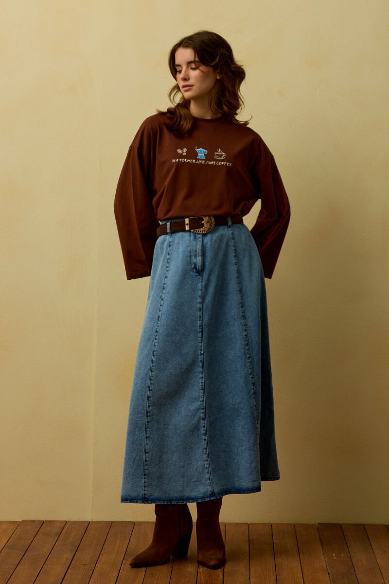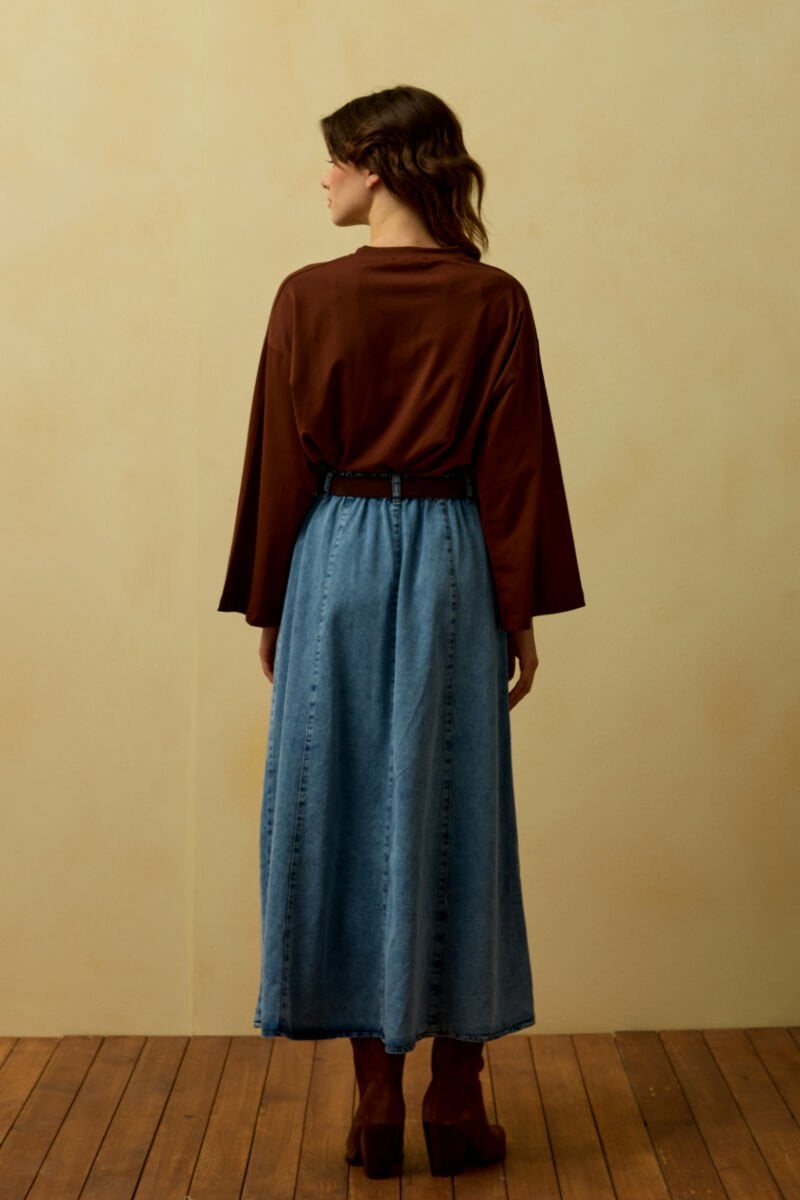 Buz Mavisi Kot Kloş Etek