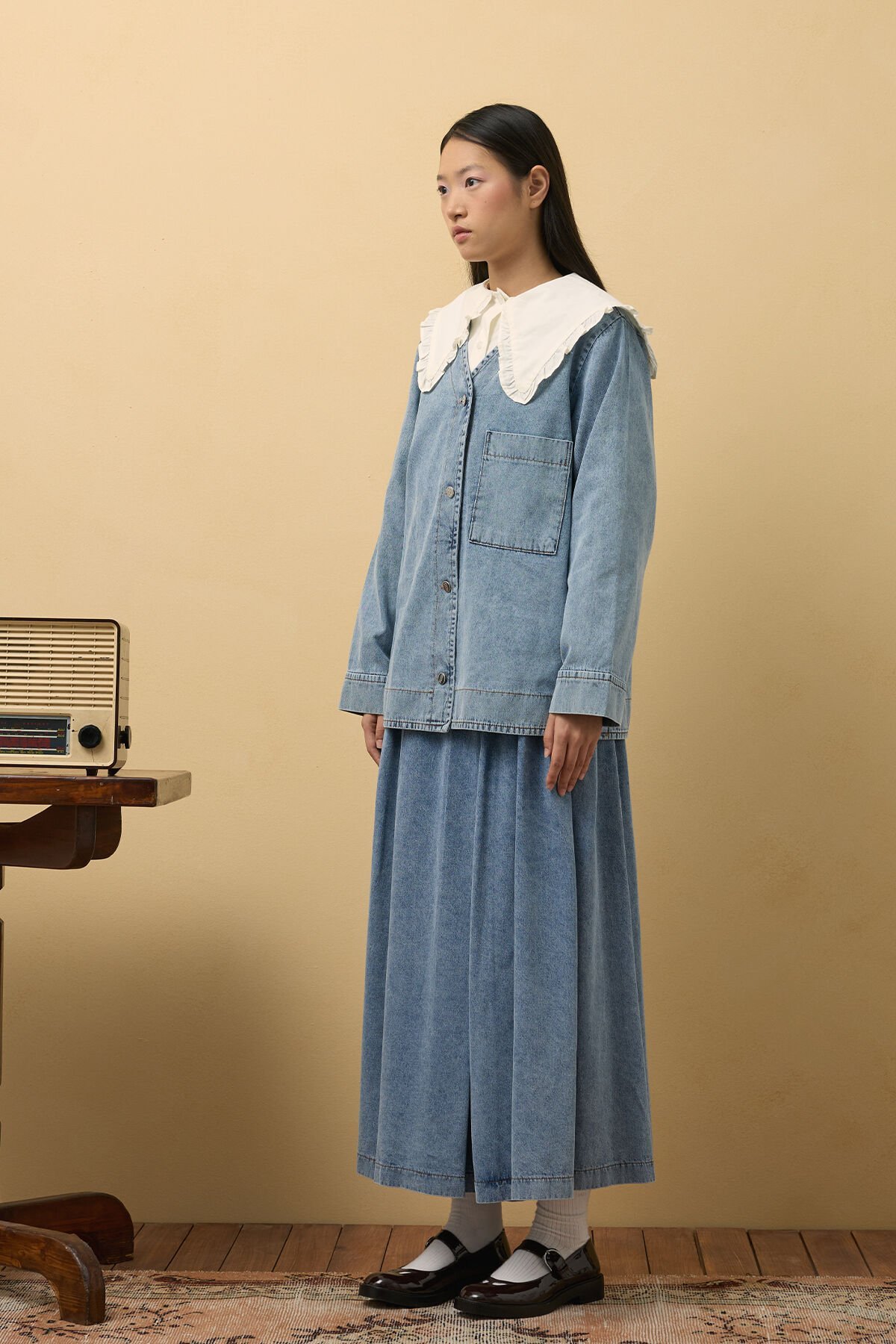 Bu muhteşem kot piliseli korsaj etek, şıklığı ve rahatlığı bir arada sunar.