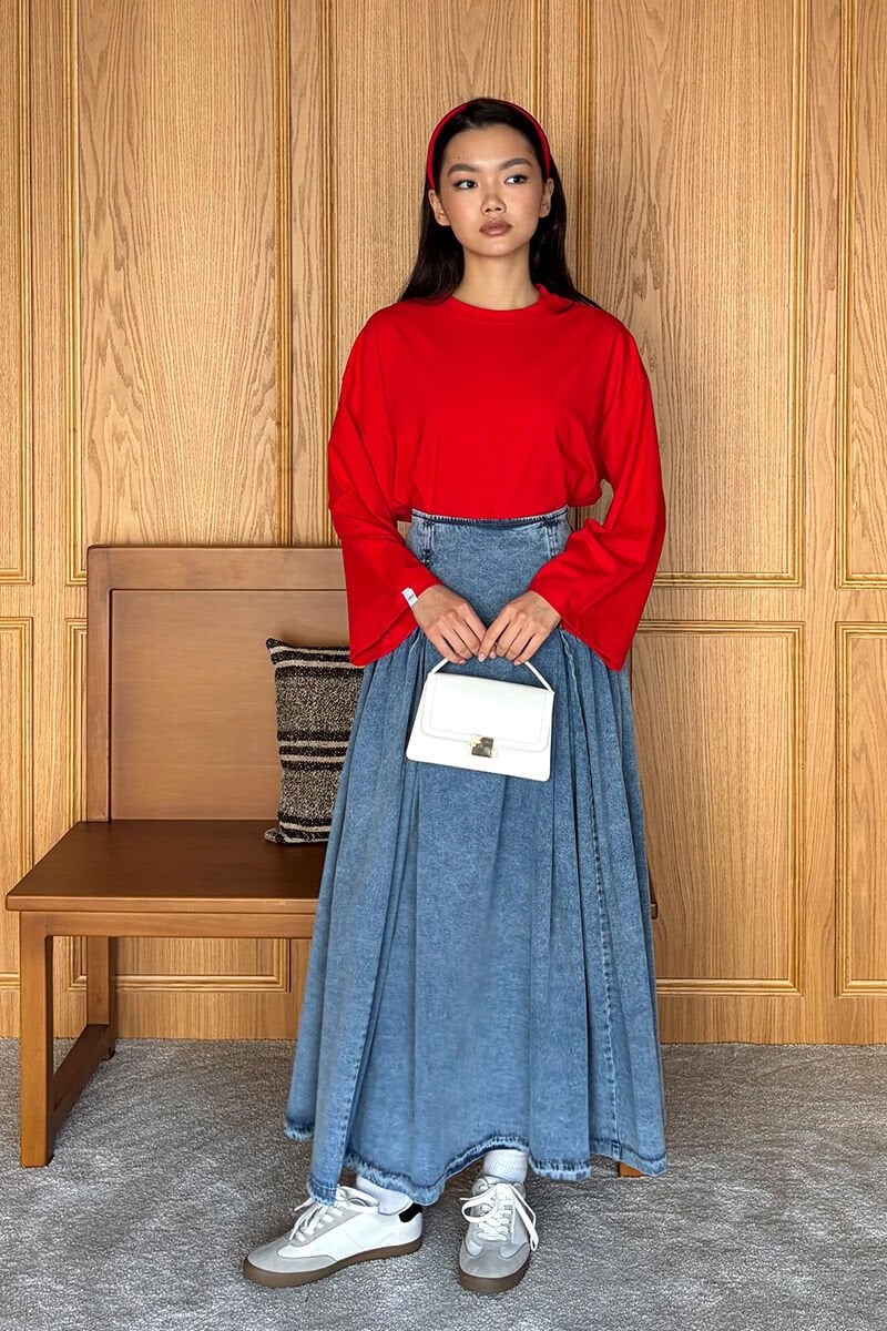 Bu muhteşem kot piliseli korsaj etek, şıklığı ve rahatlığı bir arada sunar.