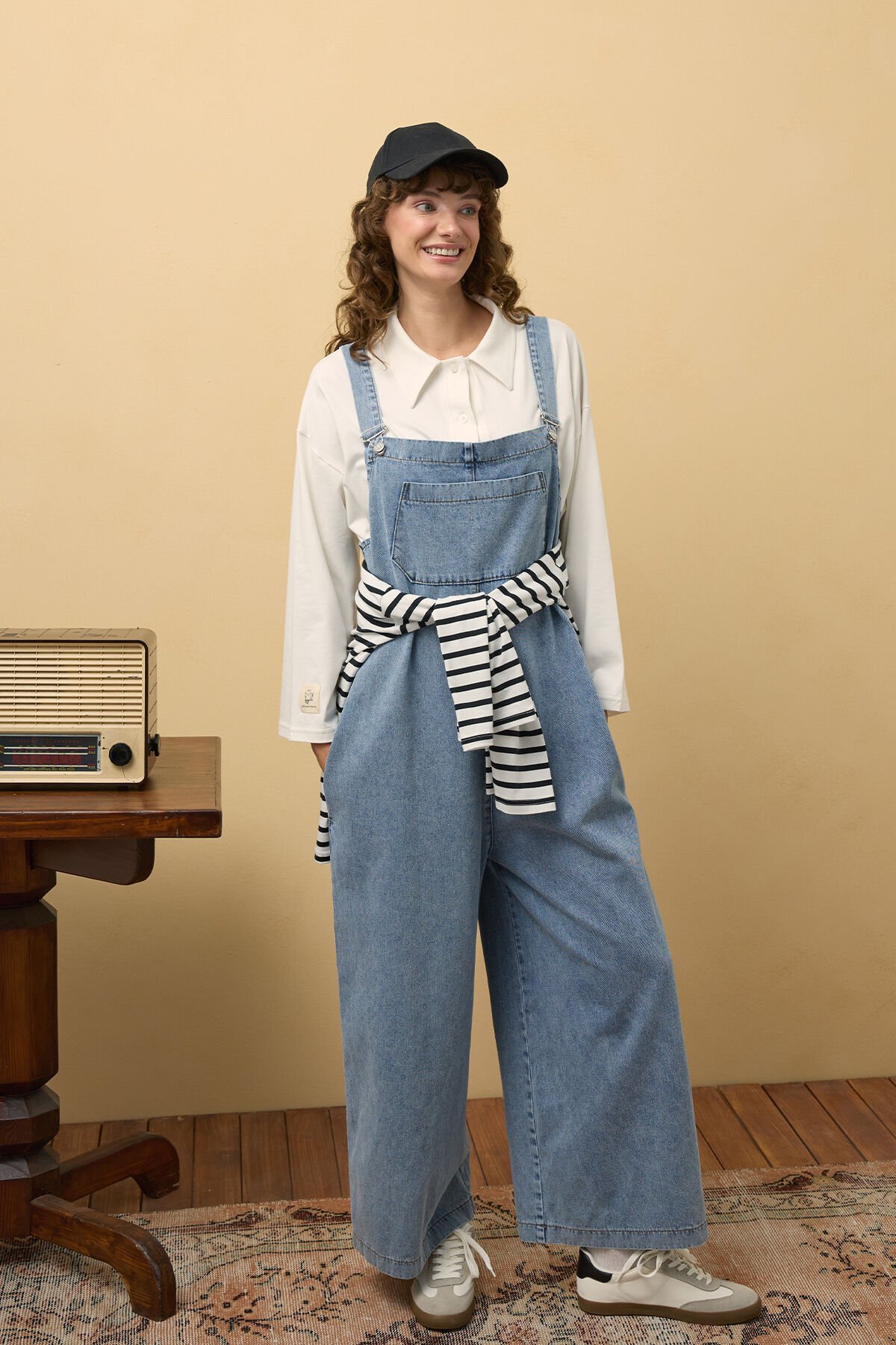 Bu tulum , kaliteli kot kumaşı ve şık tasarımıyla hem rahat hem de şık bir görünüm sunar.