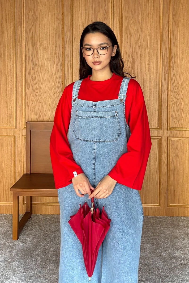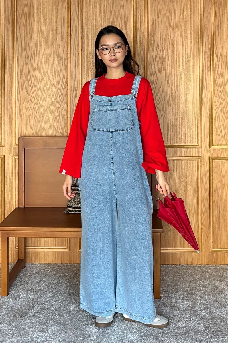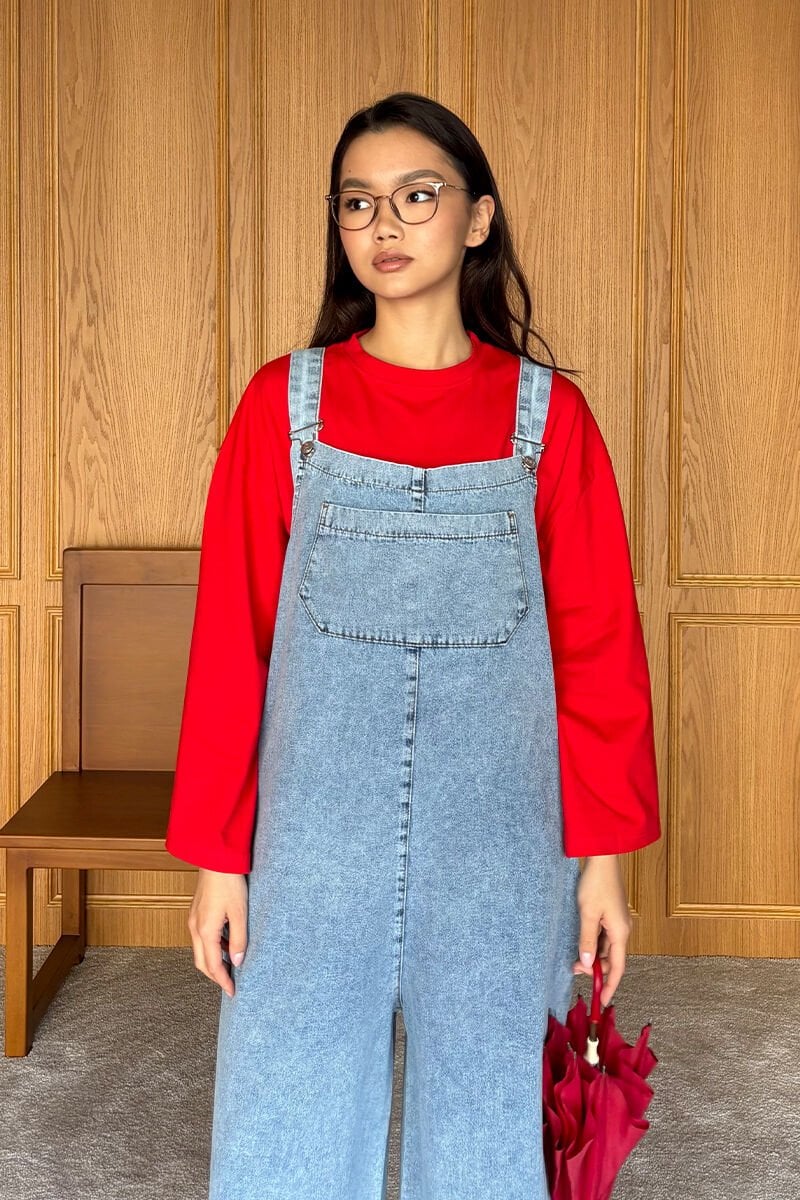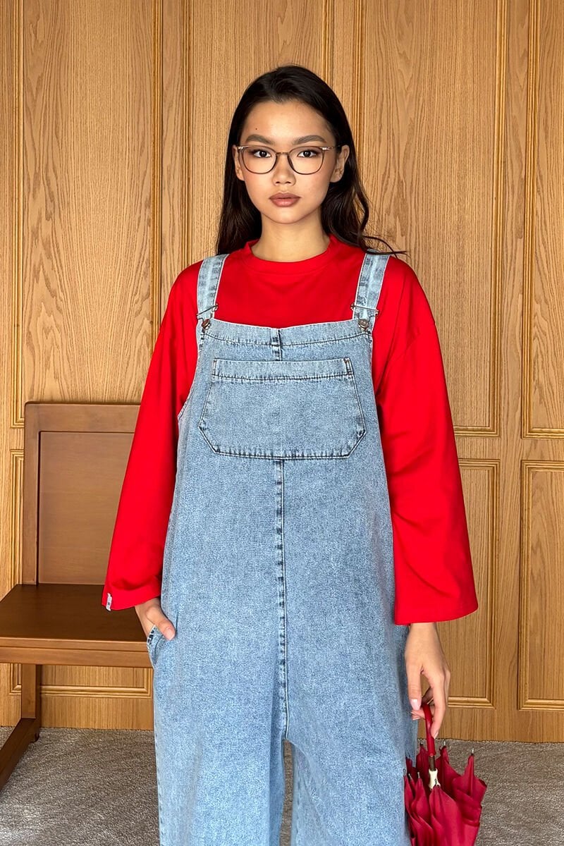 Bu tulum , kaliteli kot kumaşı ve şık tasarımıyla hem rahat hem de şık bir görünüm sunar.