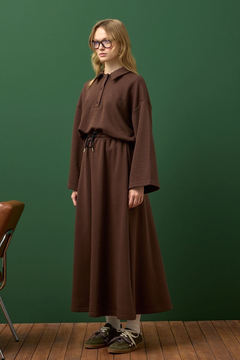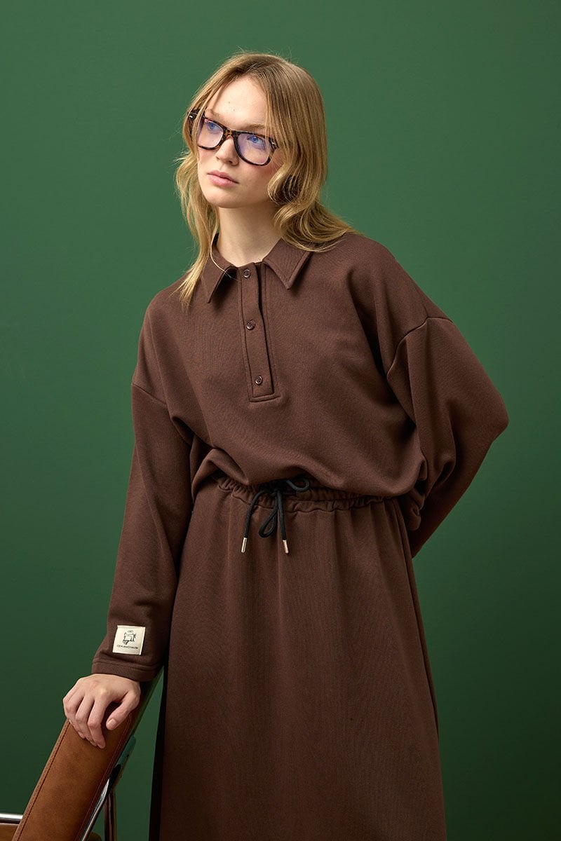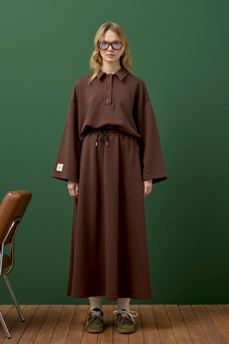 Çikolata 3 İplik Polo Yaka Body & Etek Takım