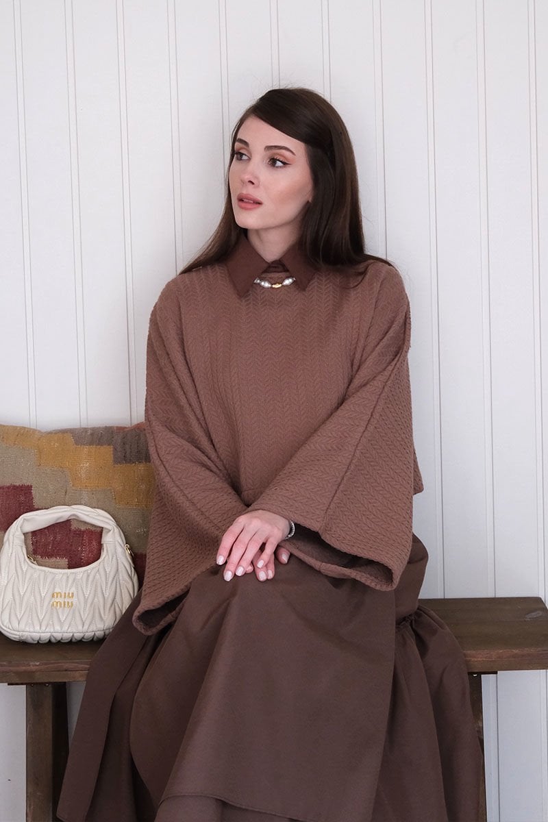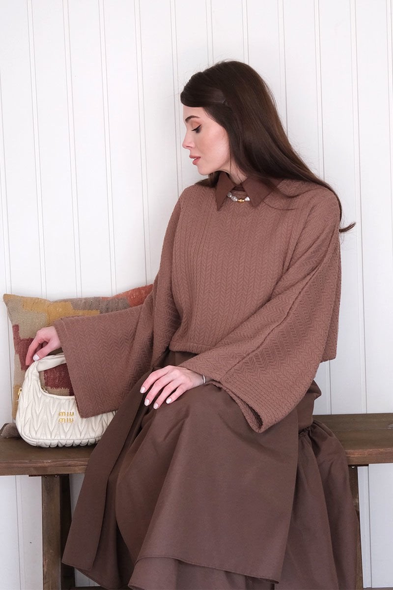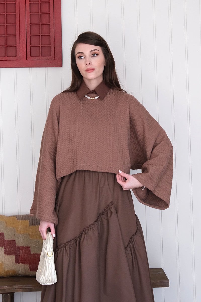 Çikolata Yarasa Kol Triko Crop