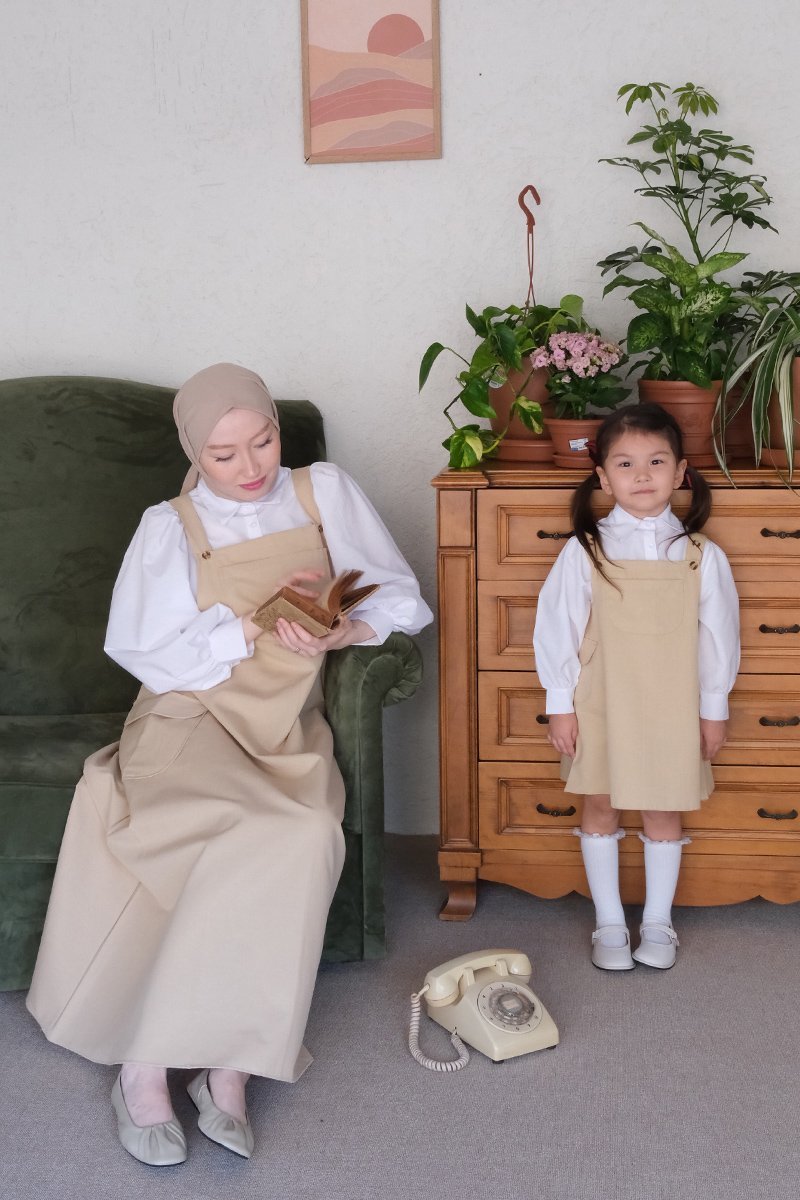 Çocuk Krem Duck Keten Etekli Salopet