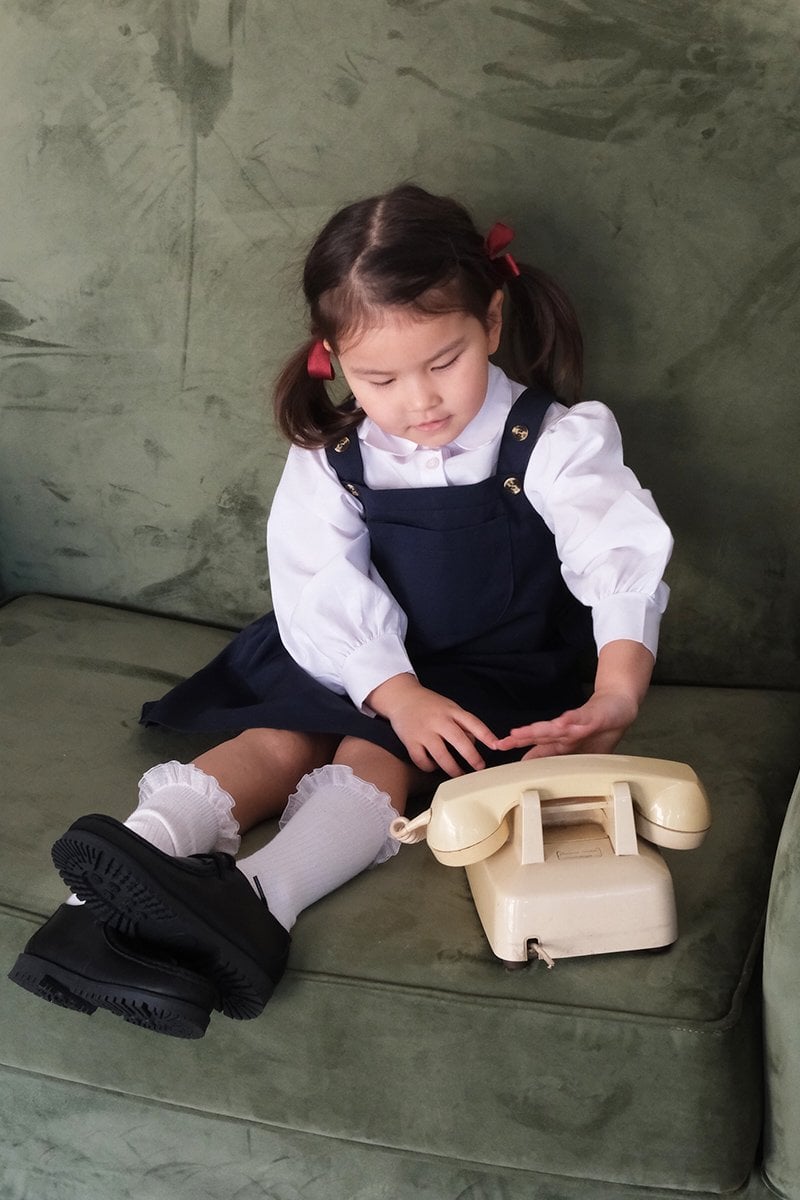 Çocuk Lacivert Duck Keten Etekli Salopet
